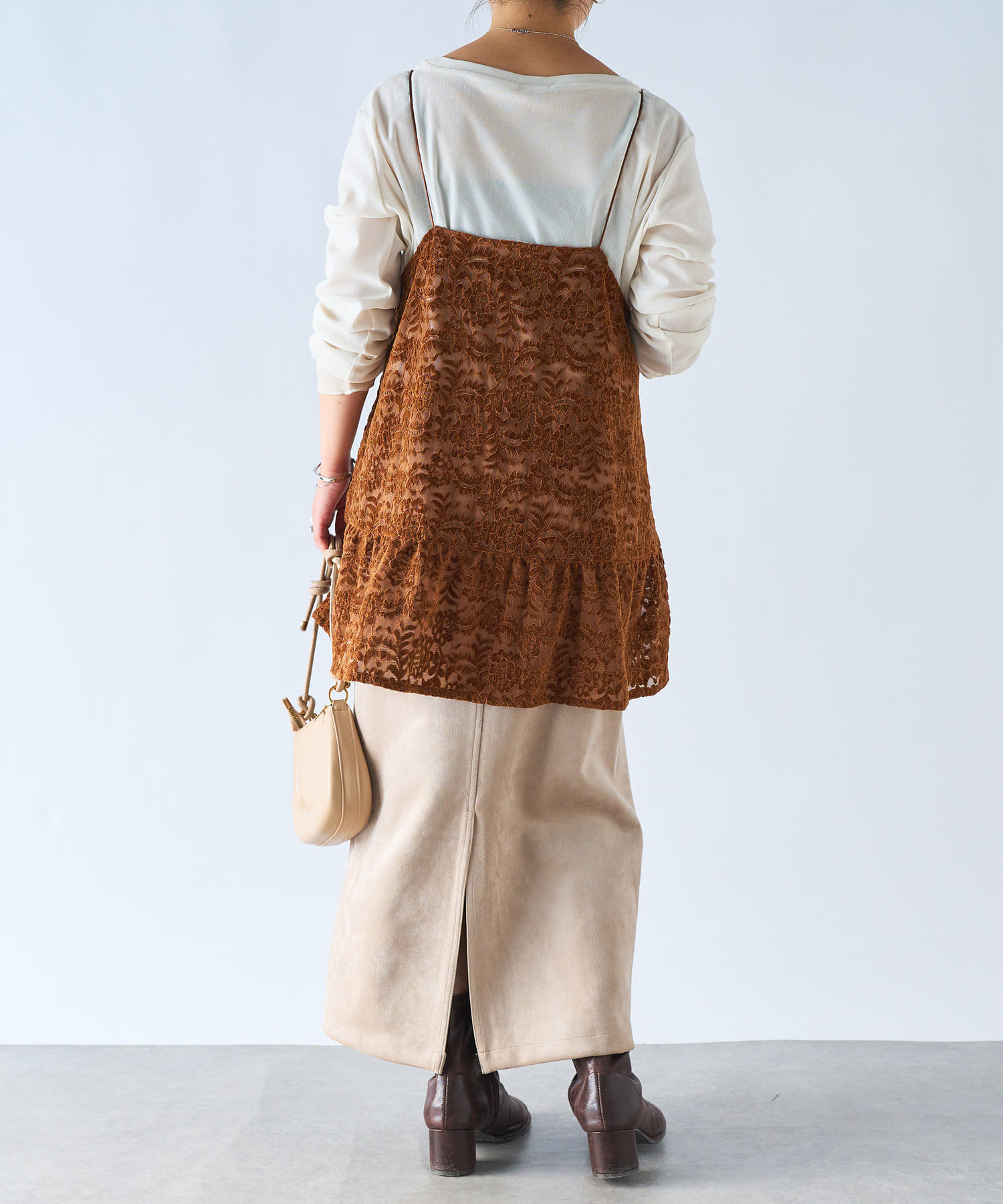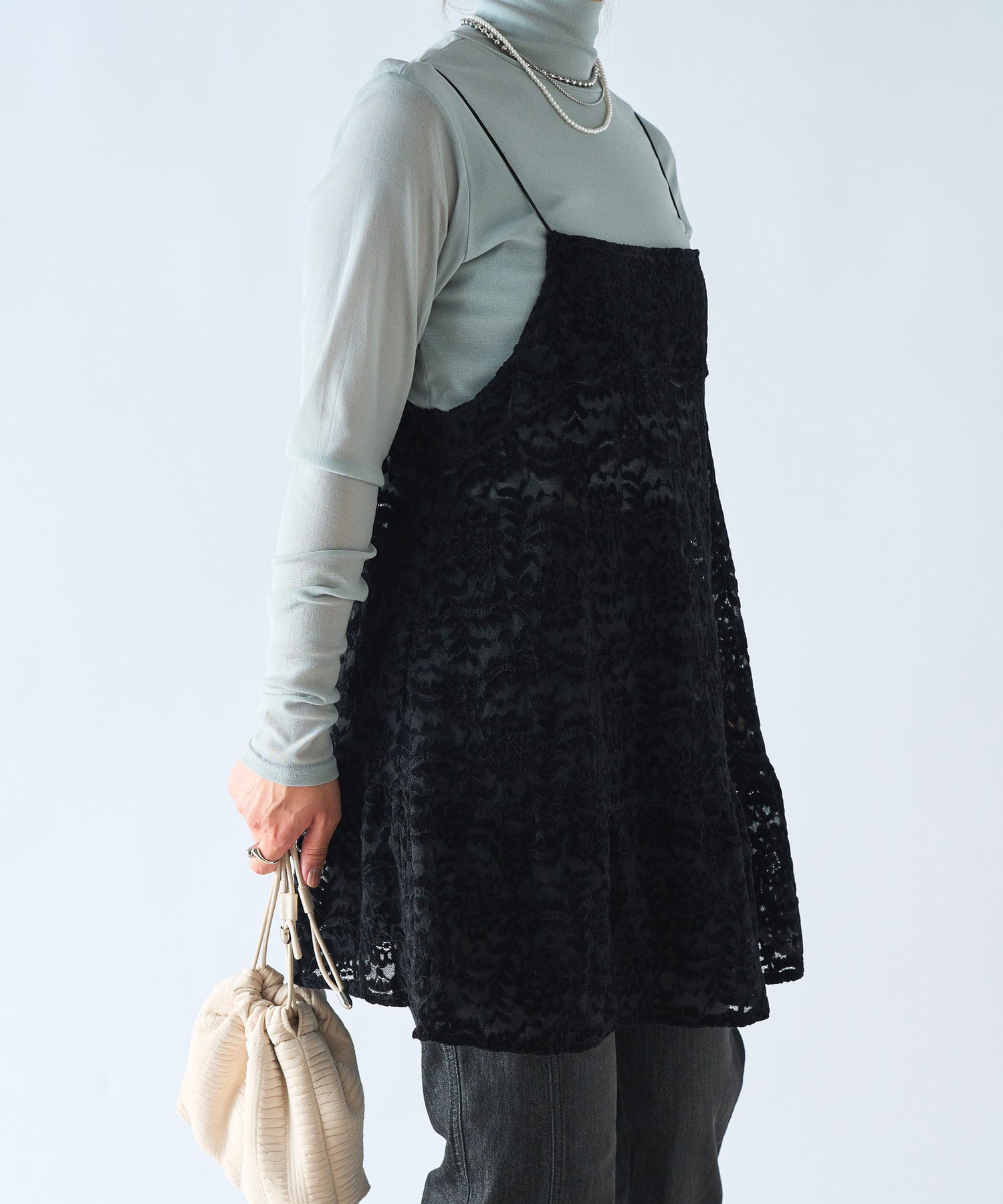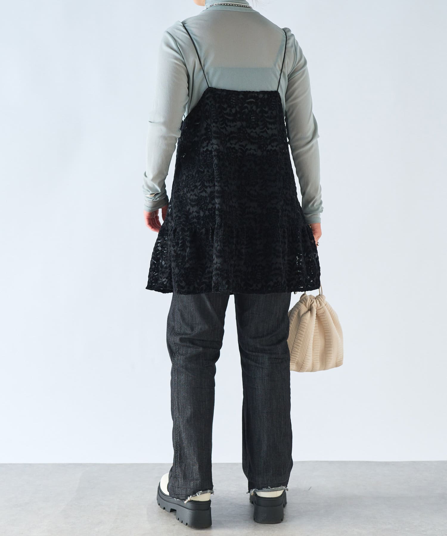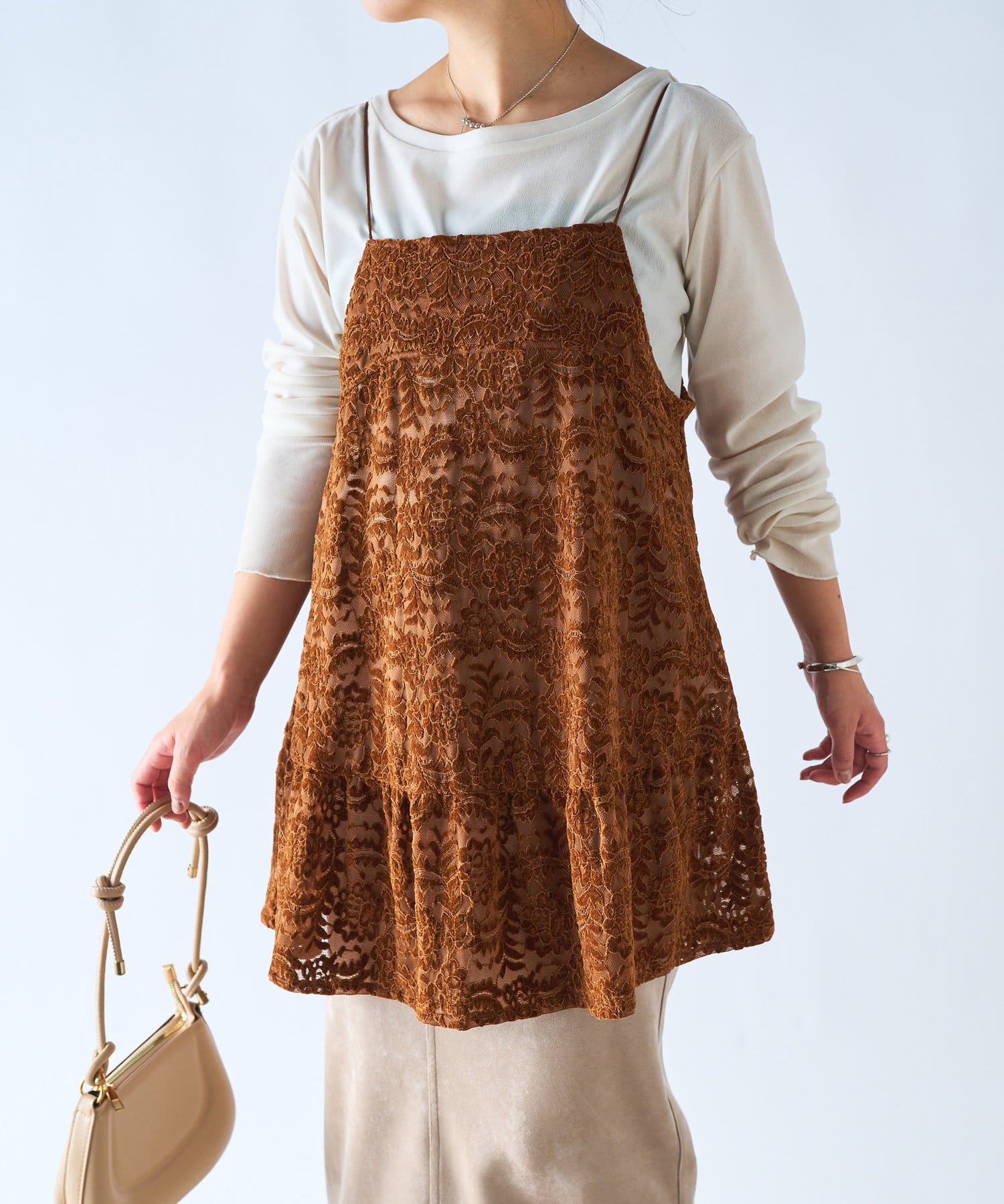 上品な起毛レースと華奢な肩紐で女性らしい印象のビスチェ!