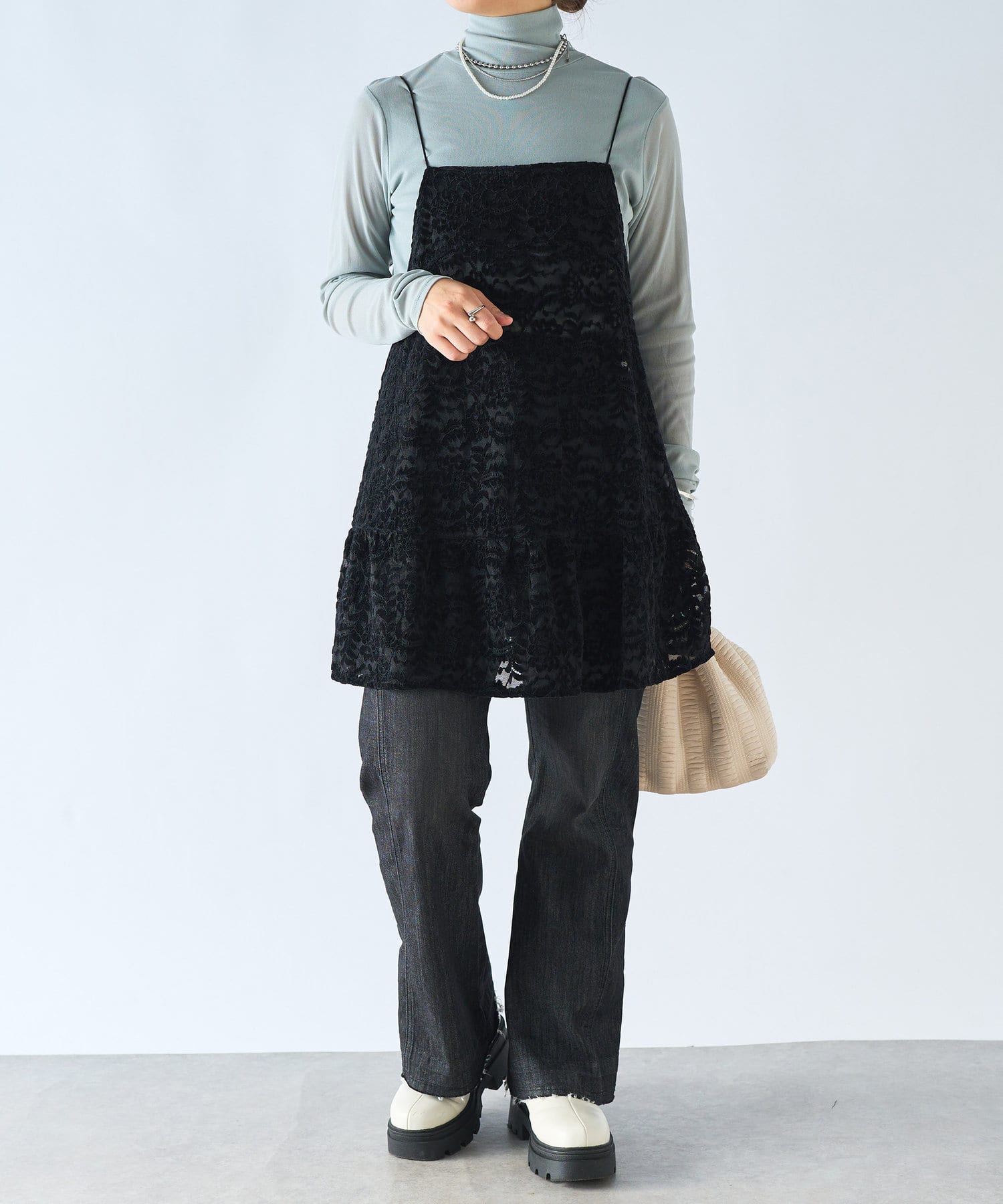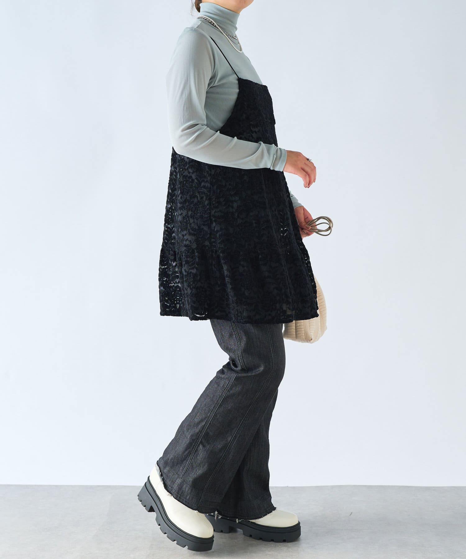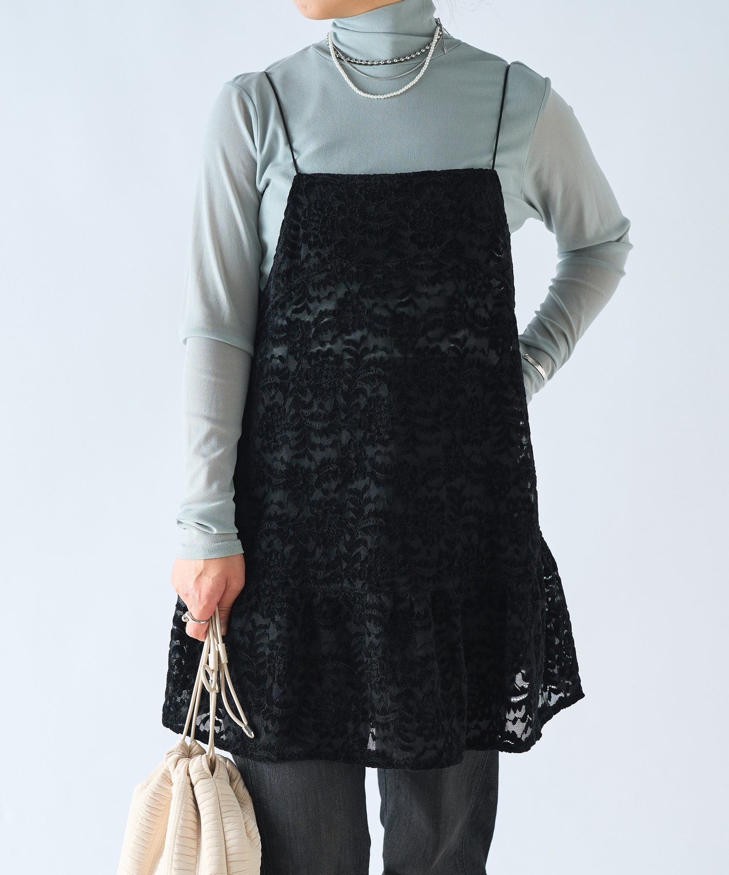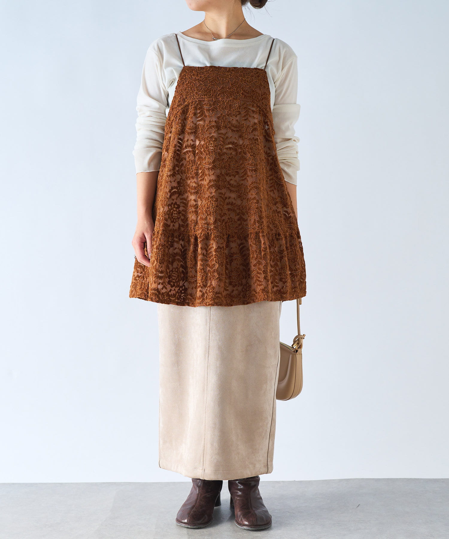 上品な起毛レースと華奢な肩紐で女性らしい印象のビスチェ!