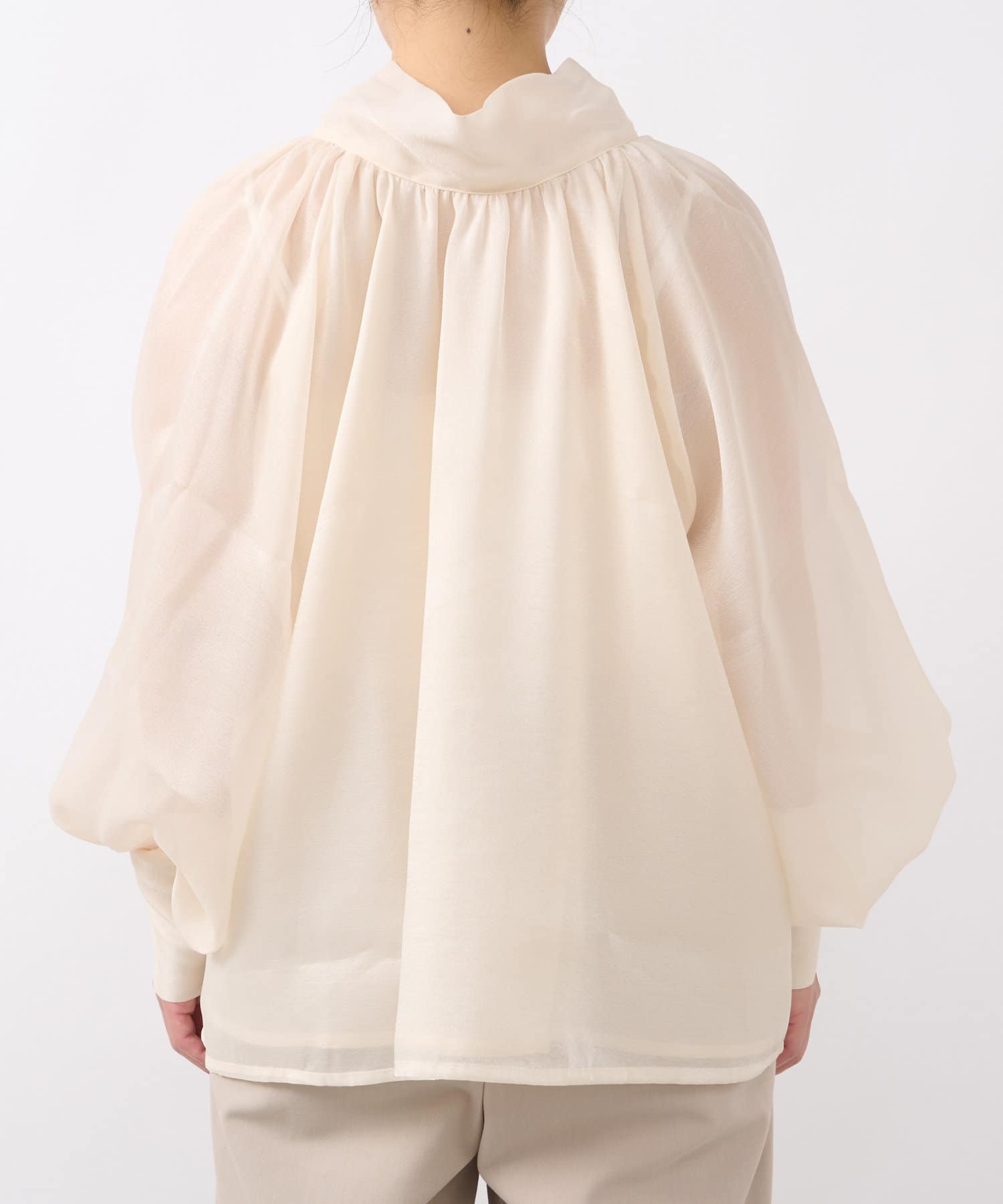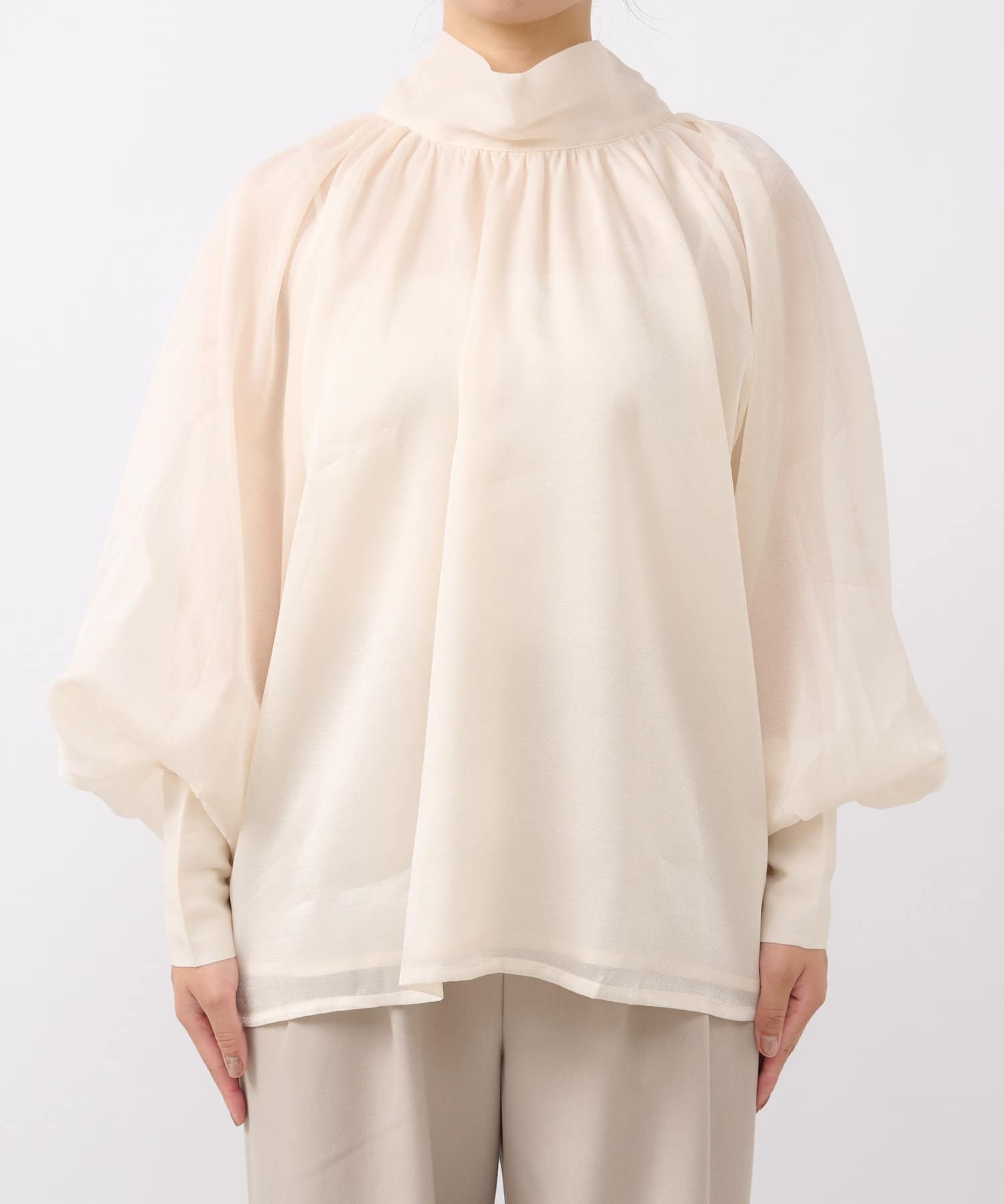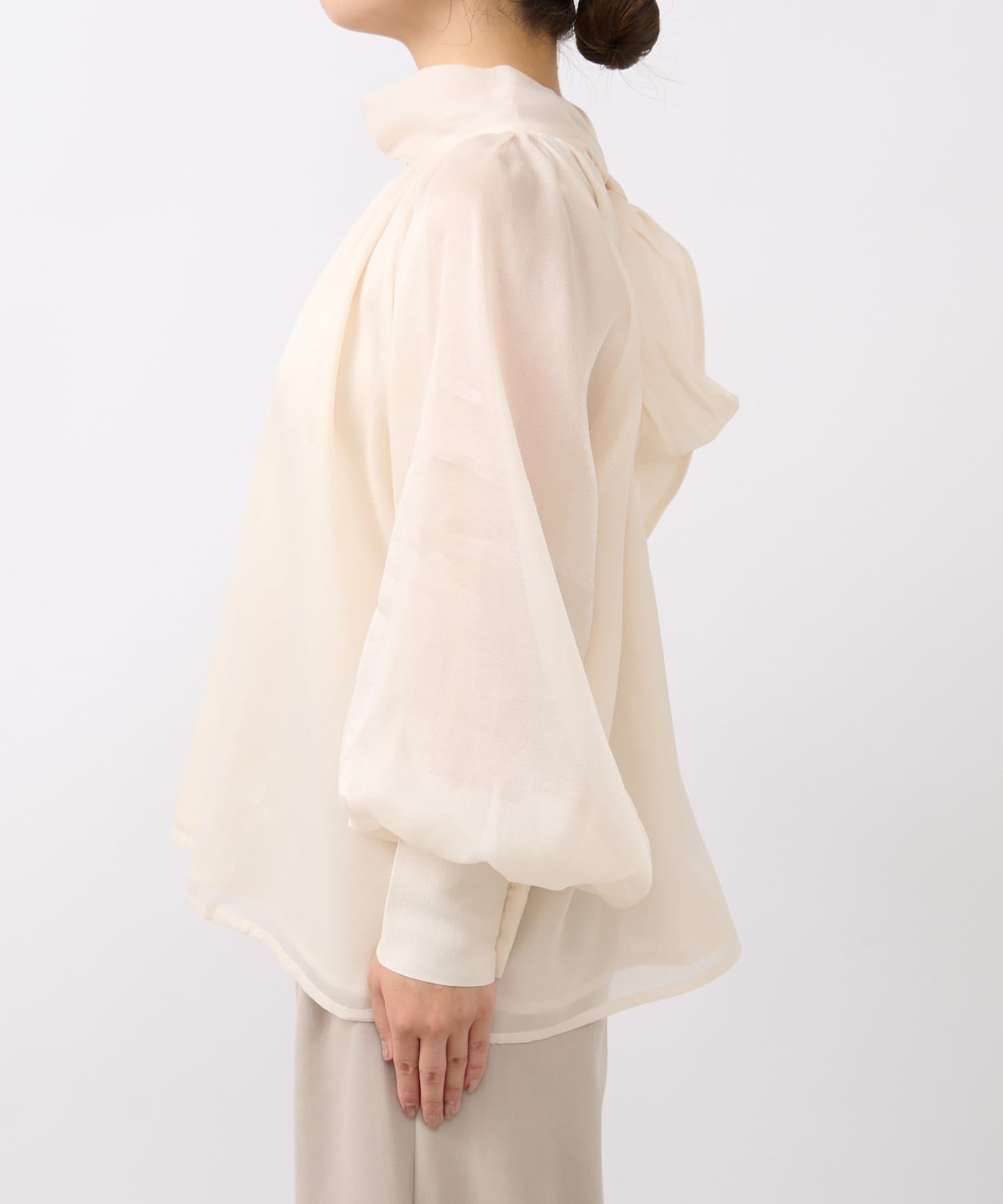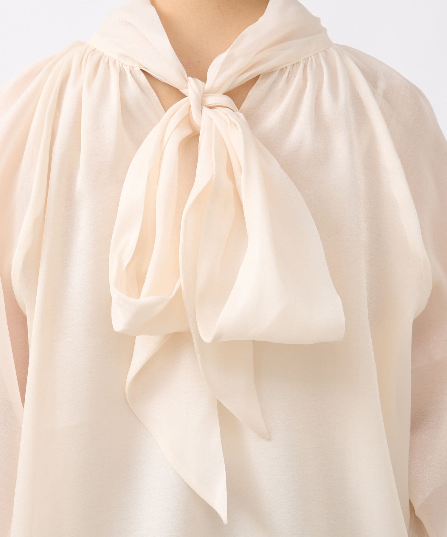 ボリュームのあるボウタイがとても華やかな印象のシアーブラウスです。