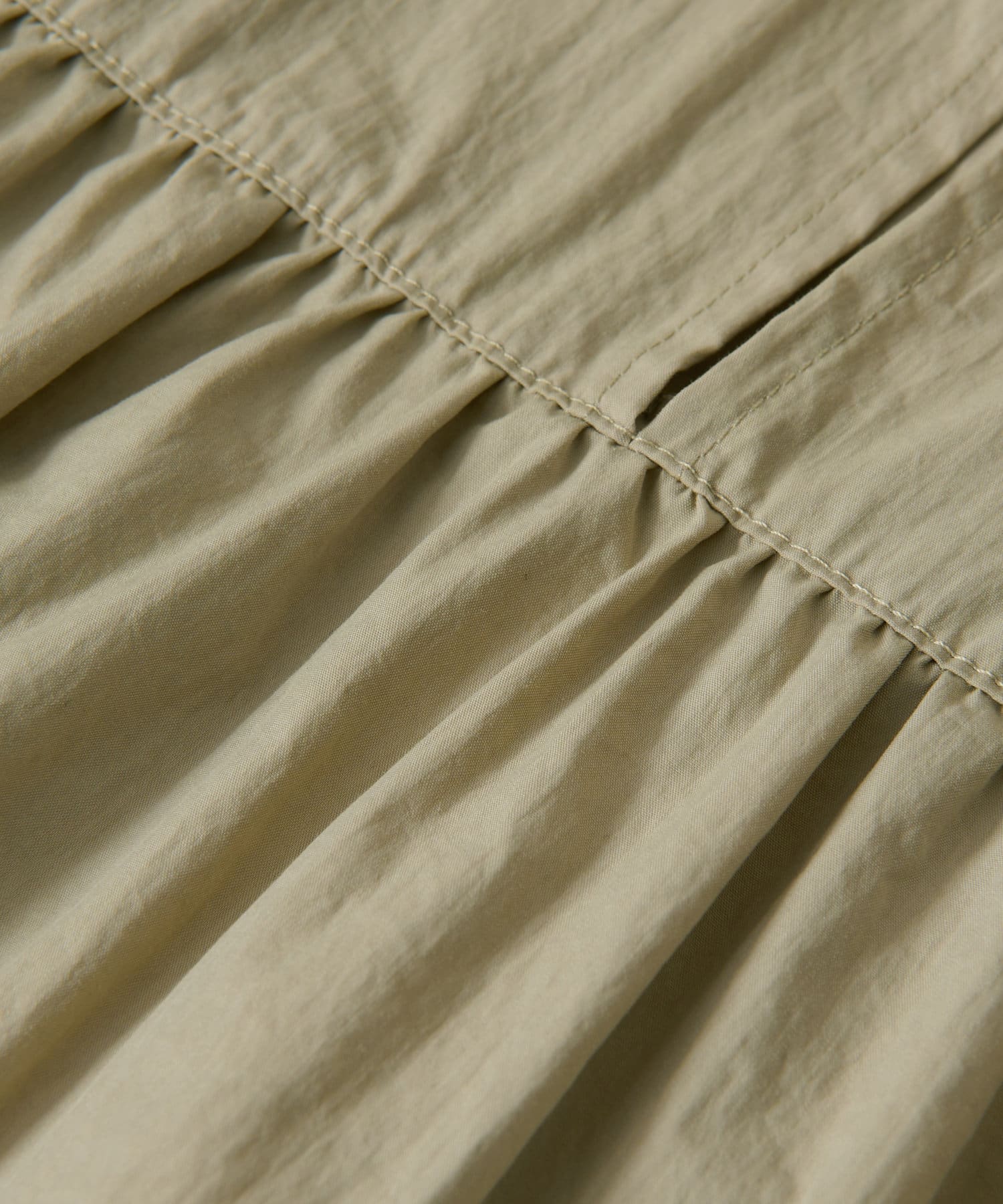 広がりすぎないティアード風のデザインとヒップまで隠れる丈感なので体型カバーにも◎
