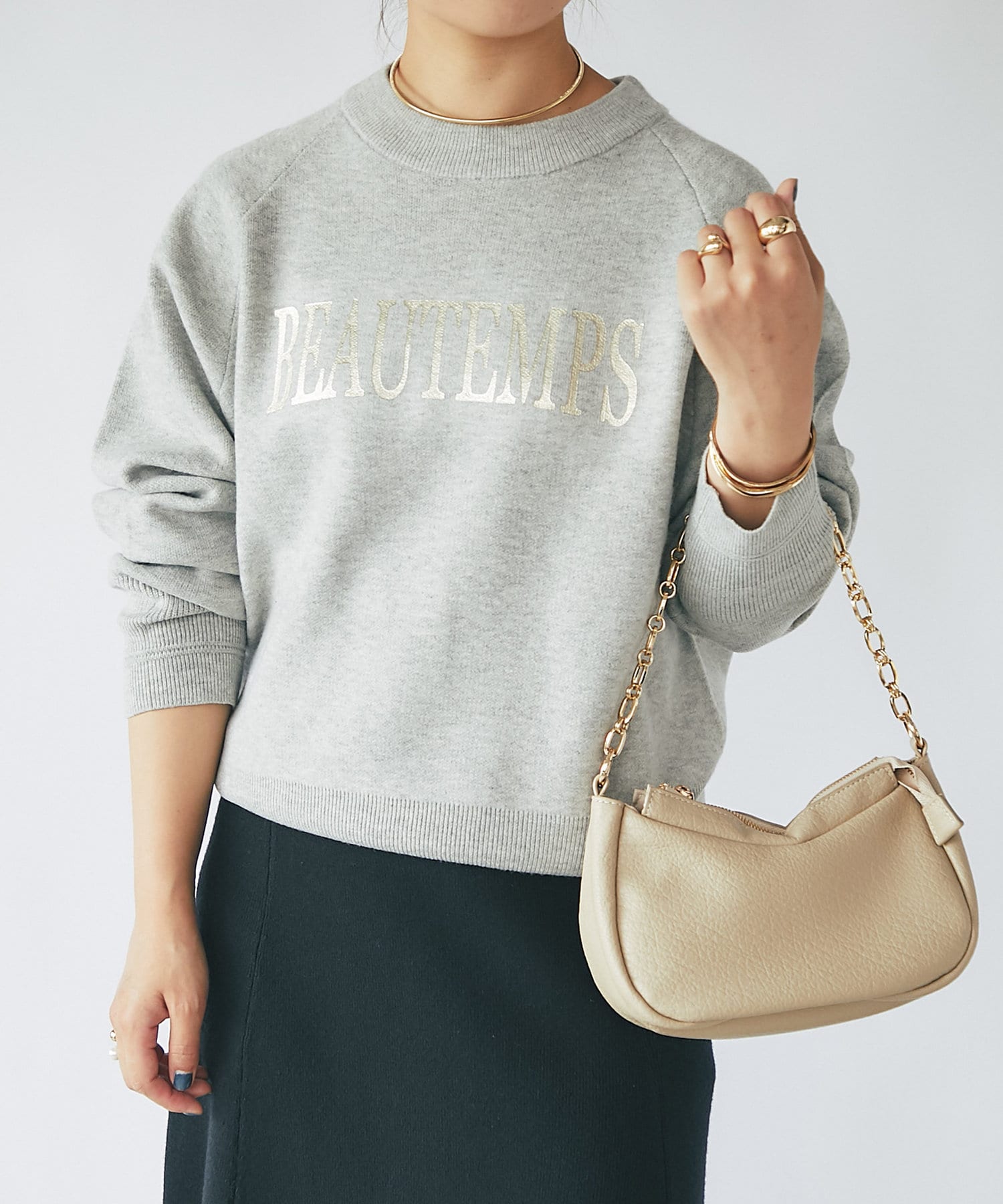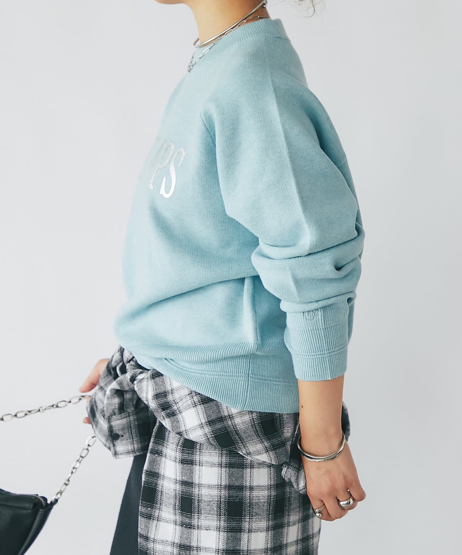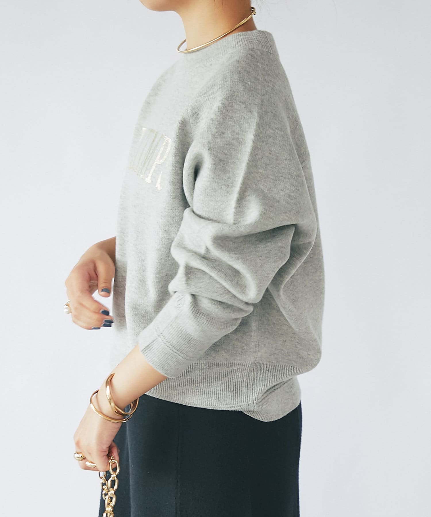 《ゆったり着心地・体型カバー◎》スウェットライク箔ロゴニット