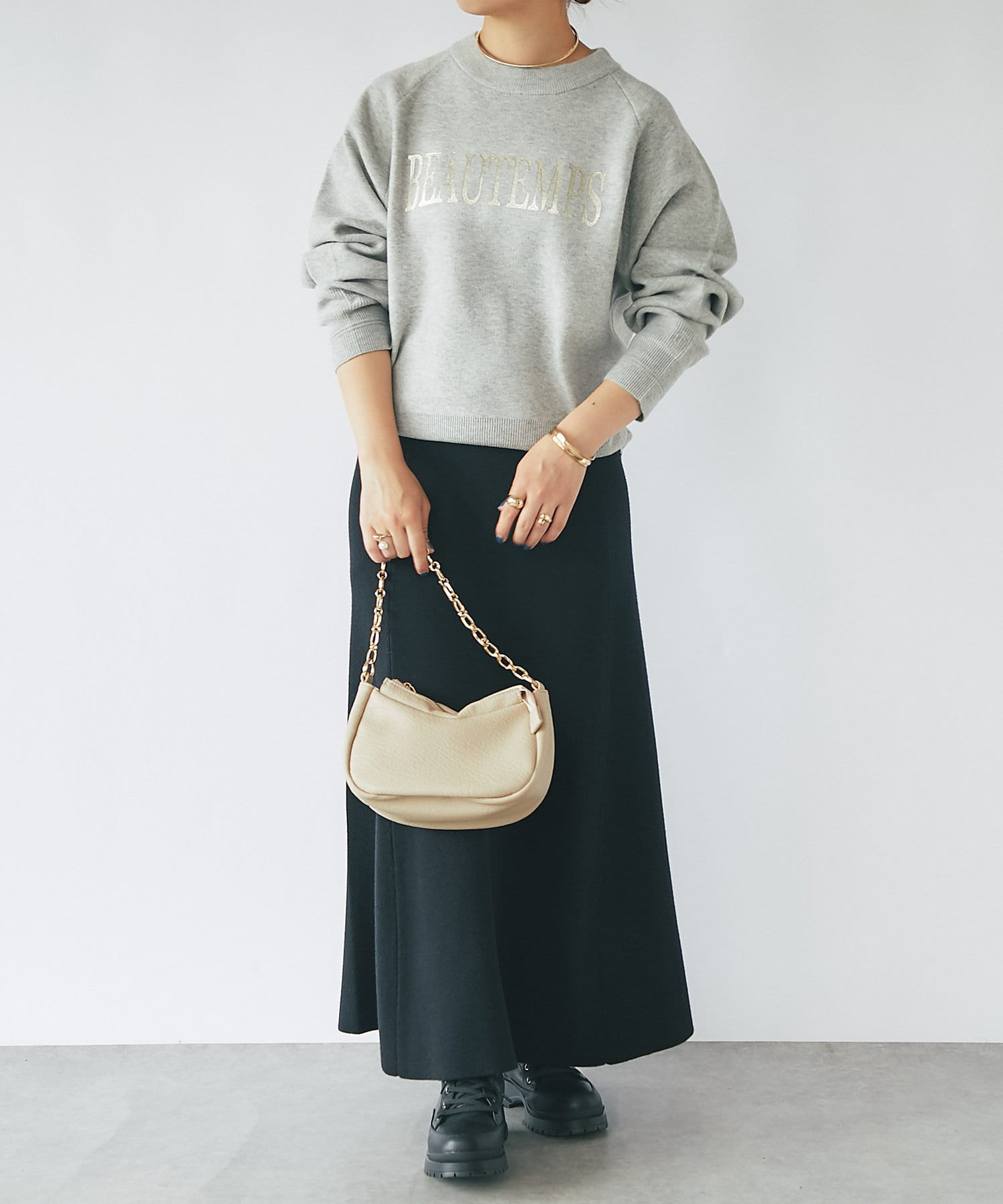 ・ロゴスウェットを箔プリントで上品にまとめた1枚