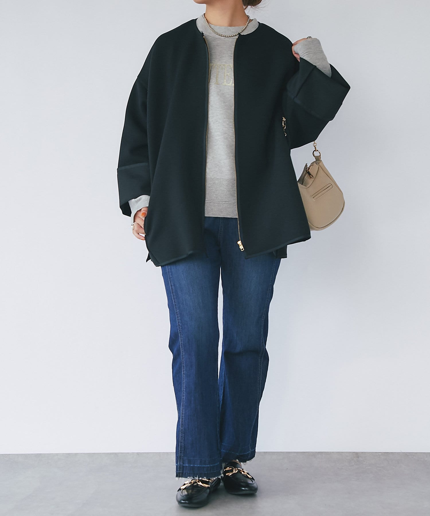 ・ボトムを選ばない前後差のあるレングスと程よいサイズ感で、