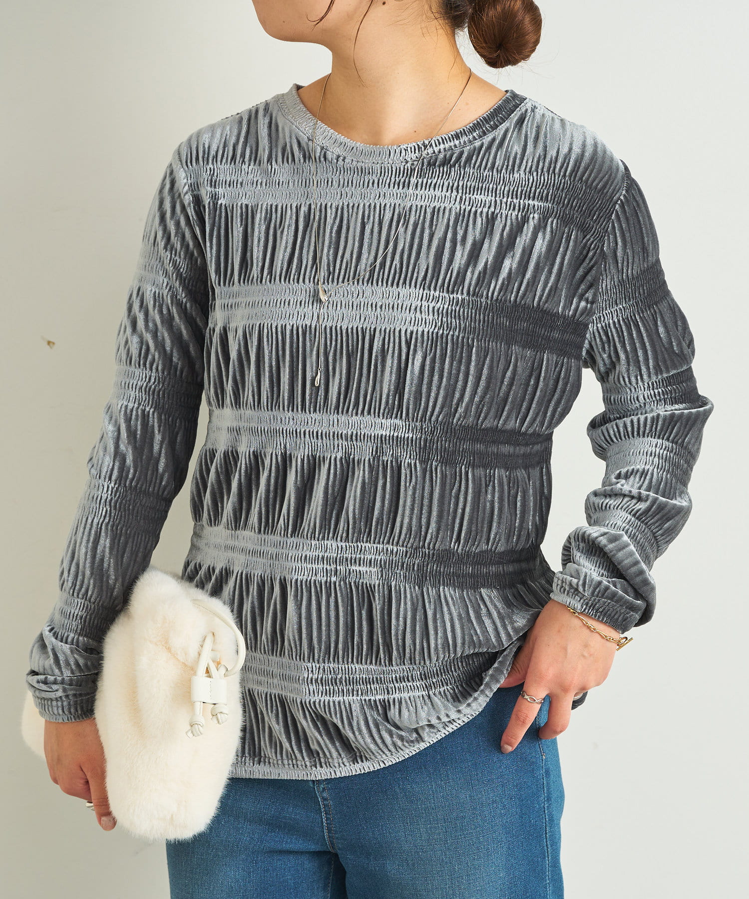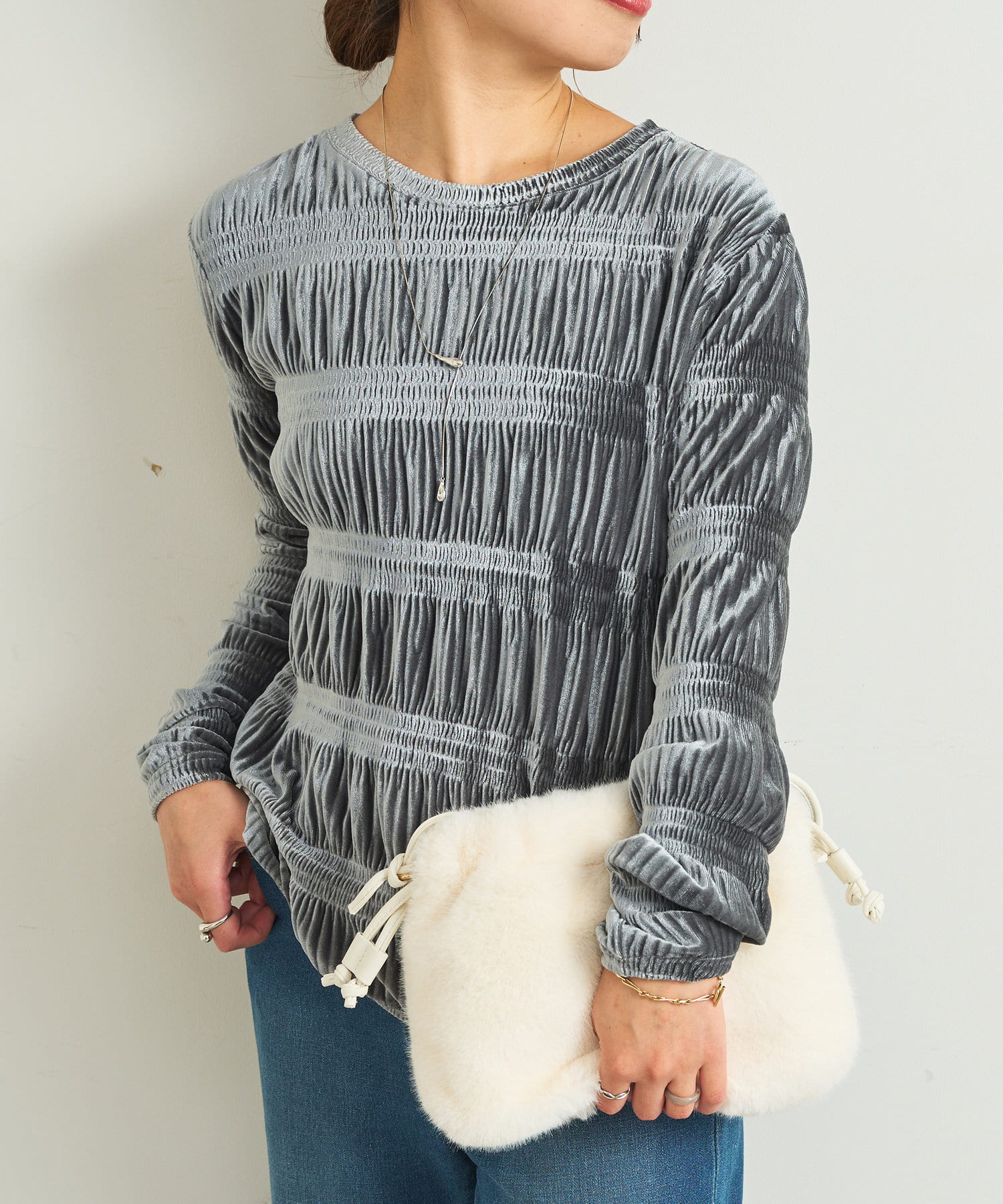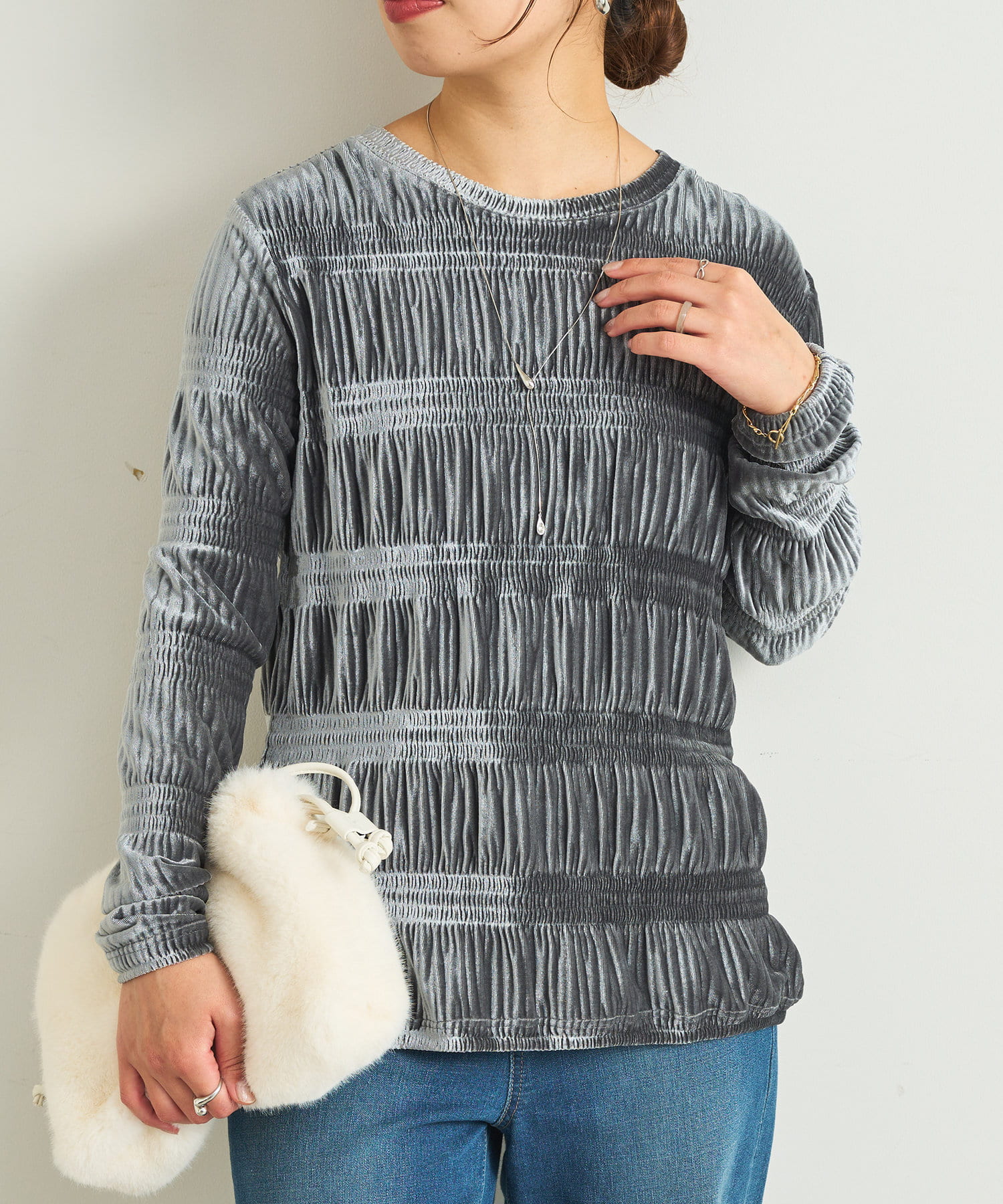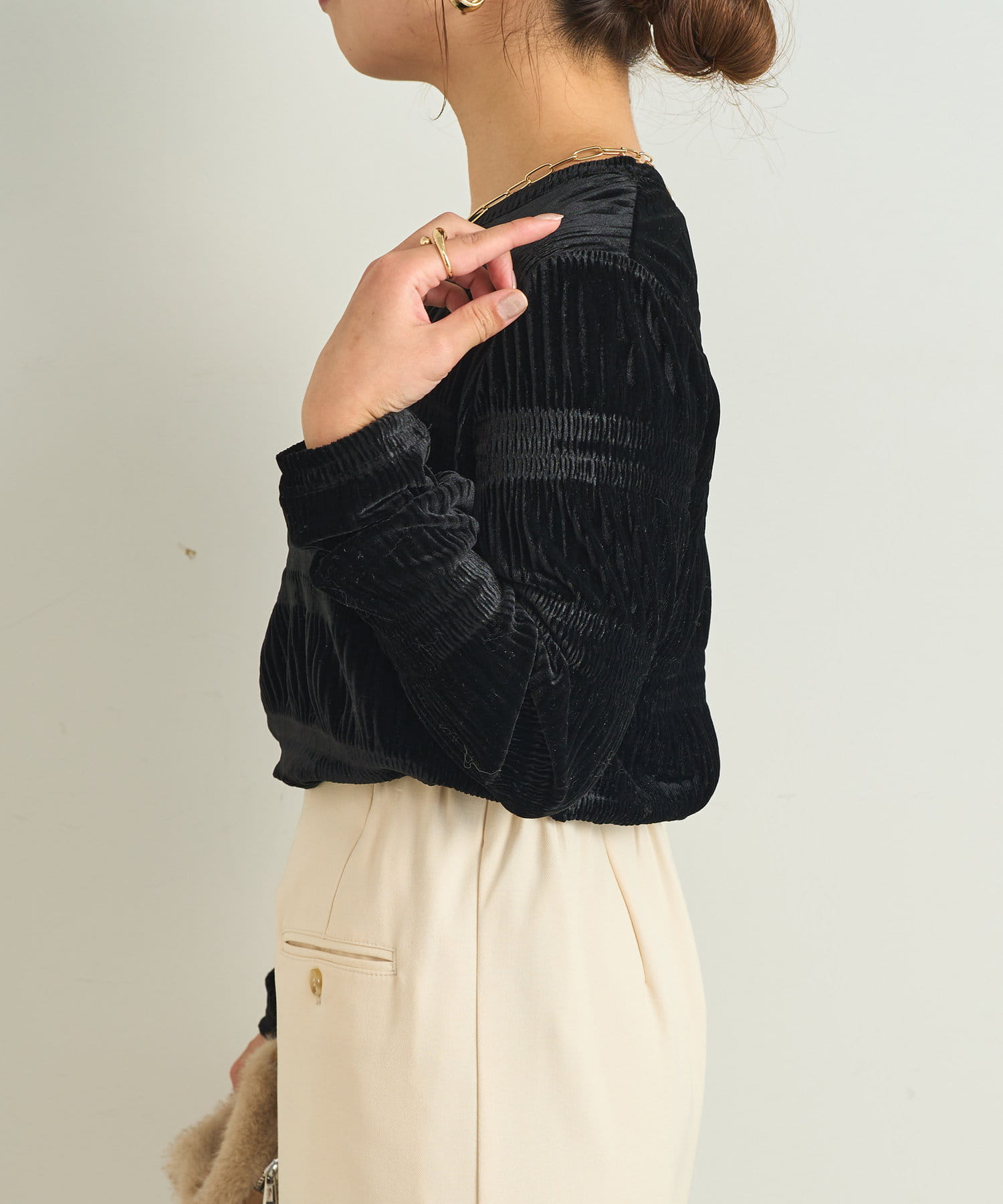 ランダムプリーツベロアトップス