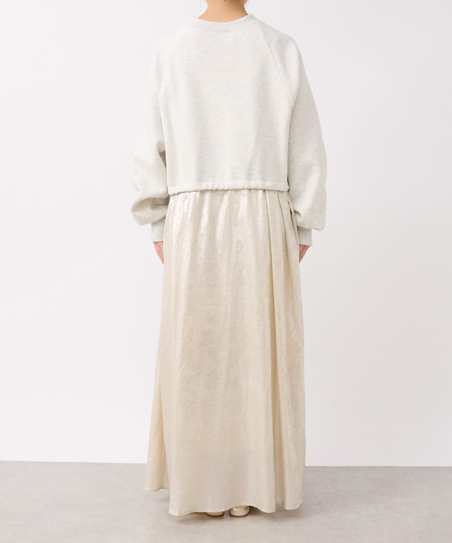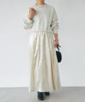 ポリエステル素材のスカートがドッキングしたロングワンピース