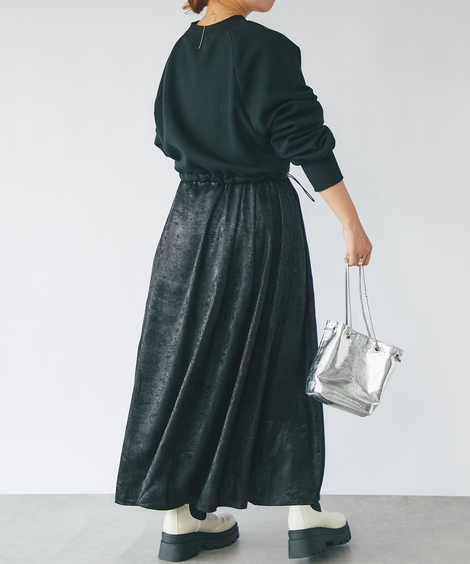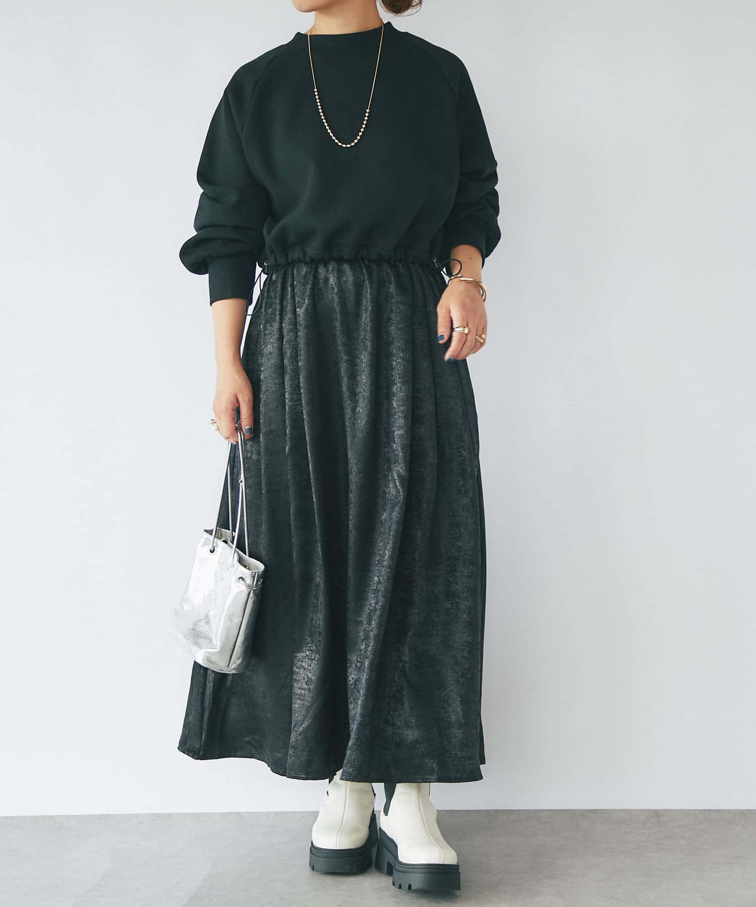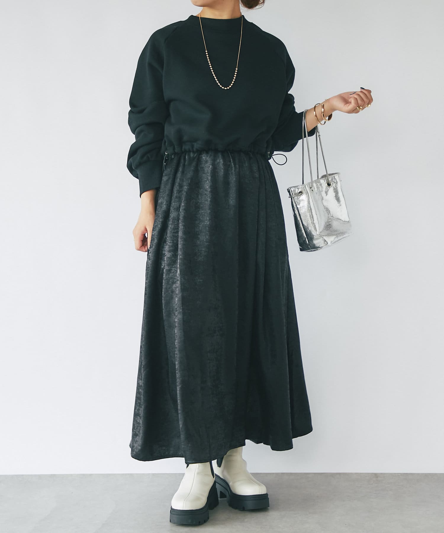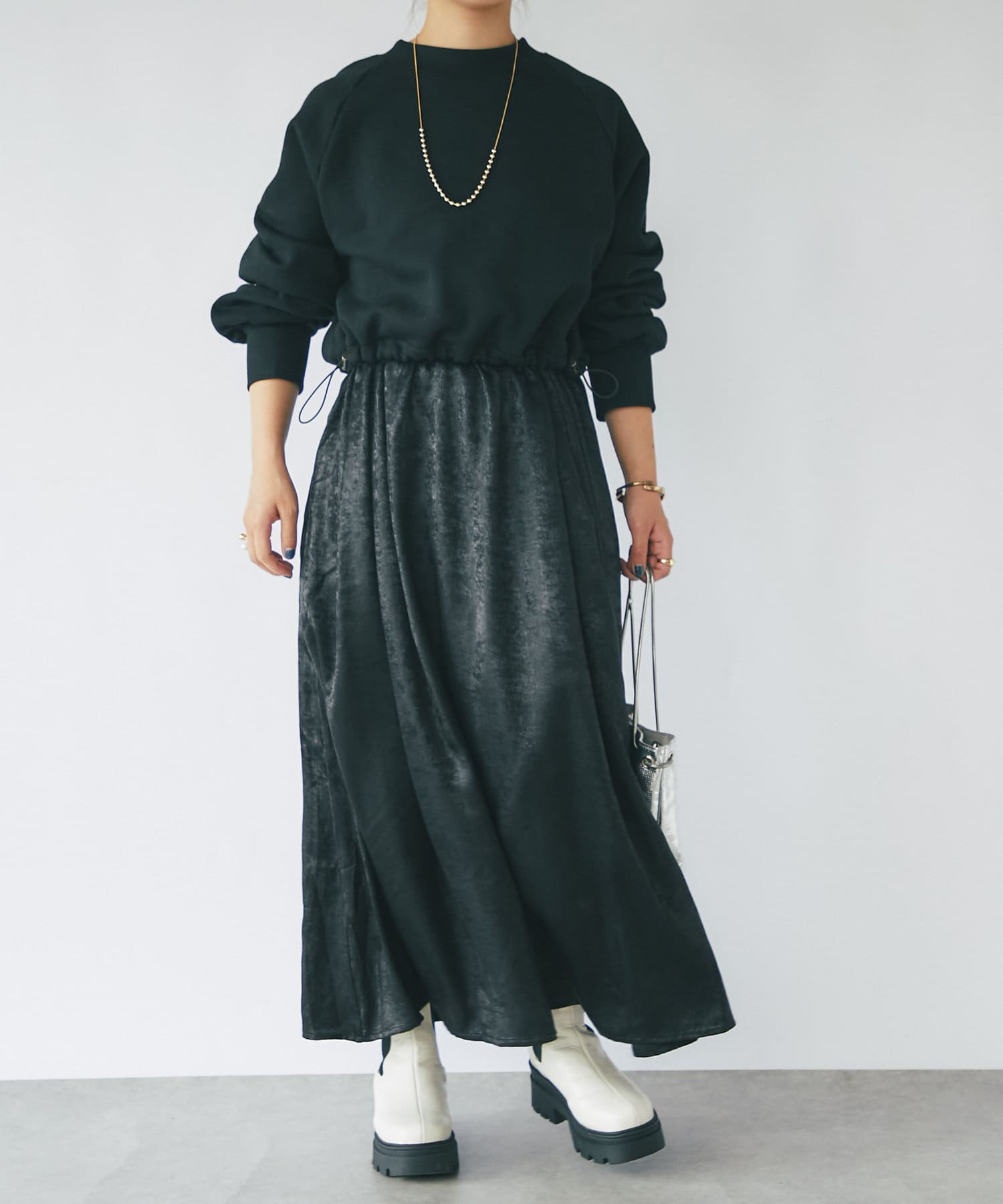 光沢感のあるスカート部分はゆとりもありドレッシーな雰囲気に♪