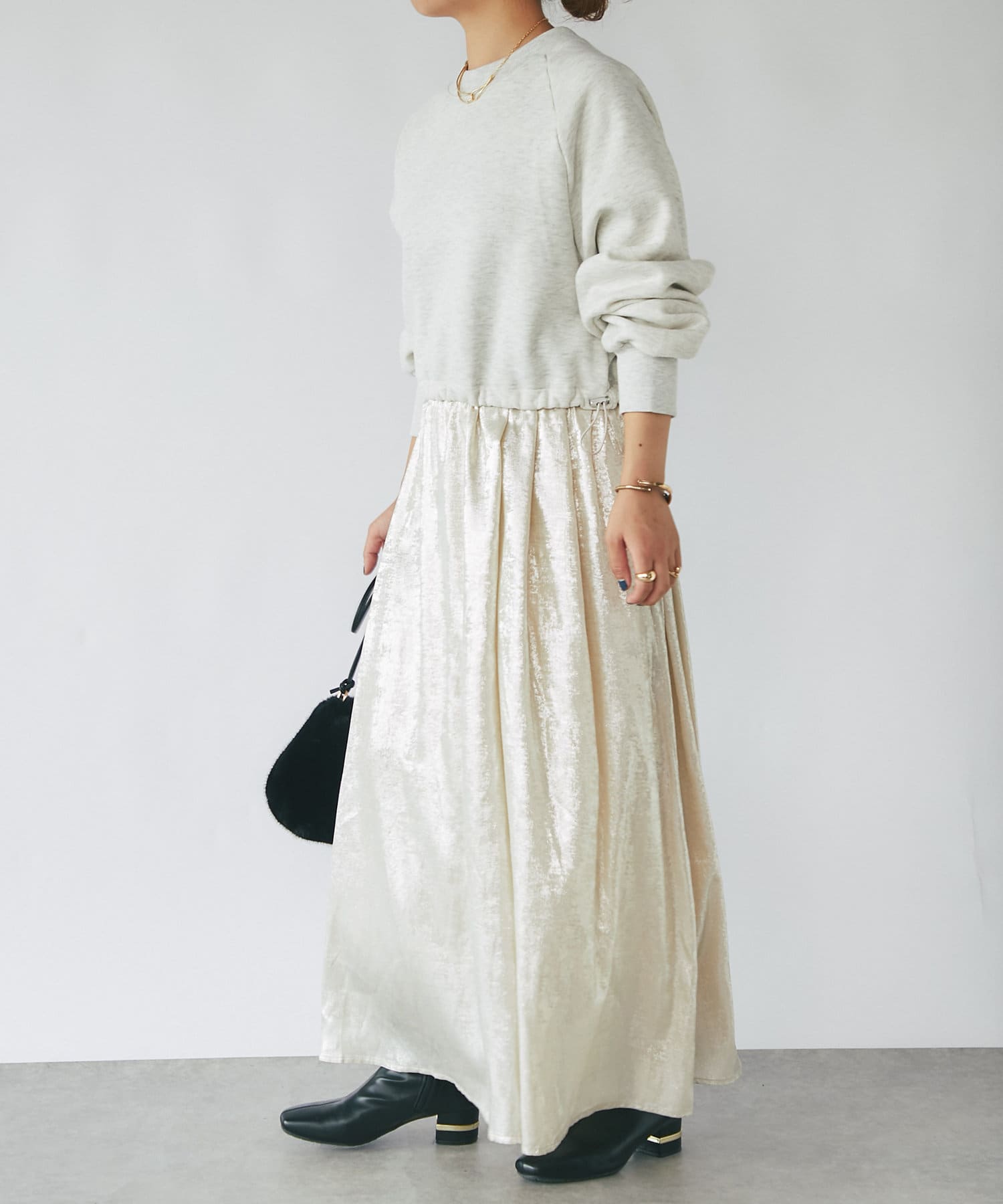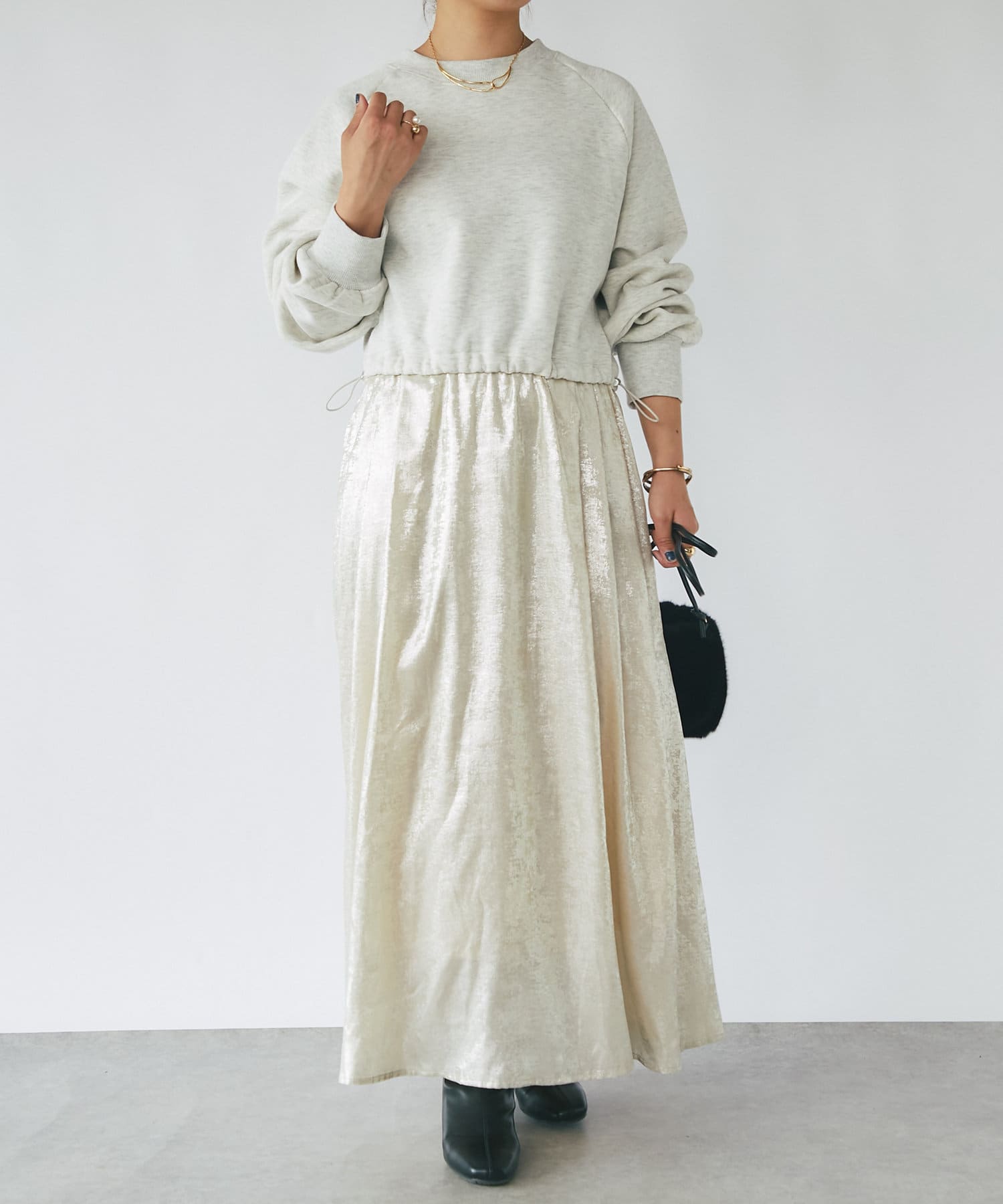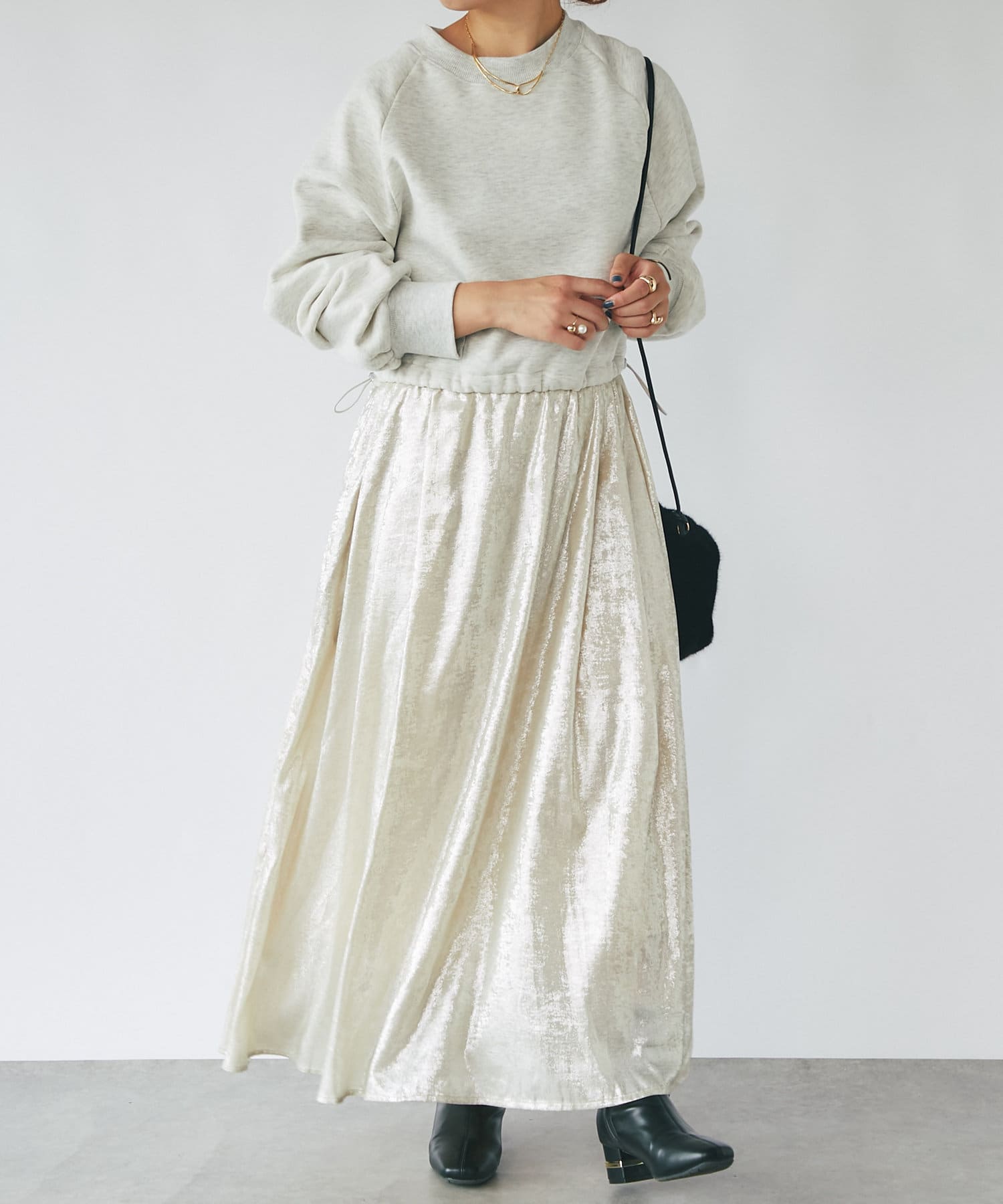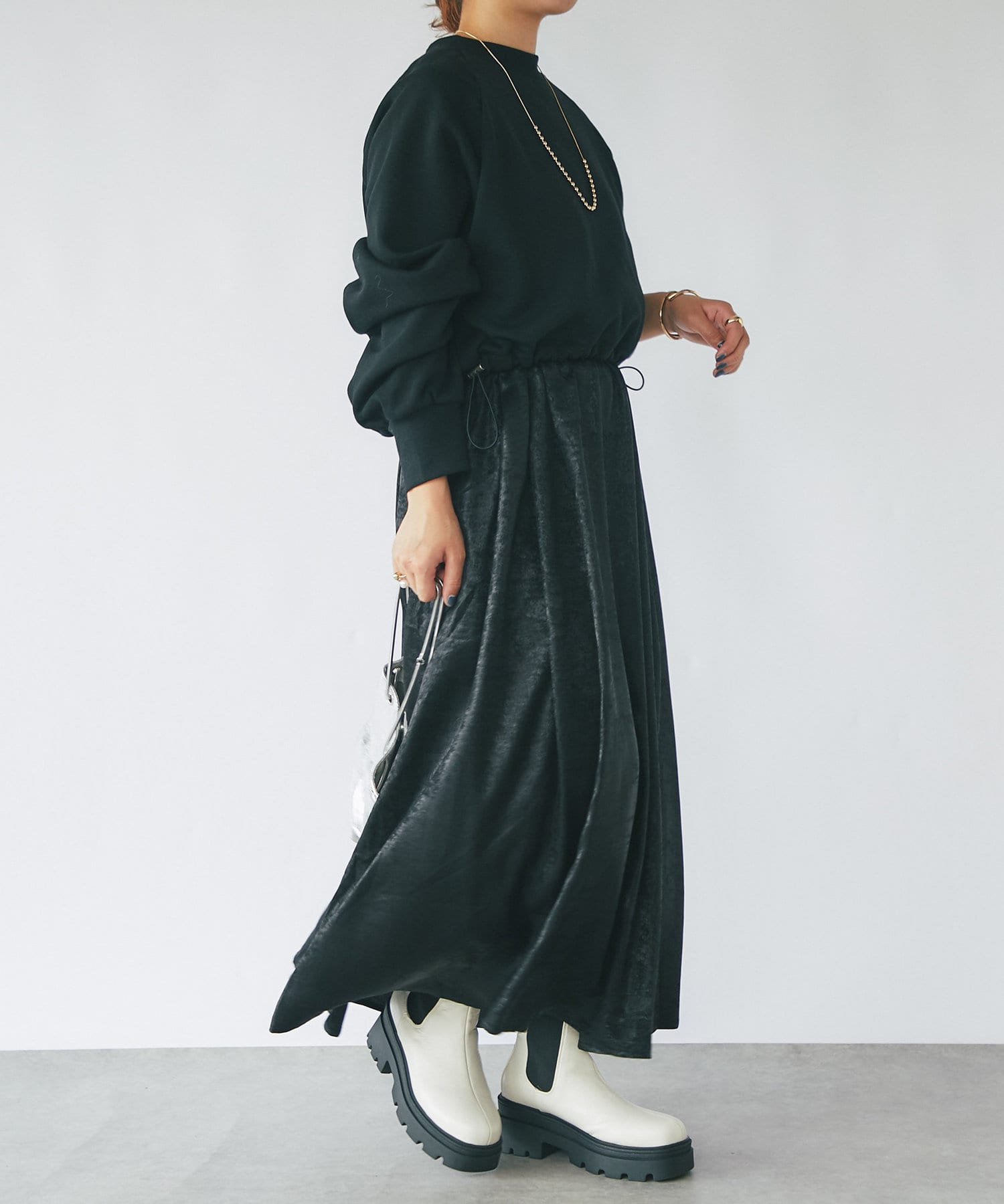 光沢感のあるスカート部分はゆとりもありドレッシーな雰囲気に♪