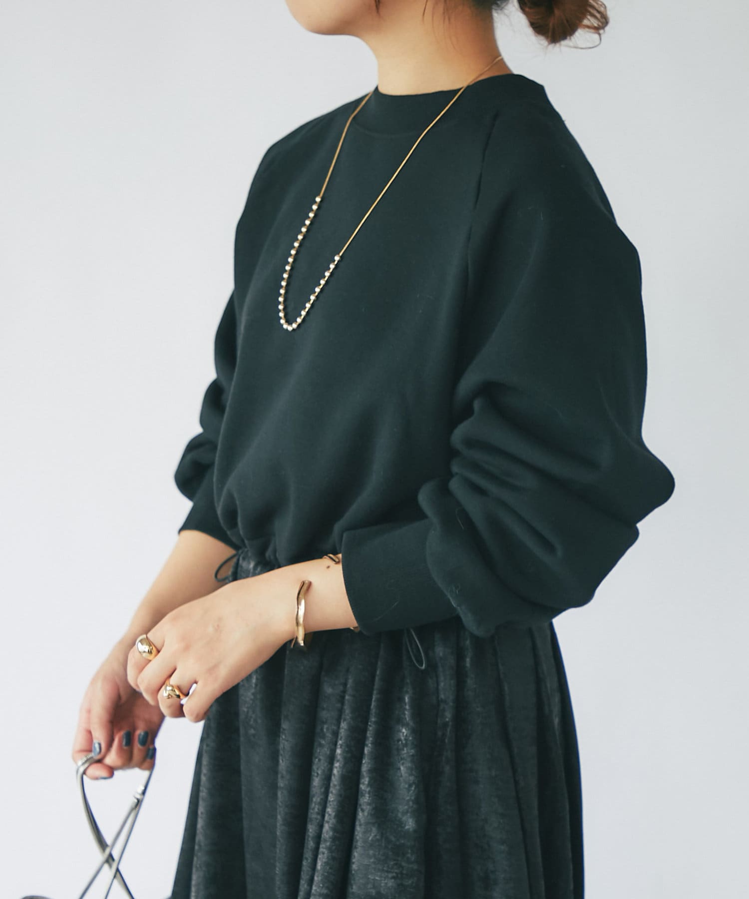 ・丸みのあるフォルムが魅力のスウェットプルオーバーと、