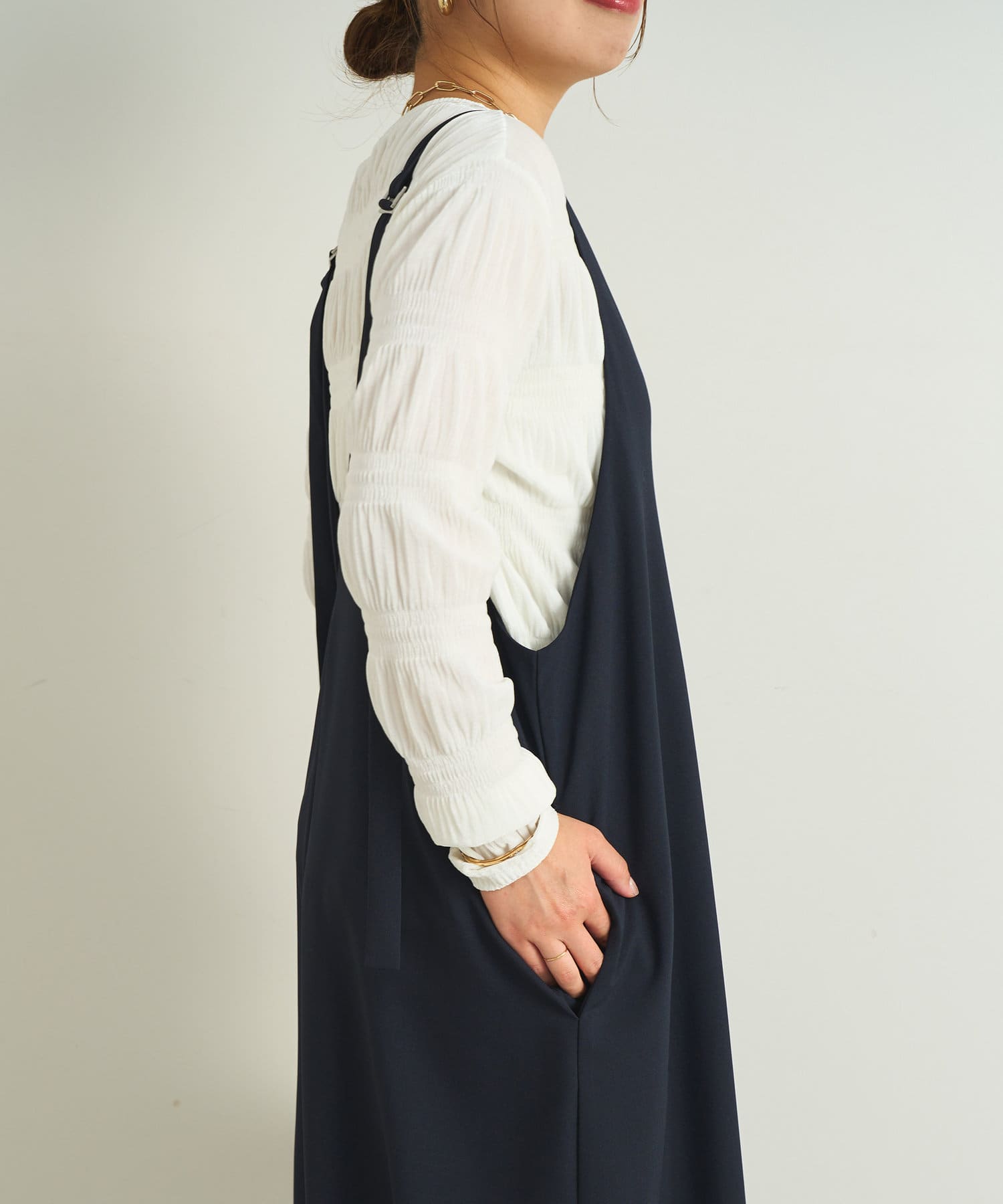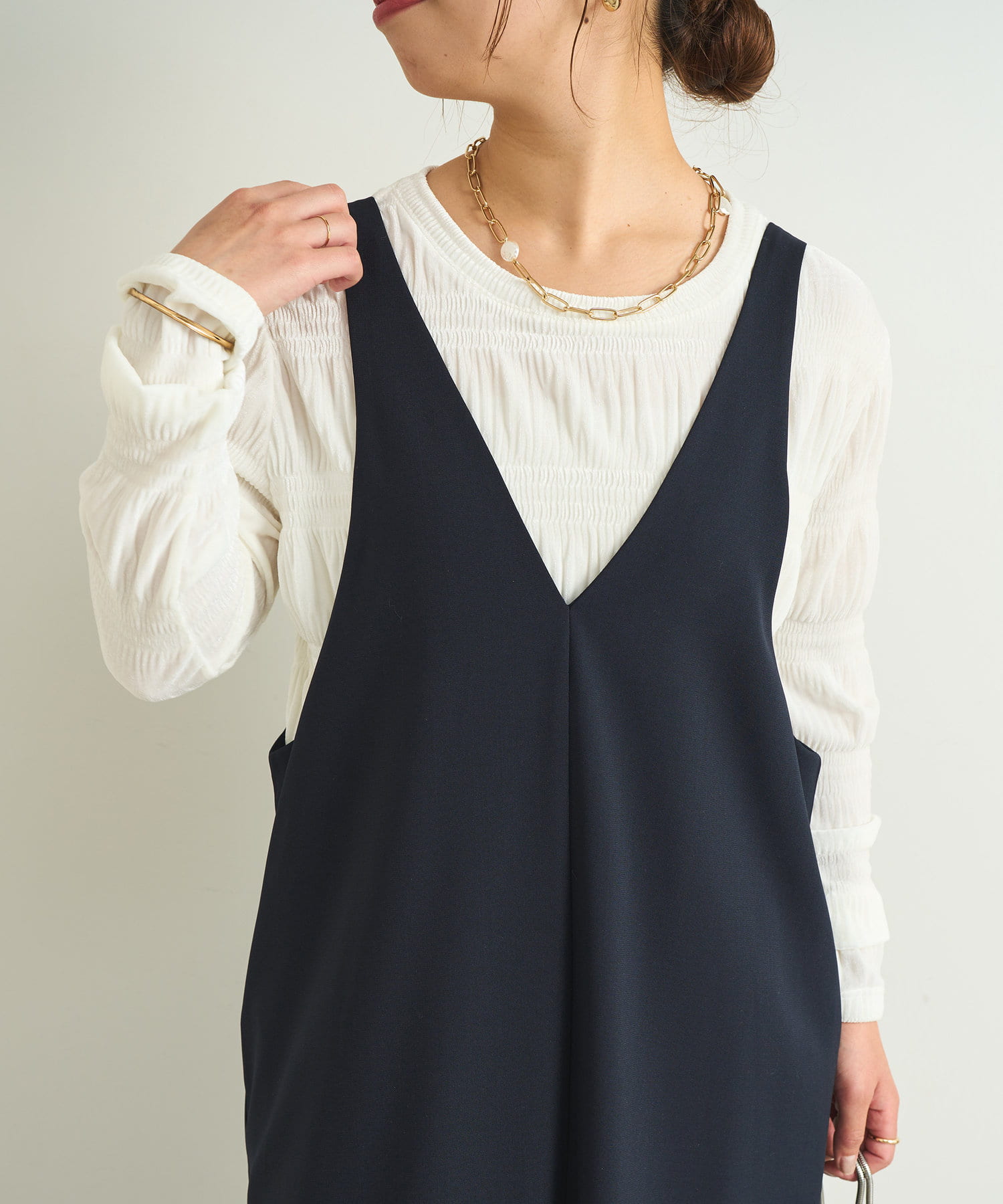 インナーにはニットやブラウスなど合わせ易いデザイン