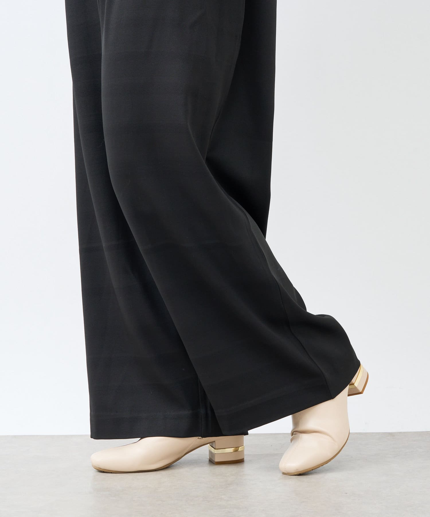 ・ワイドパンツのシルエットで、脚のラインを拾いすぎないのもポイント