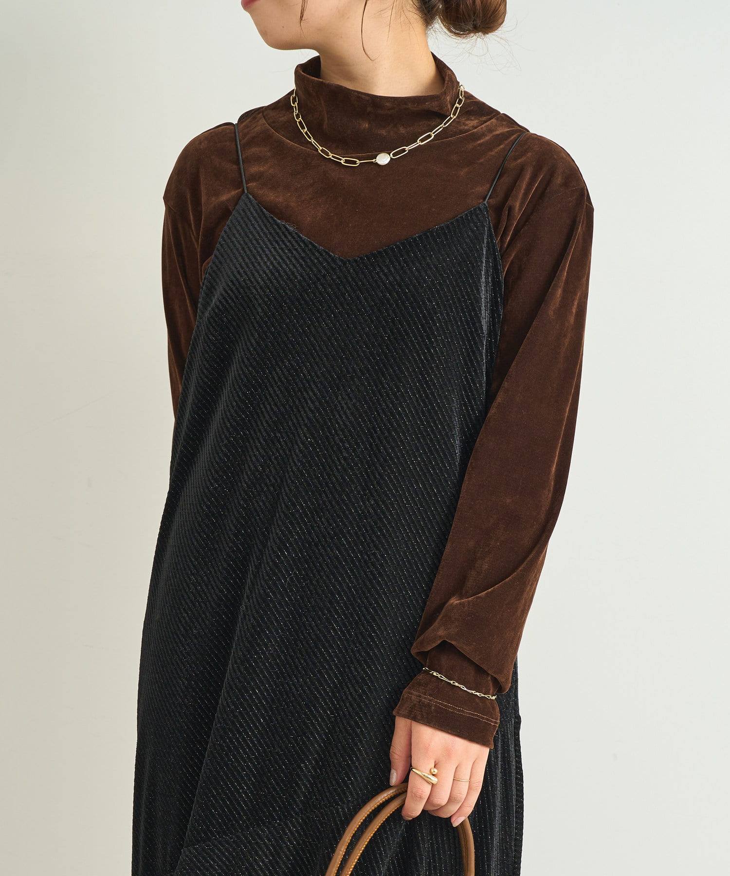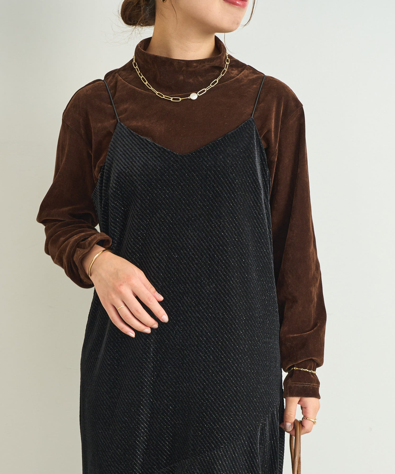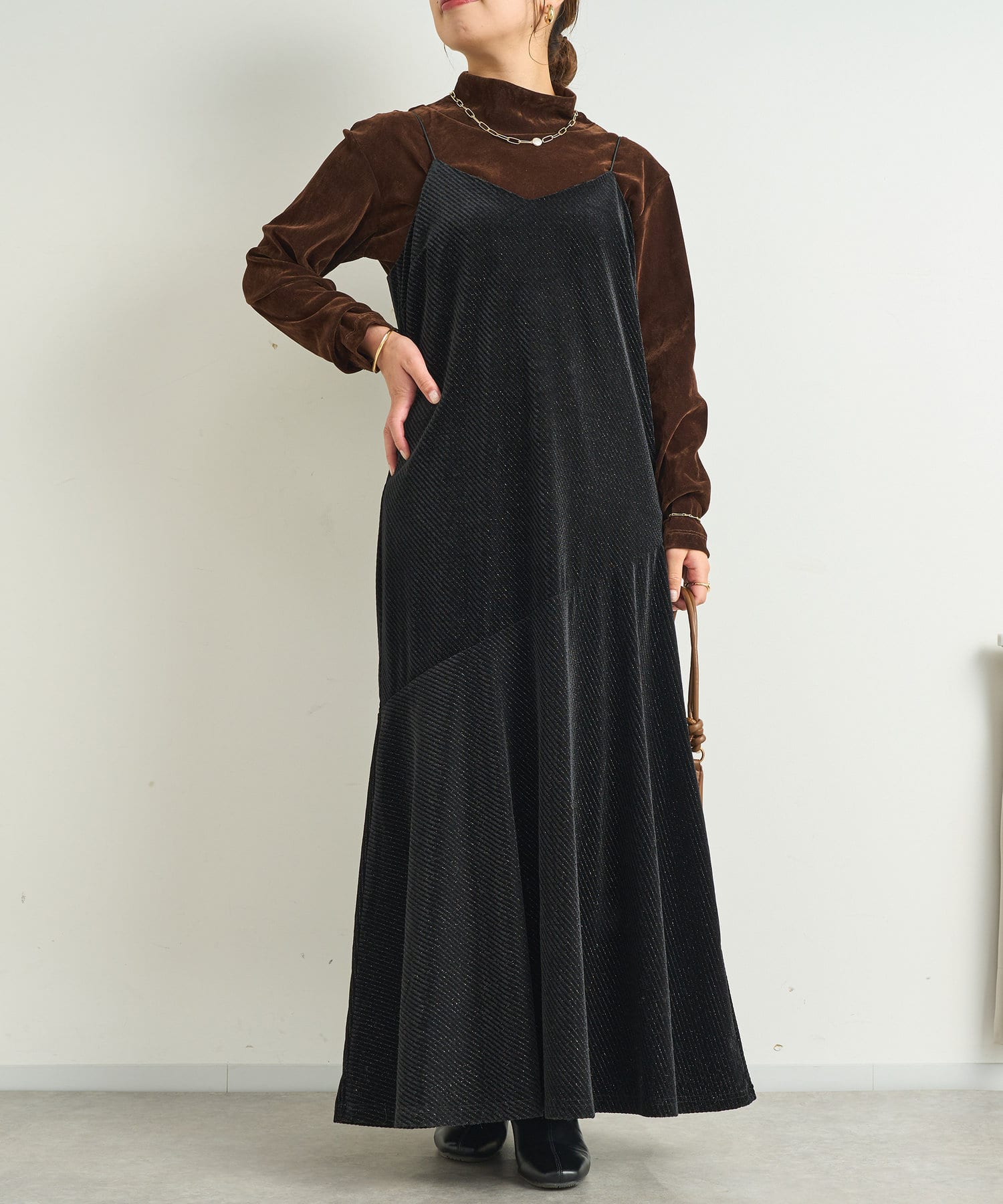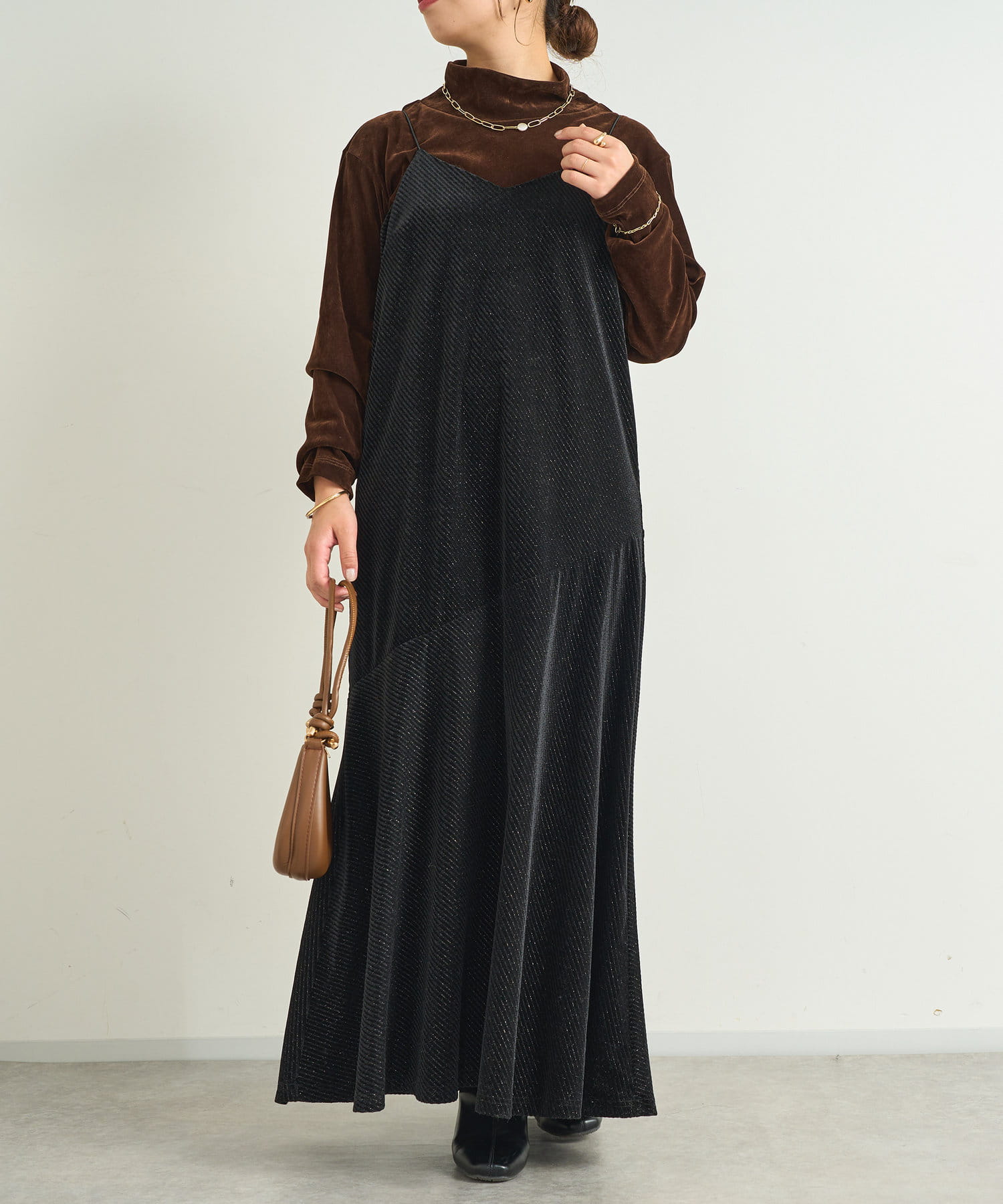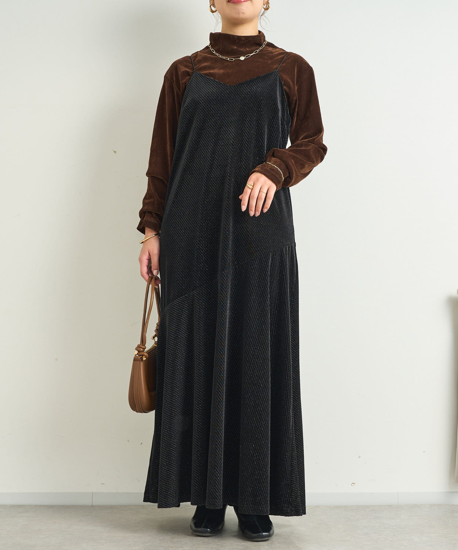 ・ベロア調のやや光沢感のある素材が印象的なワンピース