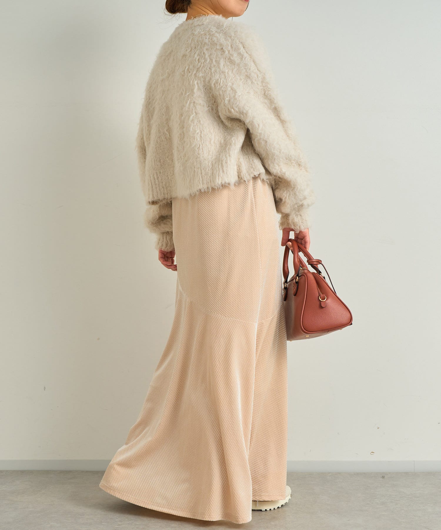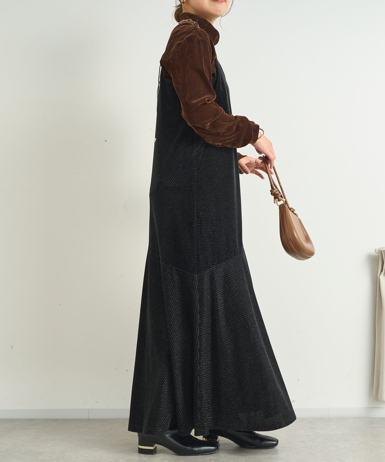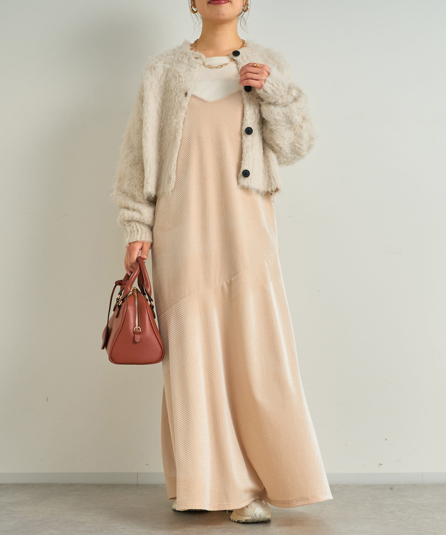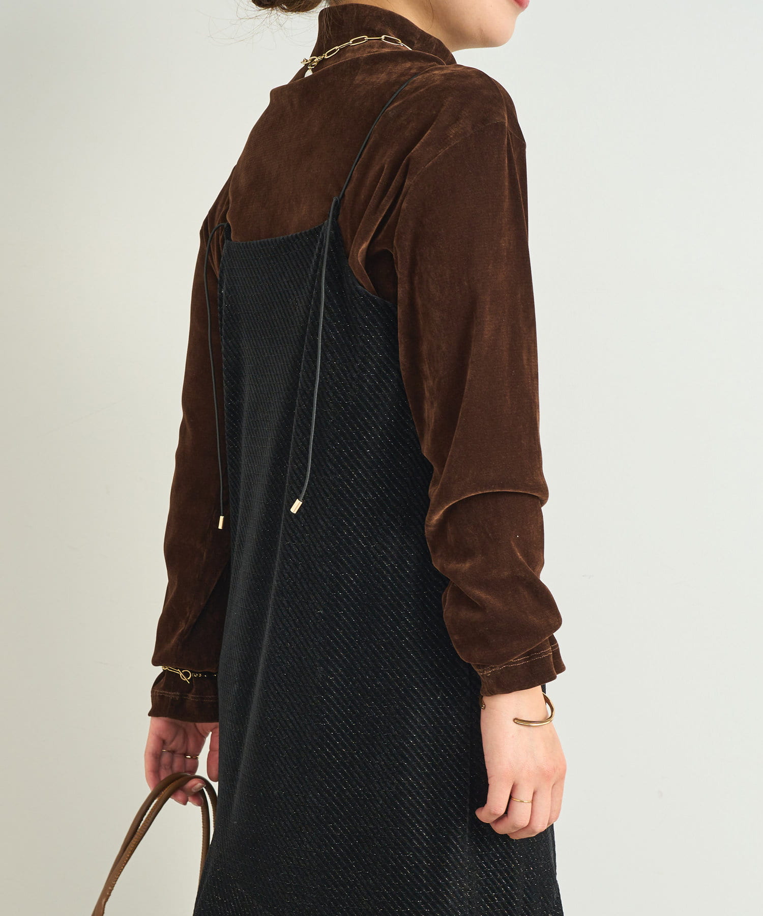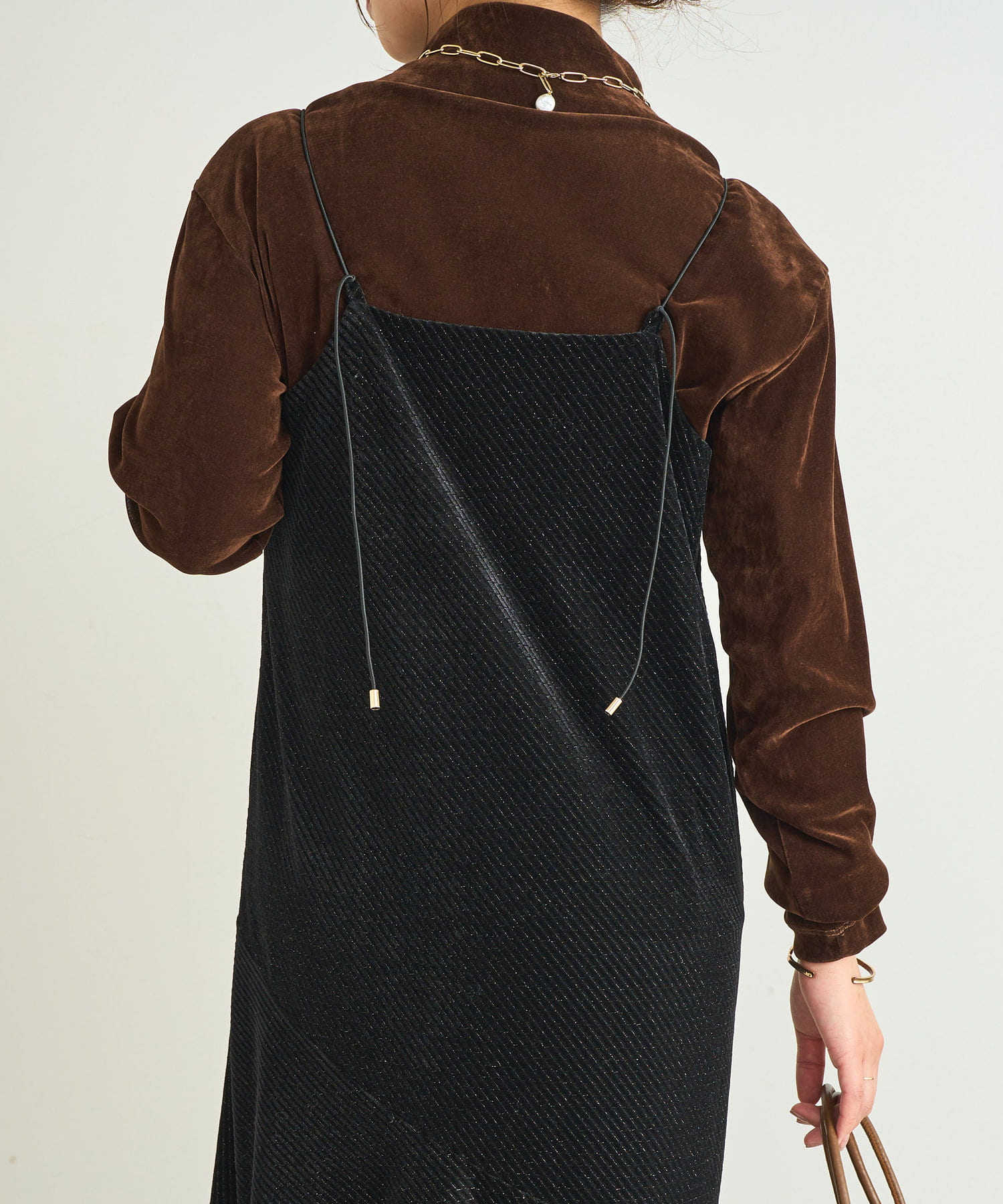 ・ベロア調のやや光沢感のある素材が印象的なワンピース