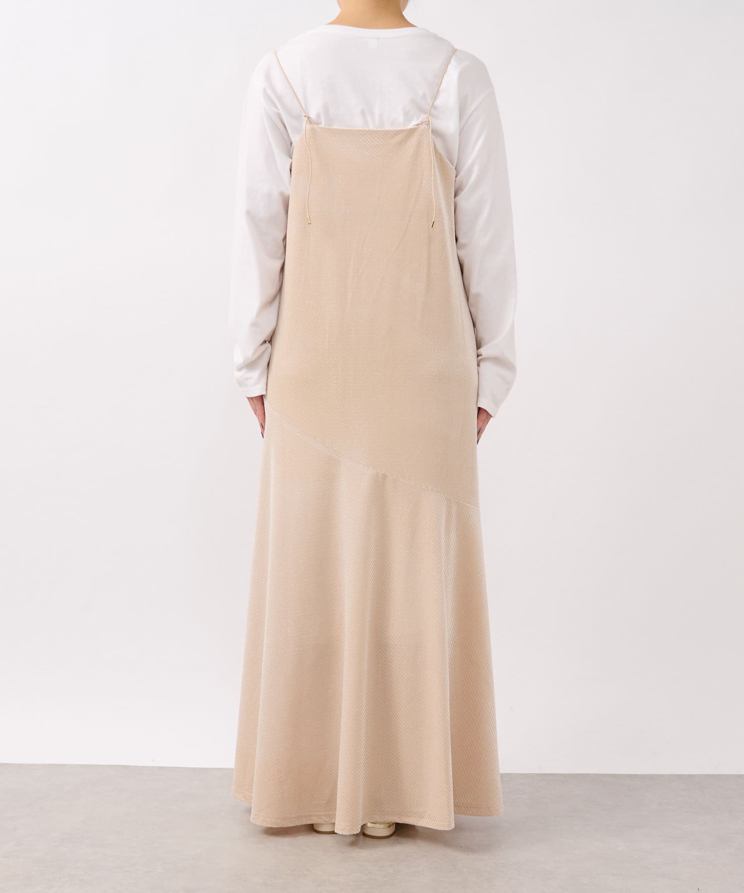 控えめな光沢感が大人かわいい。ほっそり見えのキャミワンピース