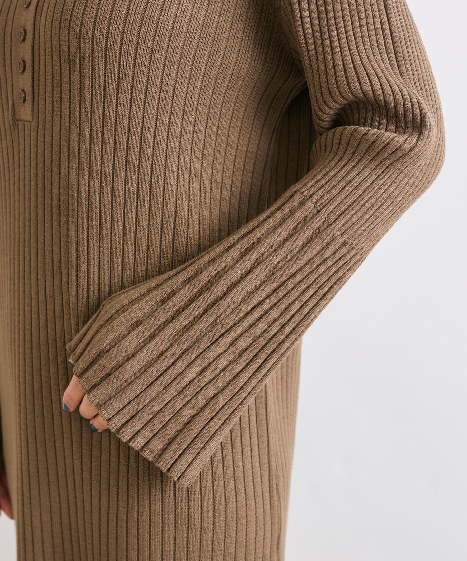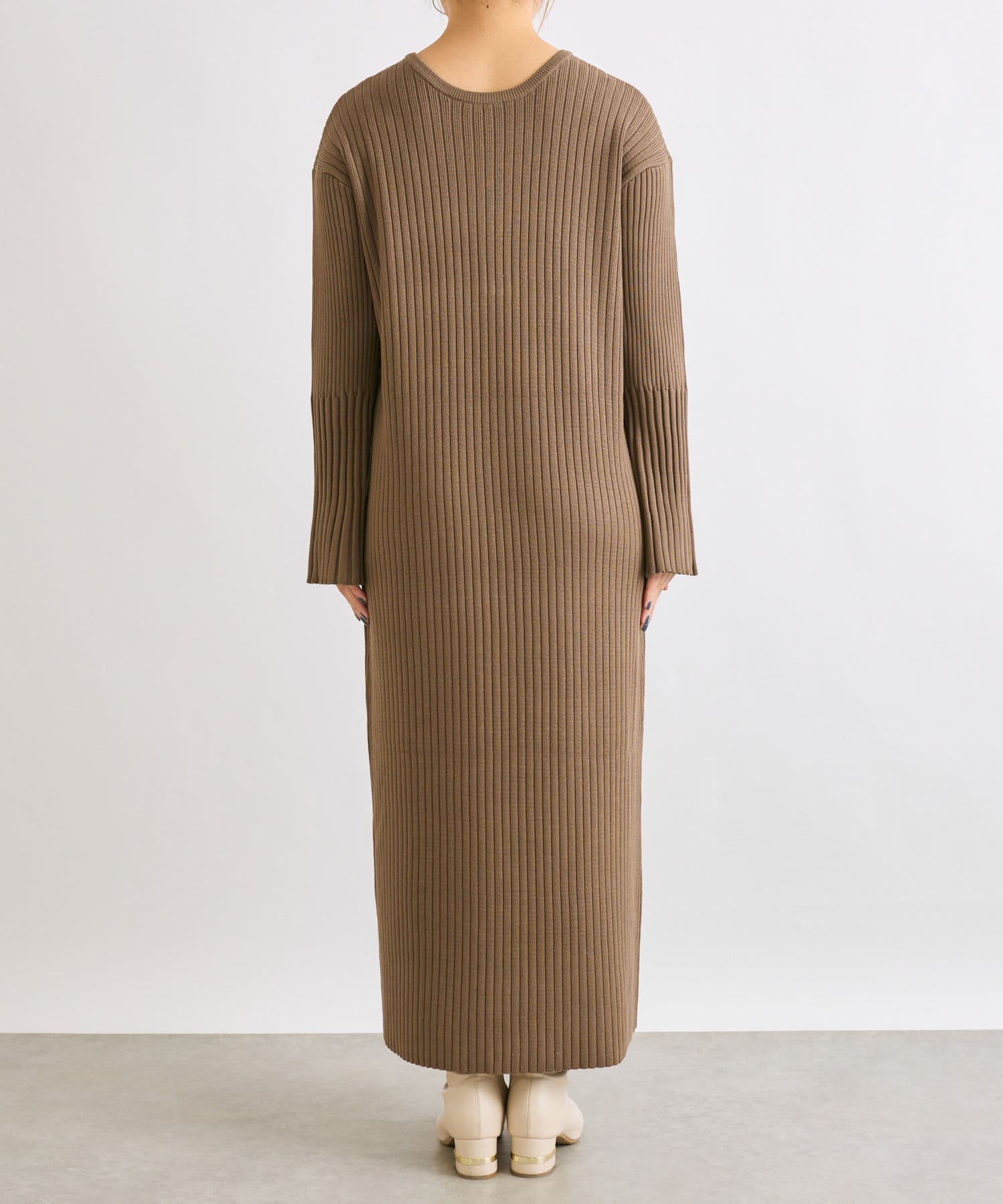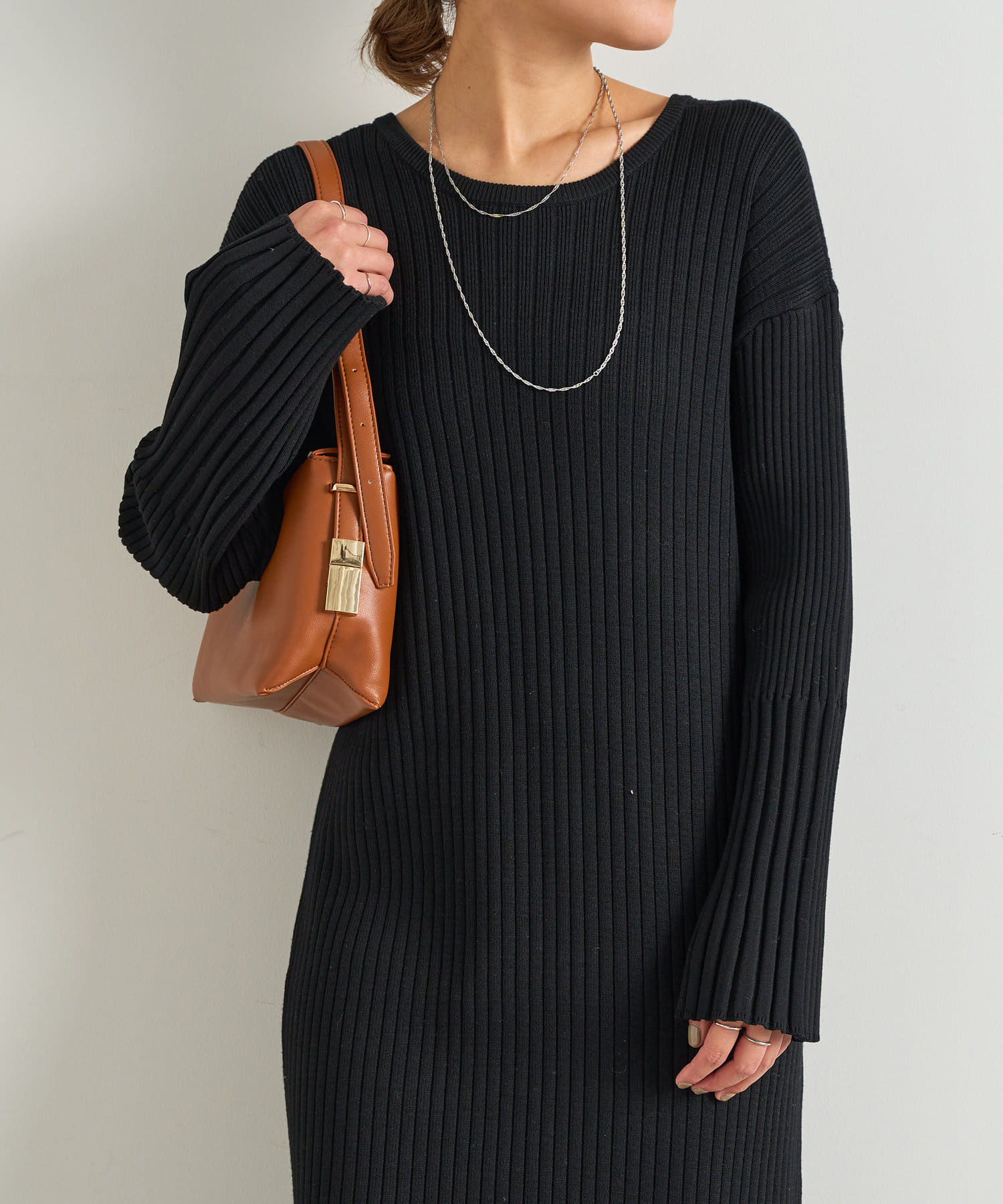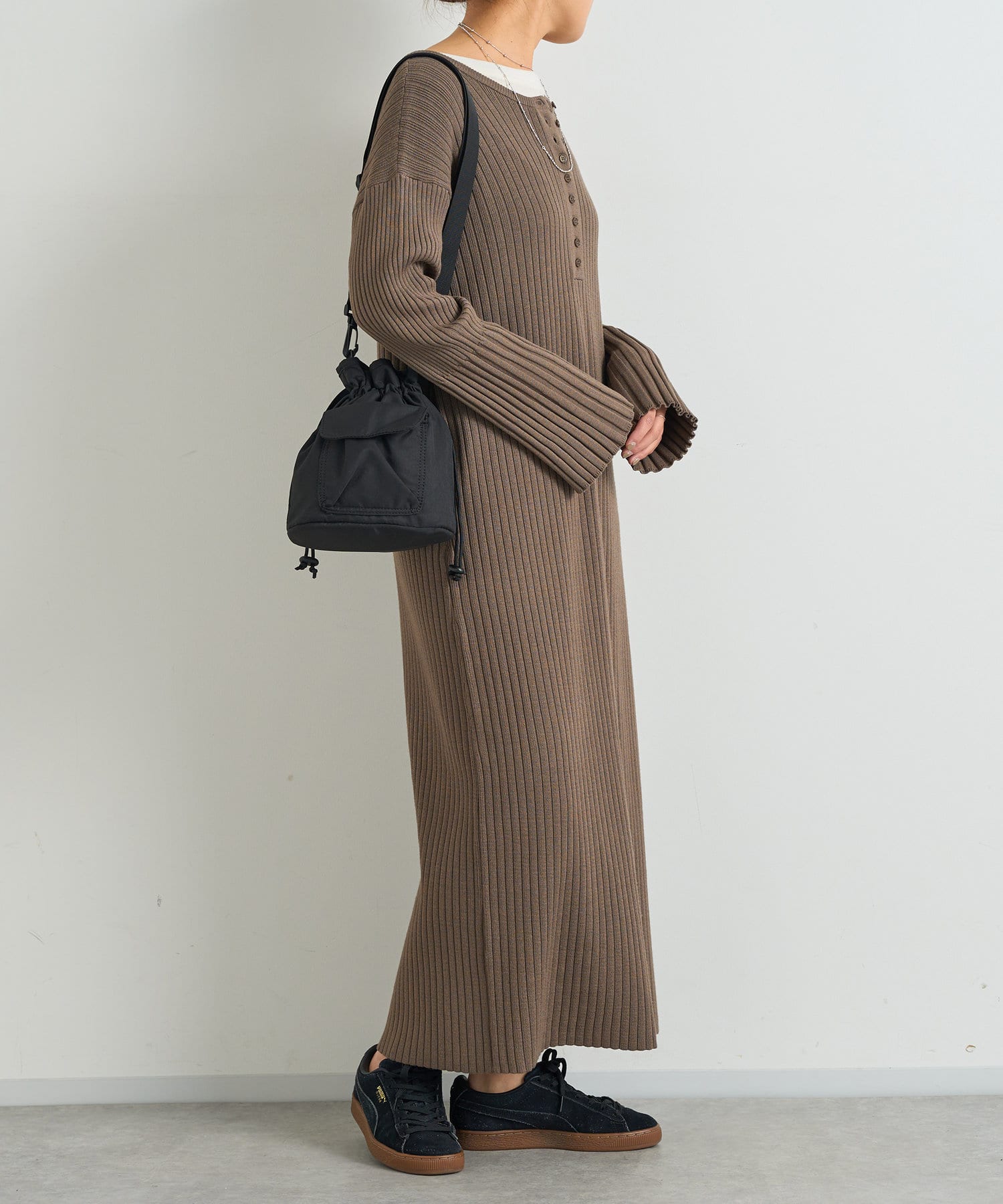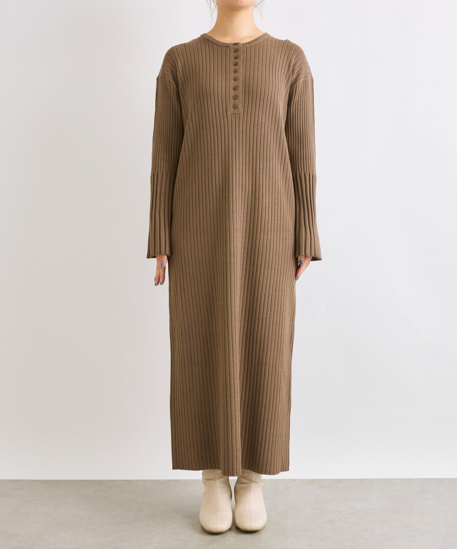 ・釦側とラウンドネックどちらも前で着ていただける前後2WAYでの着用が可能なリブワンピ