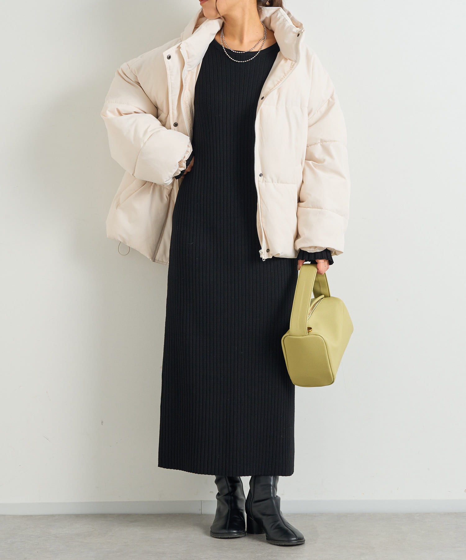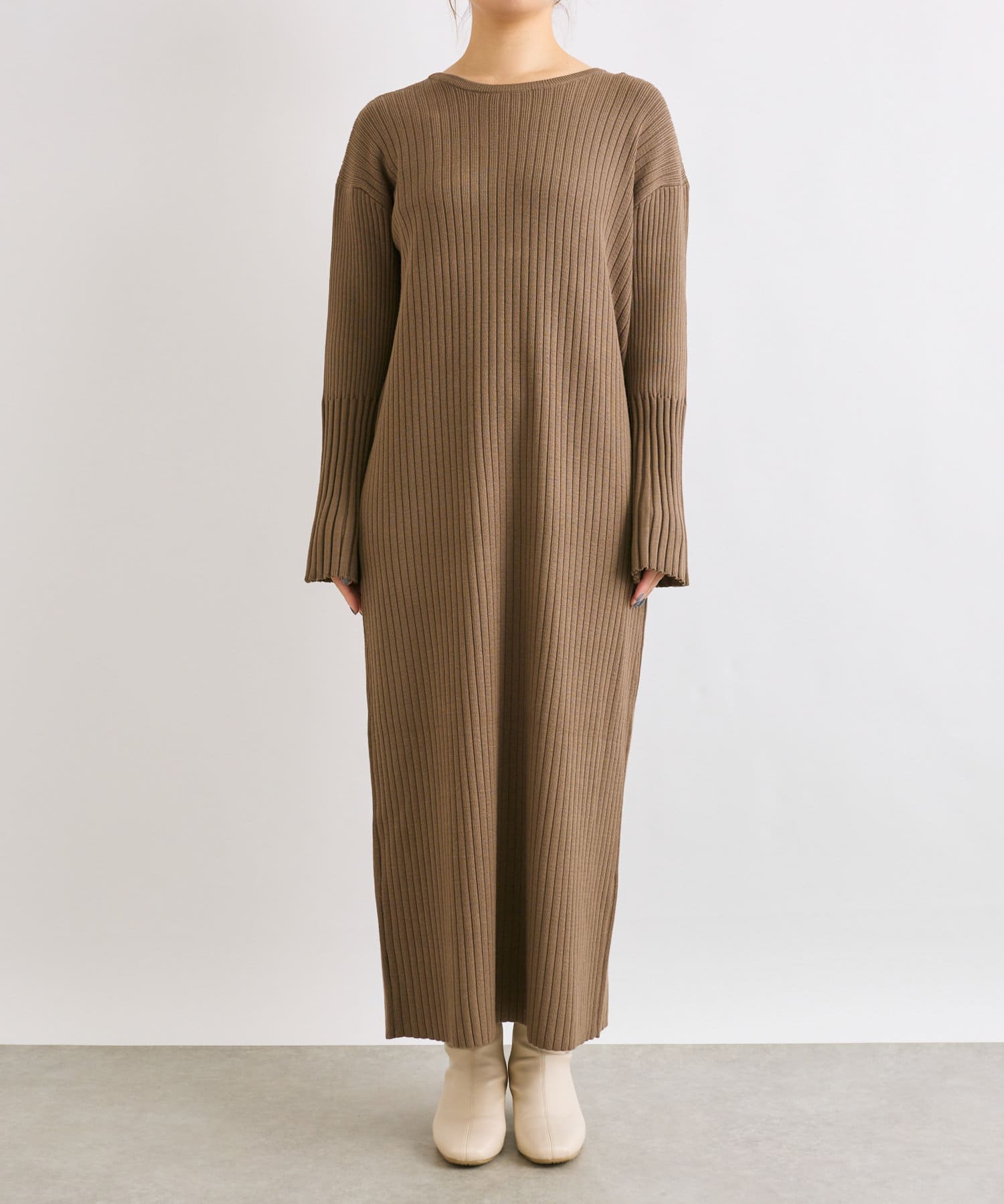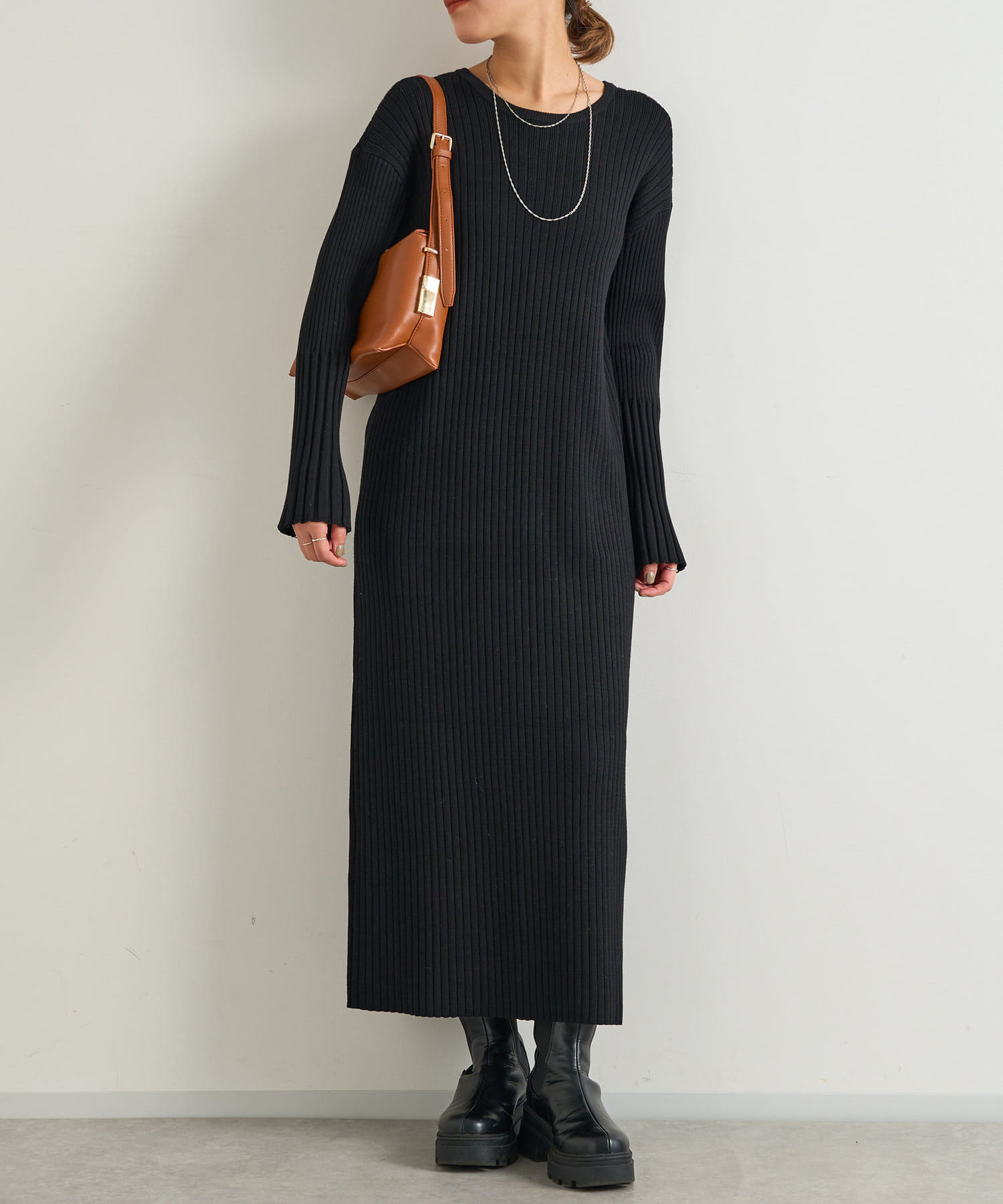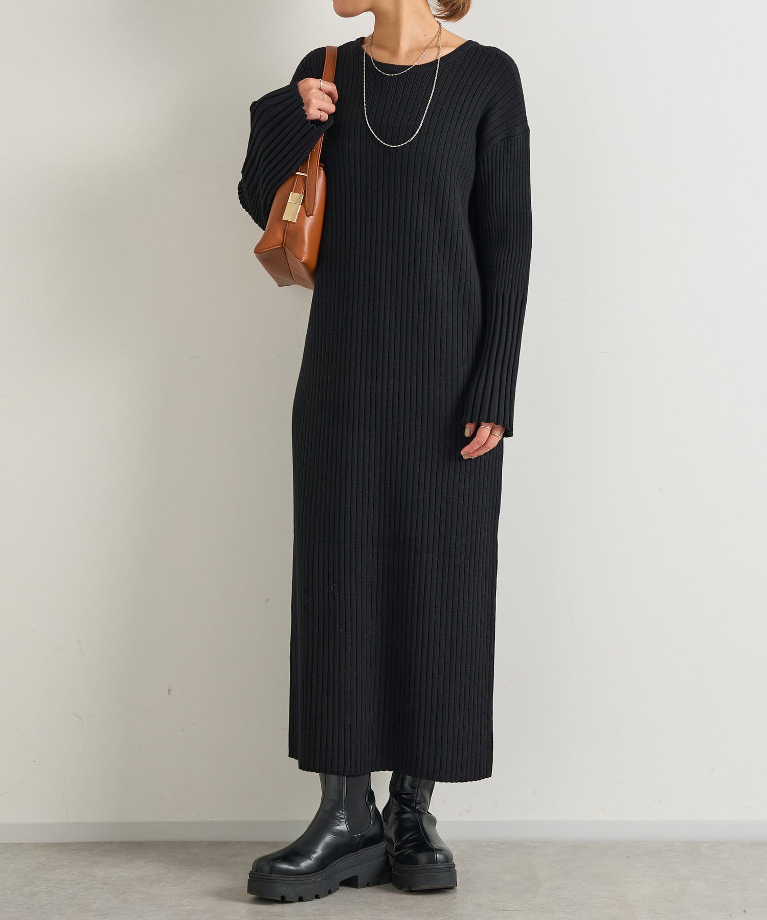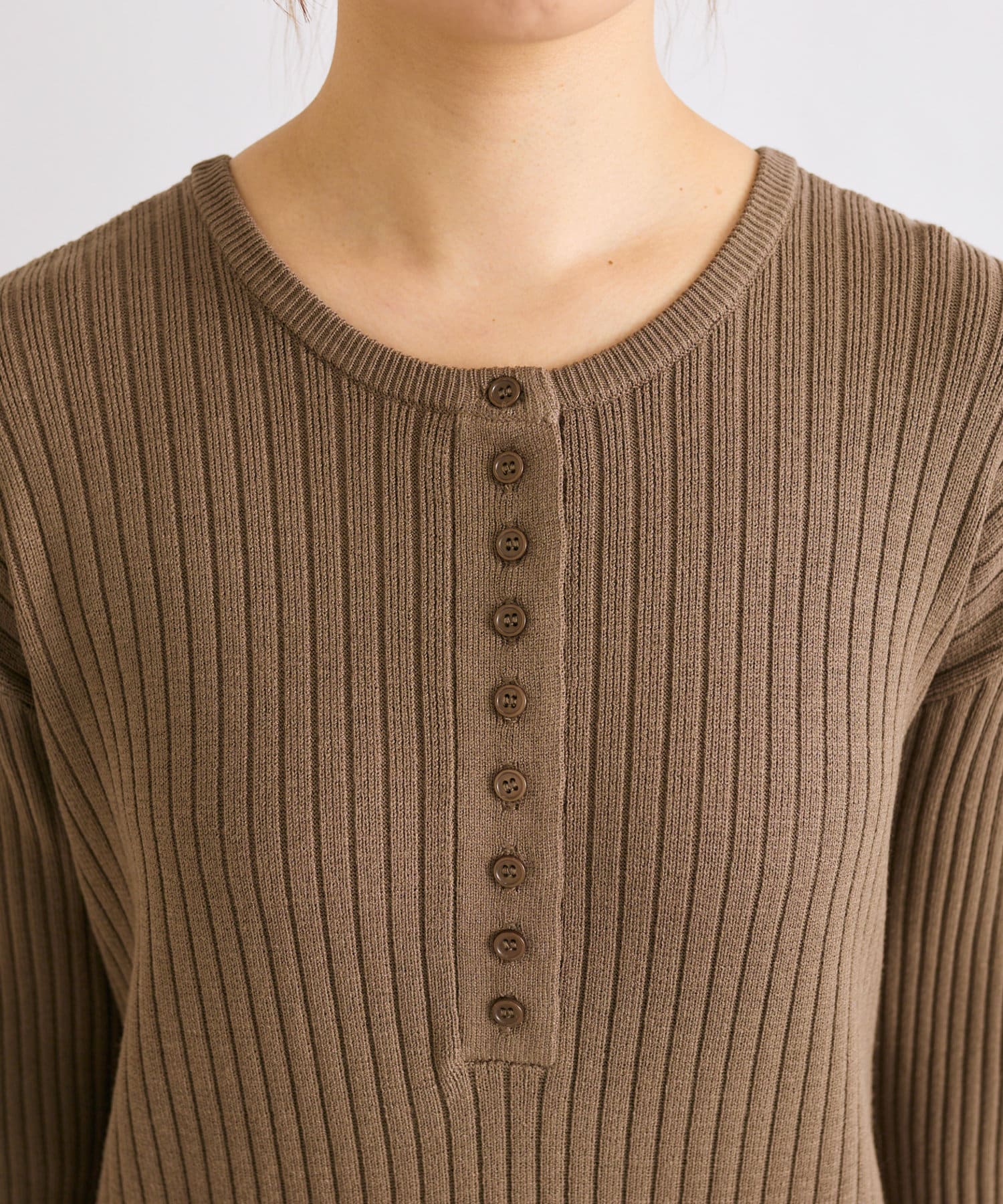 ・釦側とラウンドネックどちらも前で着ていただける前後2WAYでの着用が可能なリブワンピ