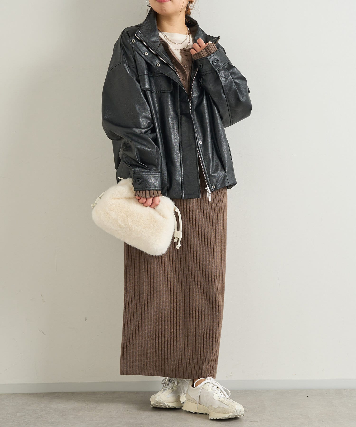 ・リブ仕様で伸縮性があるためベストと着用するなどレイヤードの可能