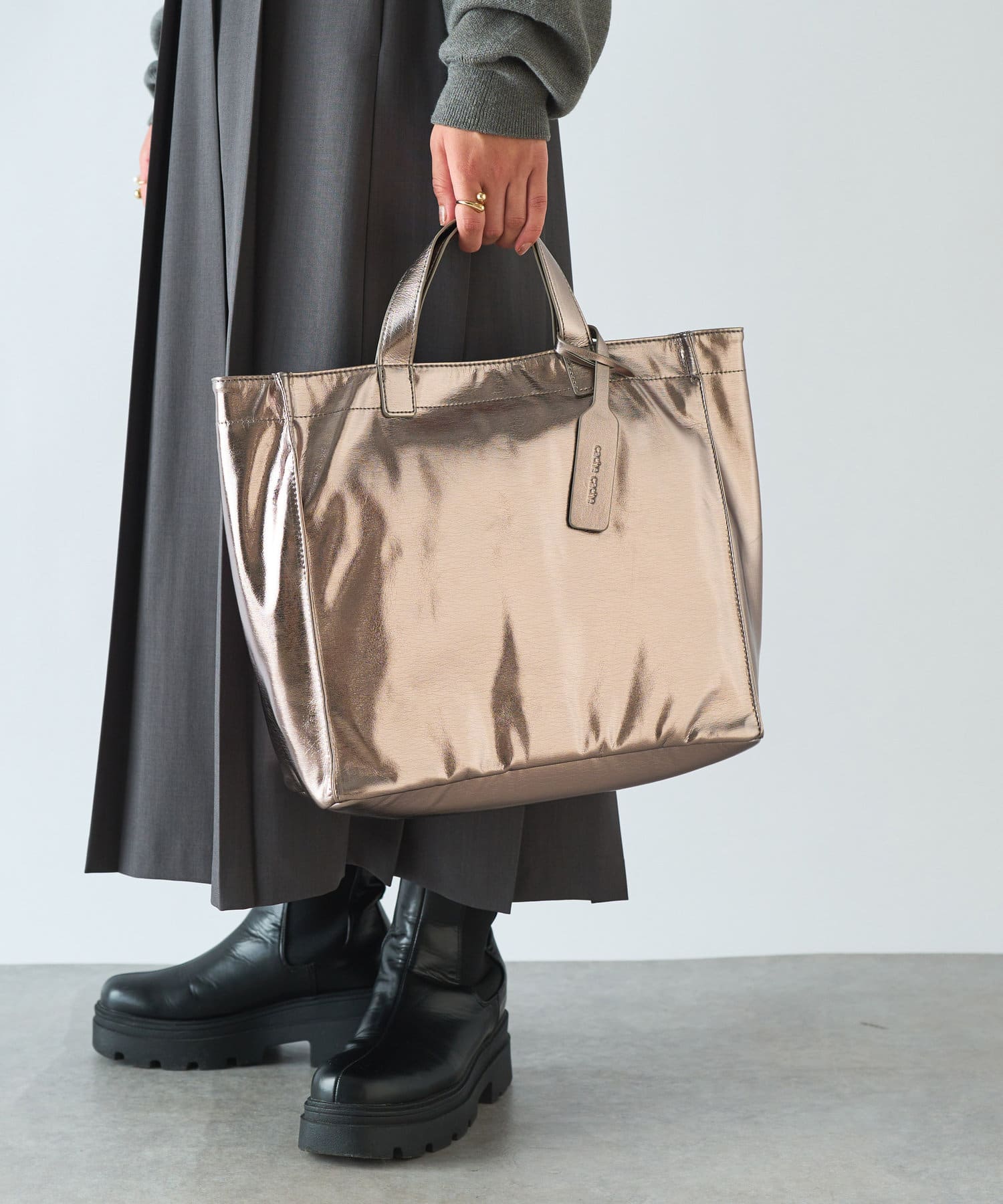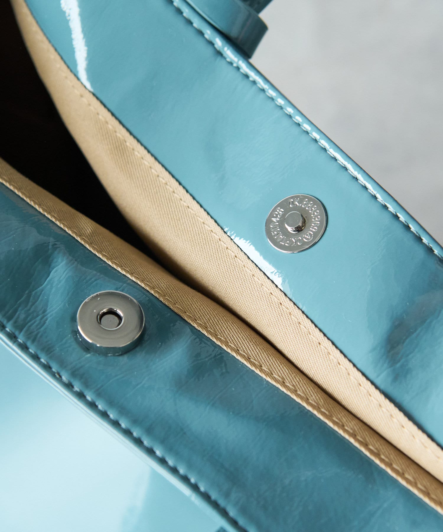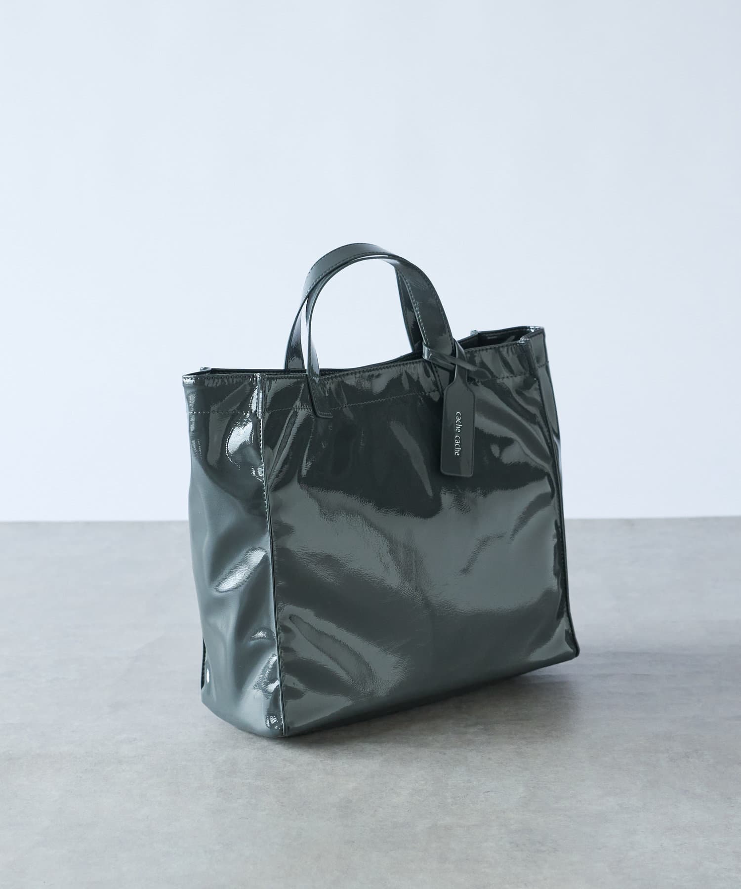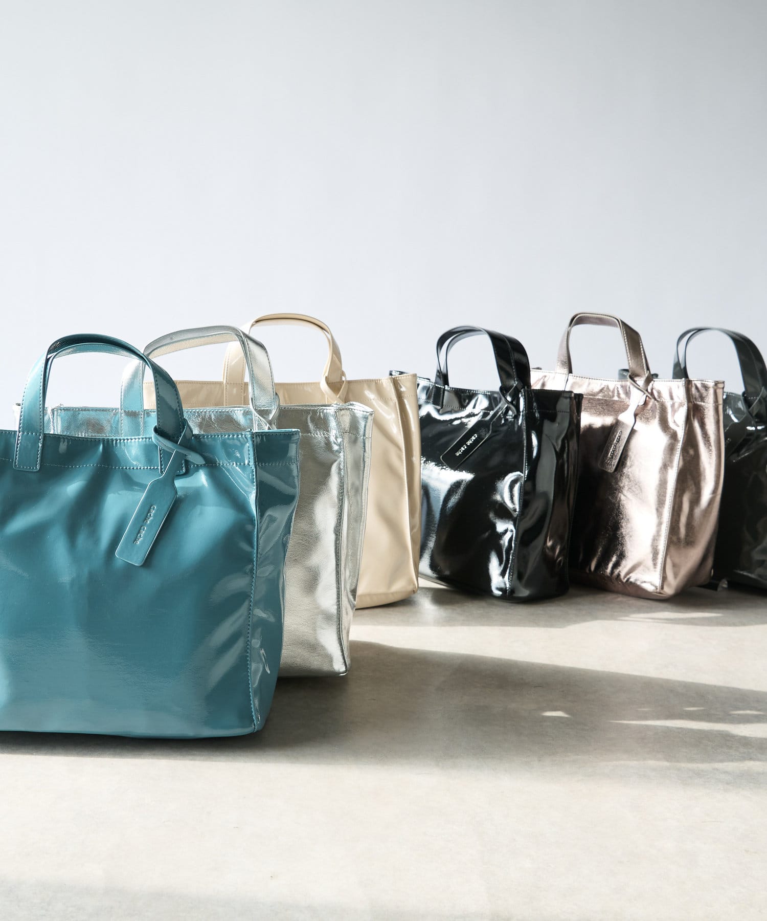・高級感のあるソフトエナメルを使ったスクエアトートバッグ