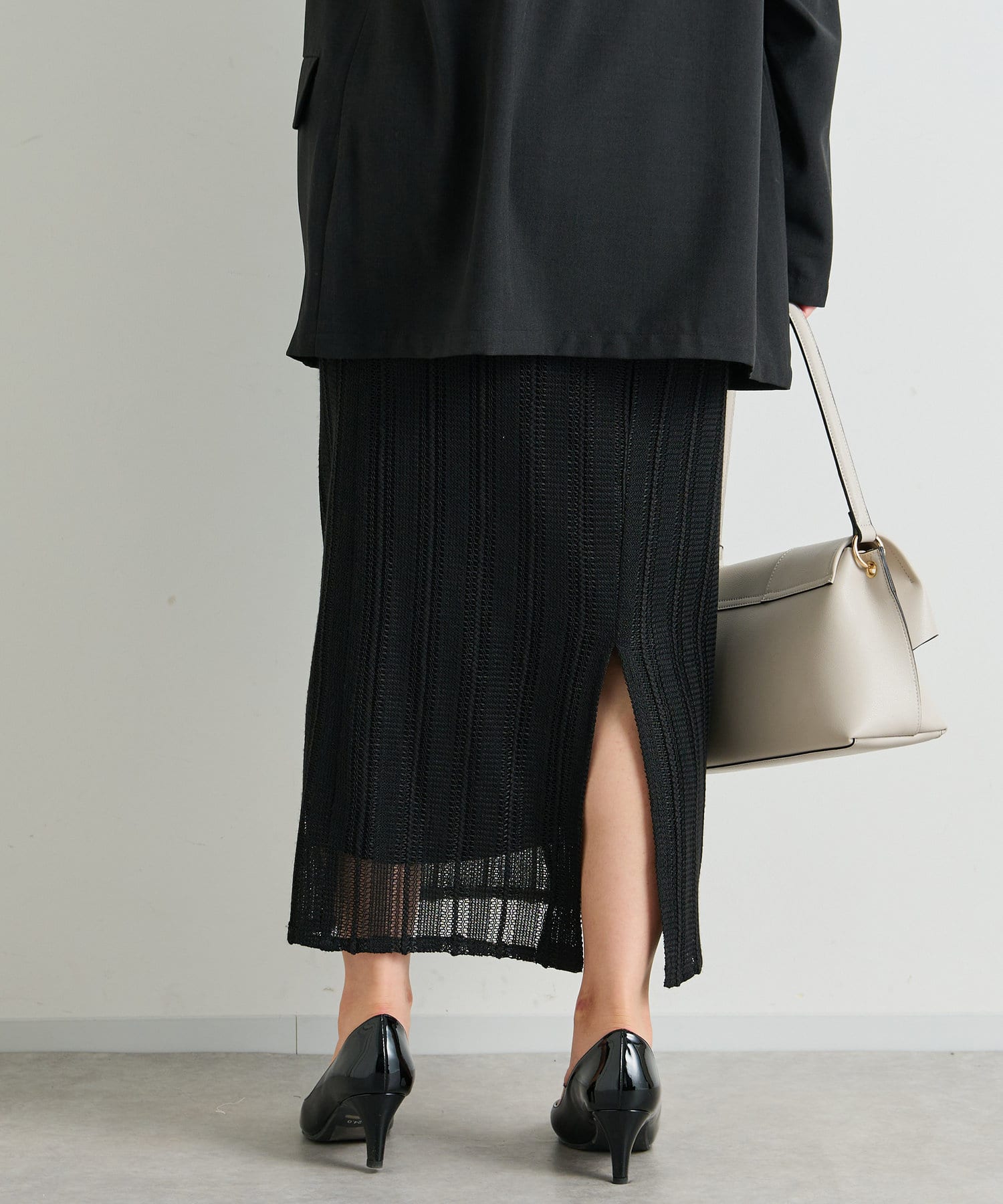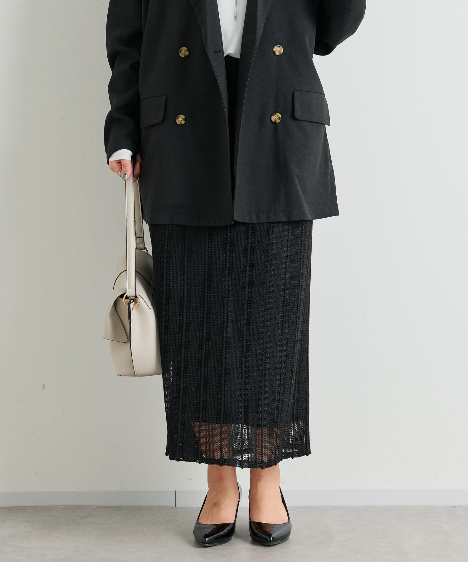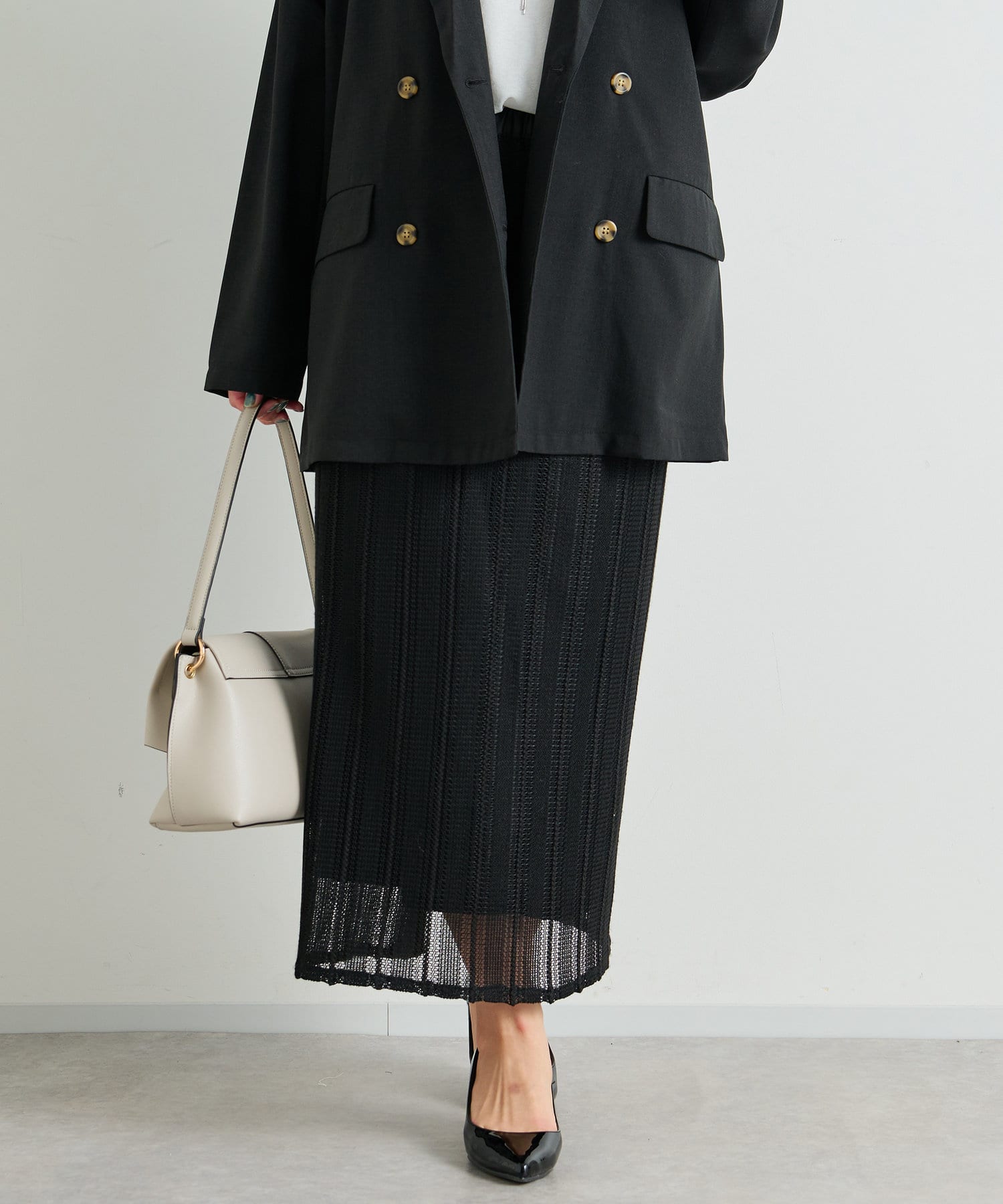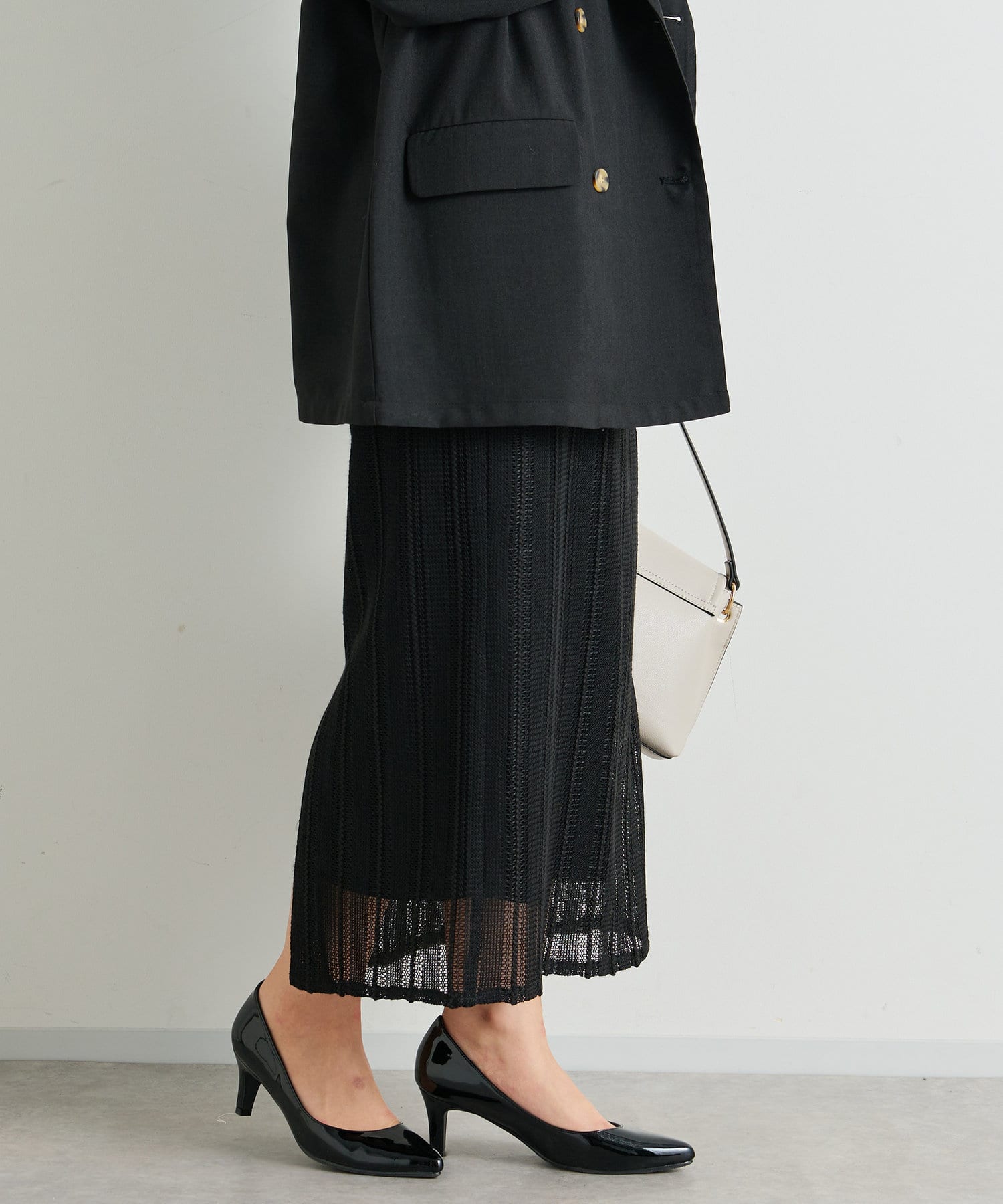 ・柔らかい落ち感のあるラッセルレースを使ったタイトなロングスカート