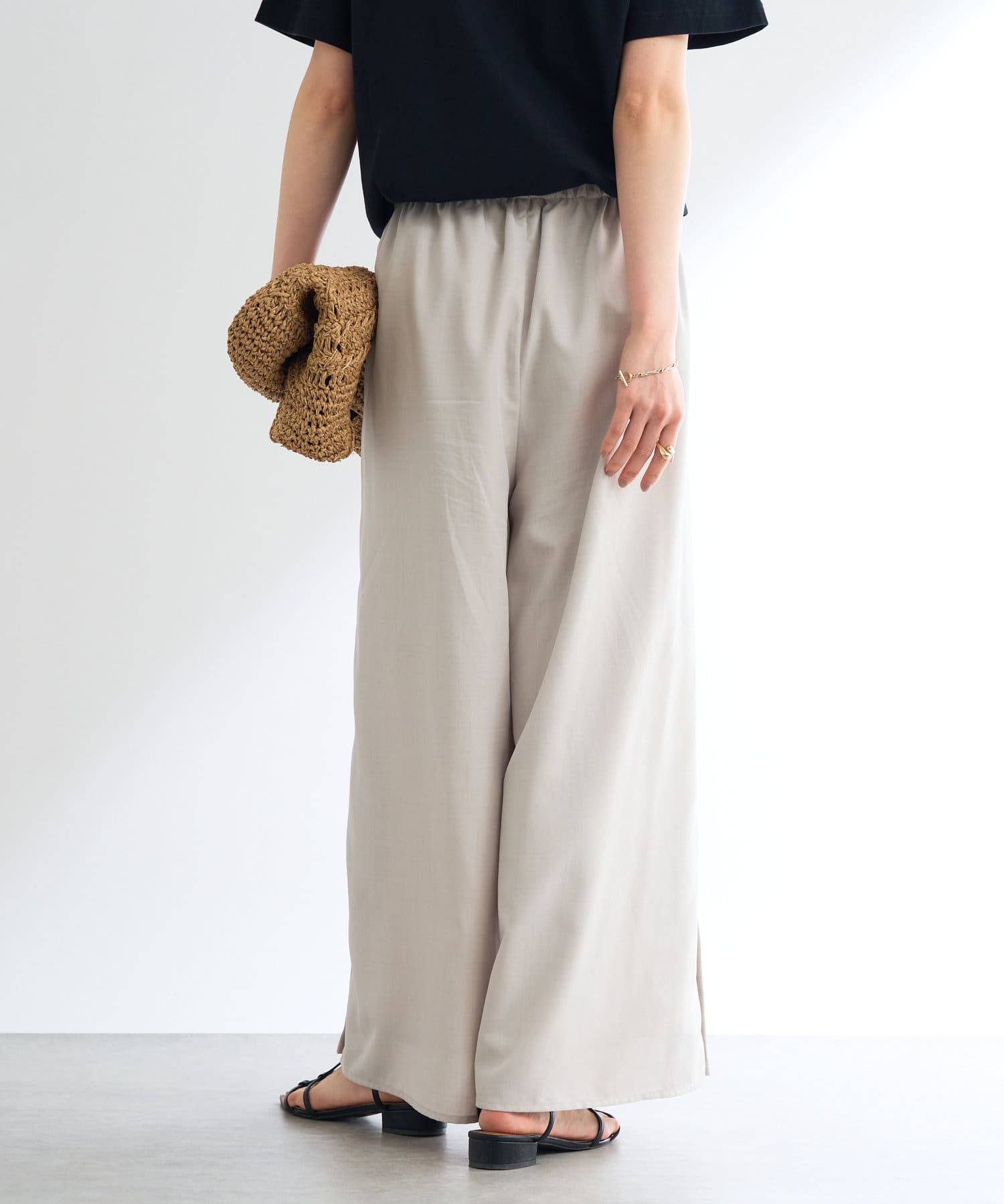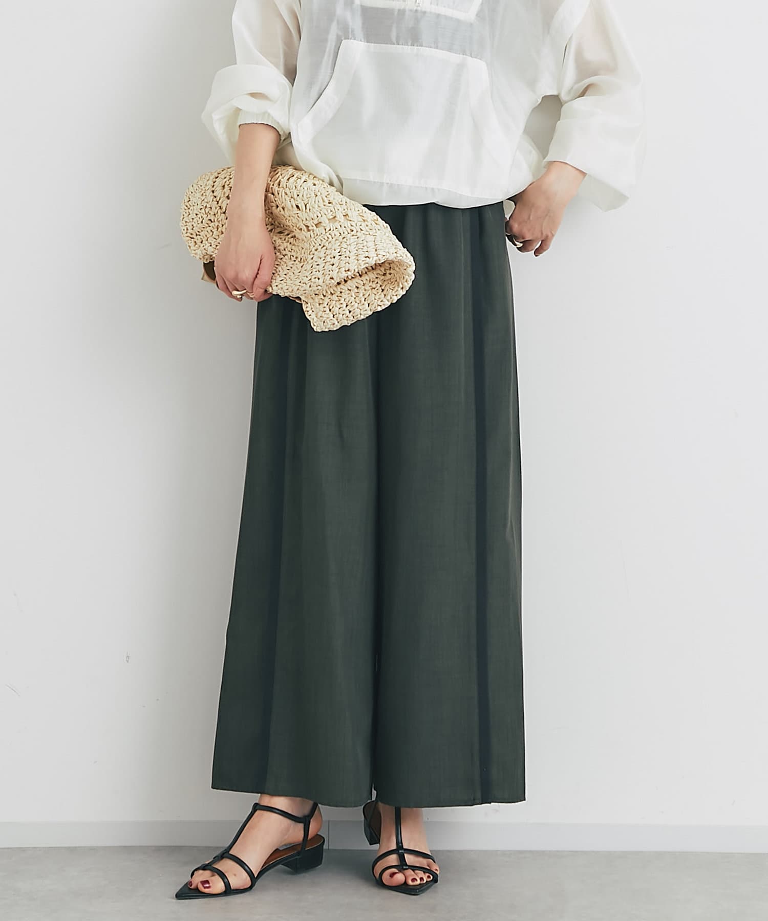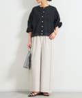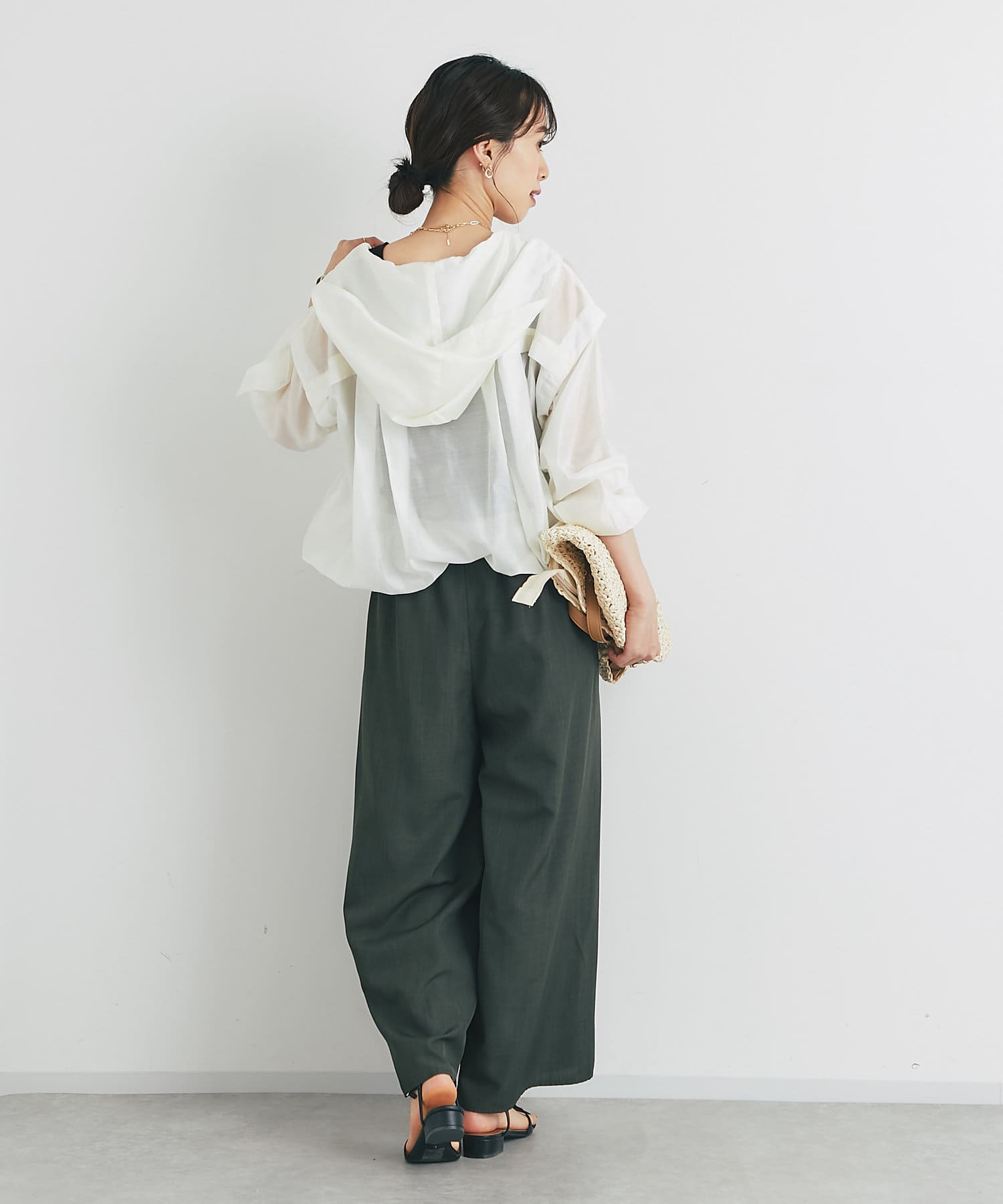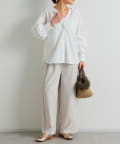 さらっとした麻混のパンツはヒール合わせもすっきりまとまる