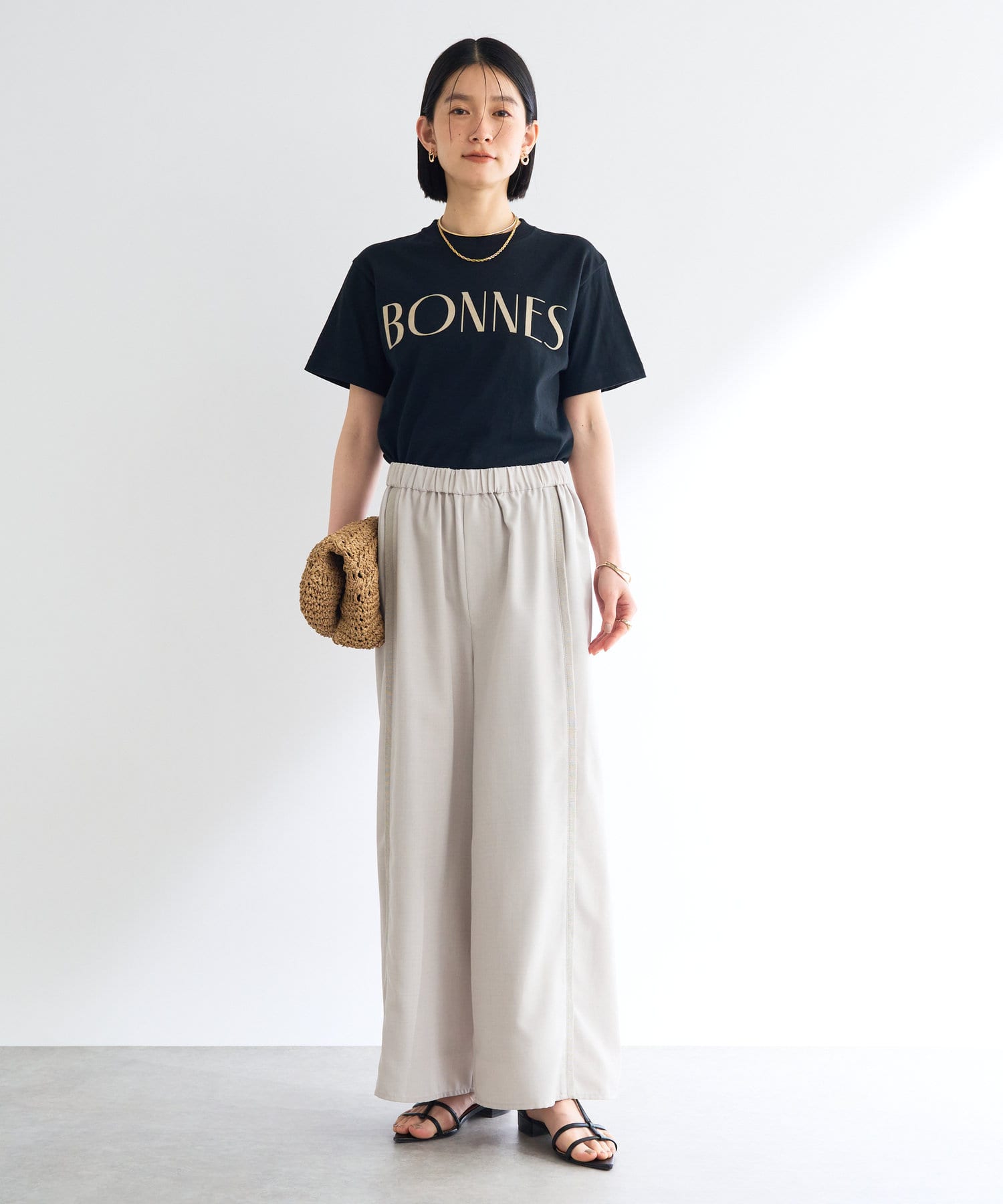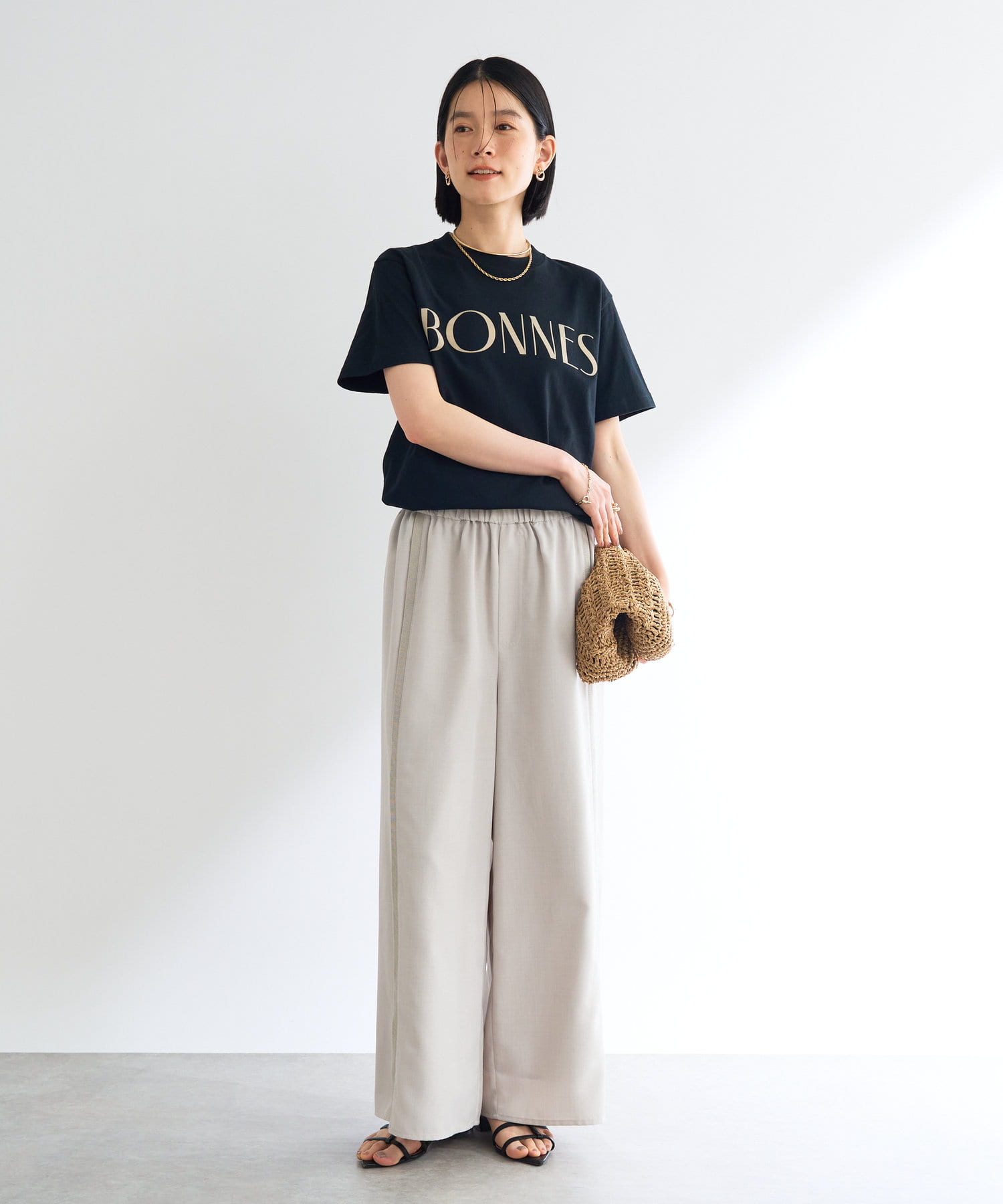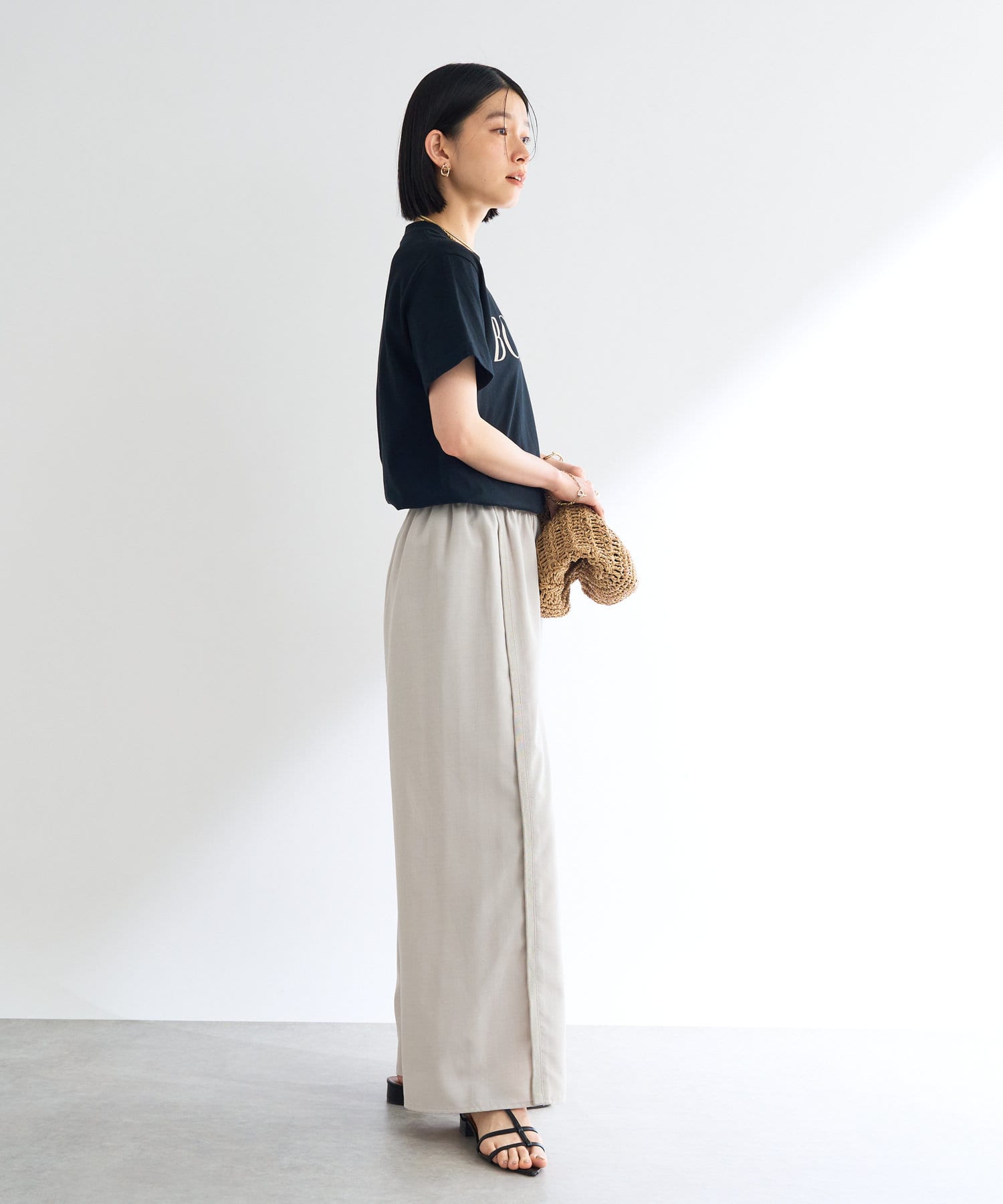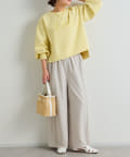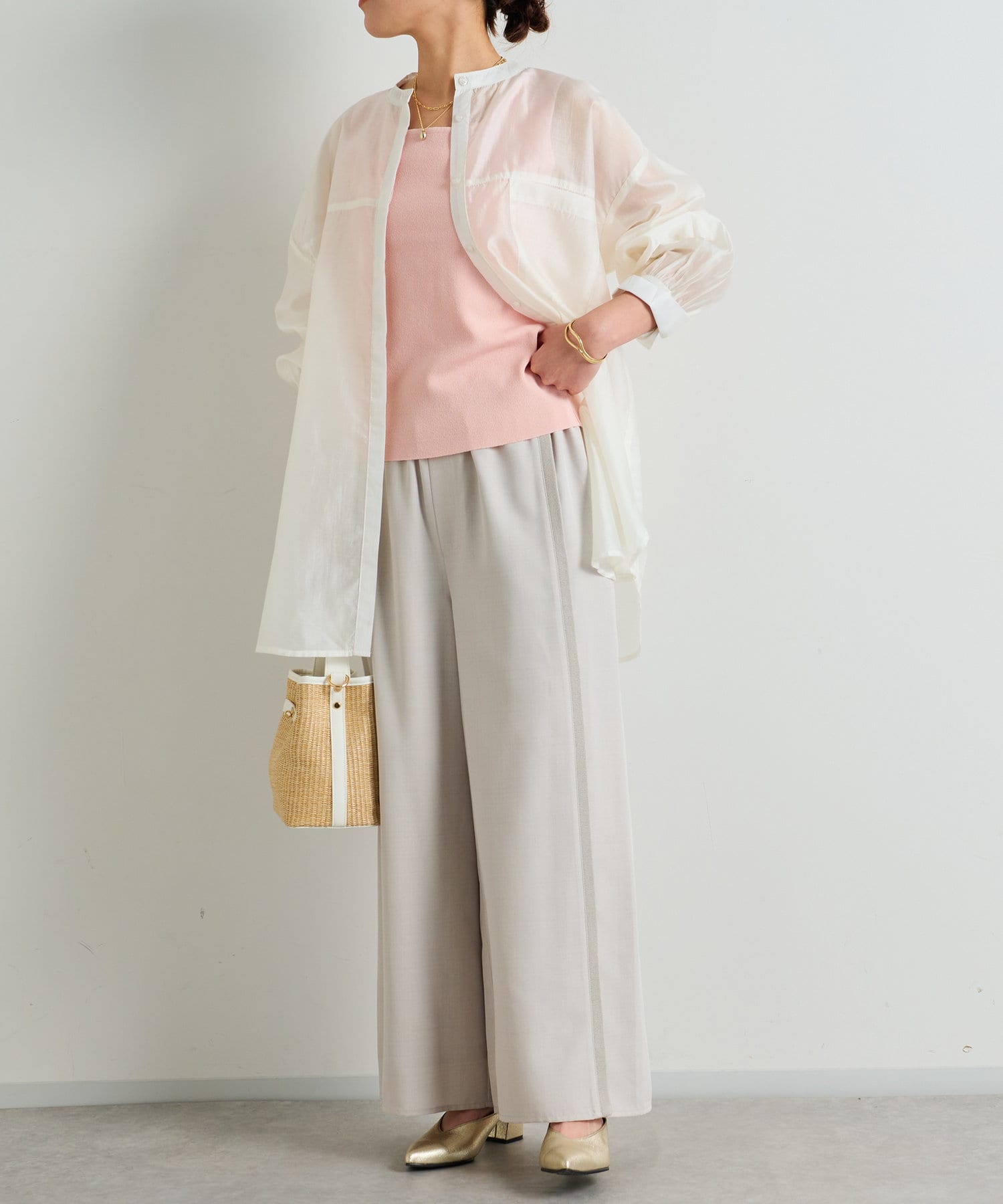 さらっとした麻混のパンツはヒール合わせもすっきりまとまる
