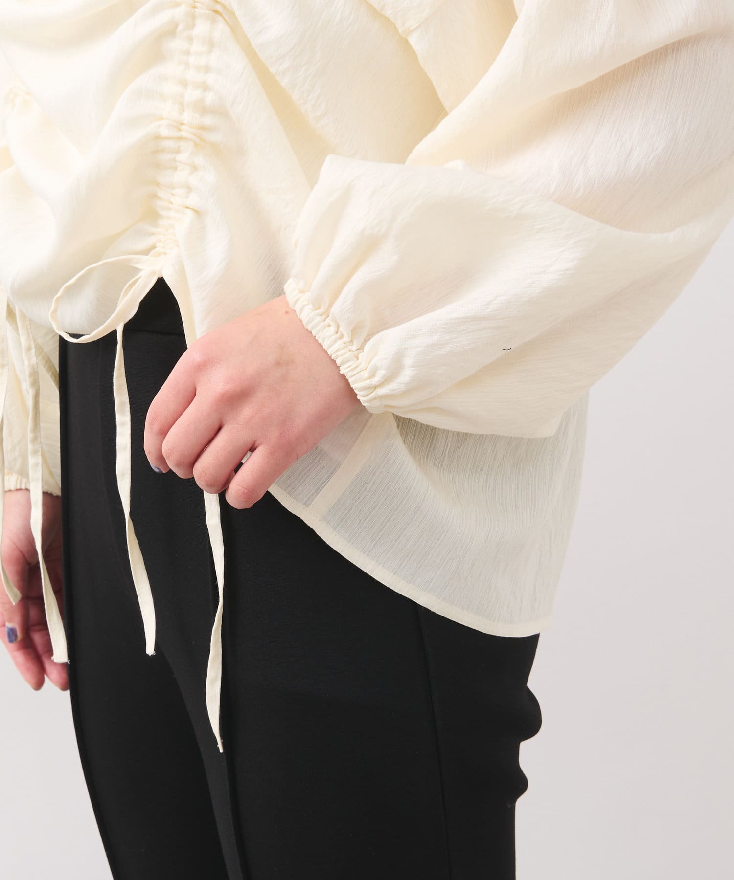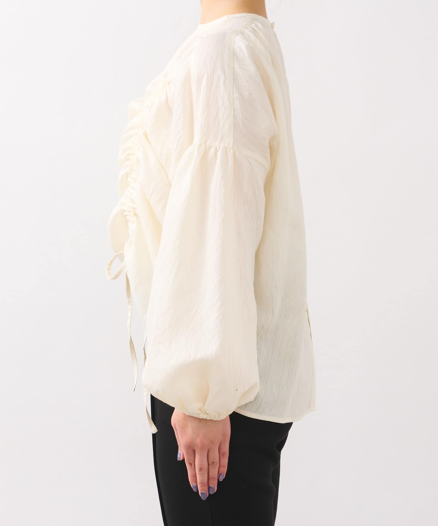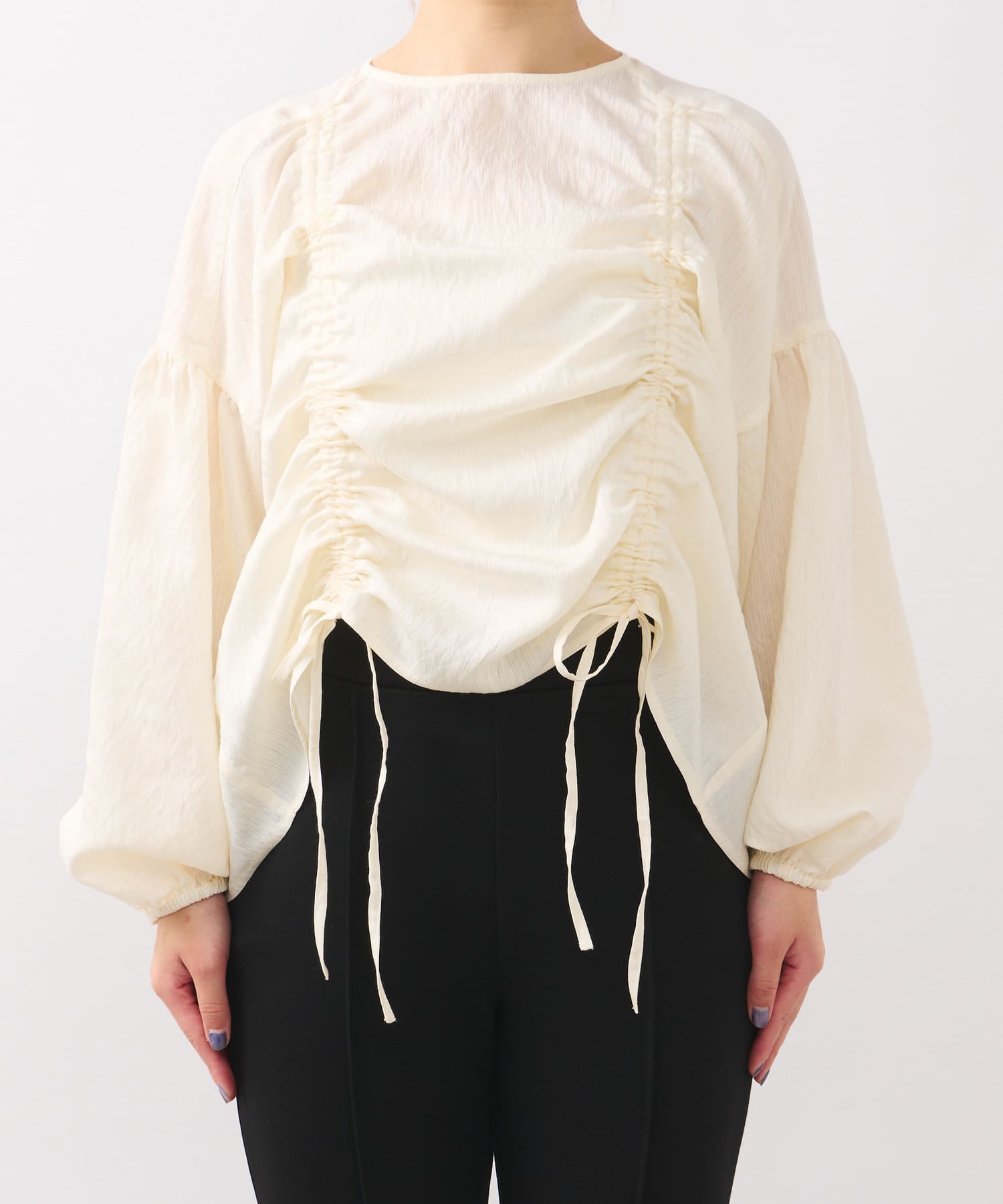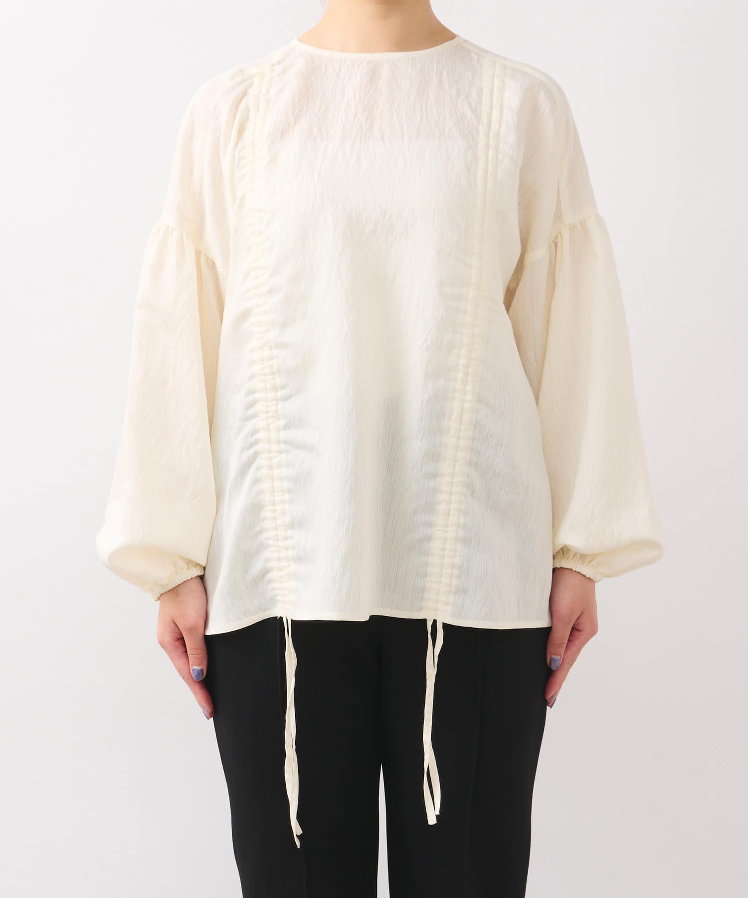 ・たっぷりとギャザーを寄せたシャーリングデザインのブラウス