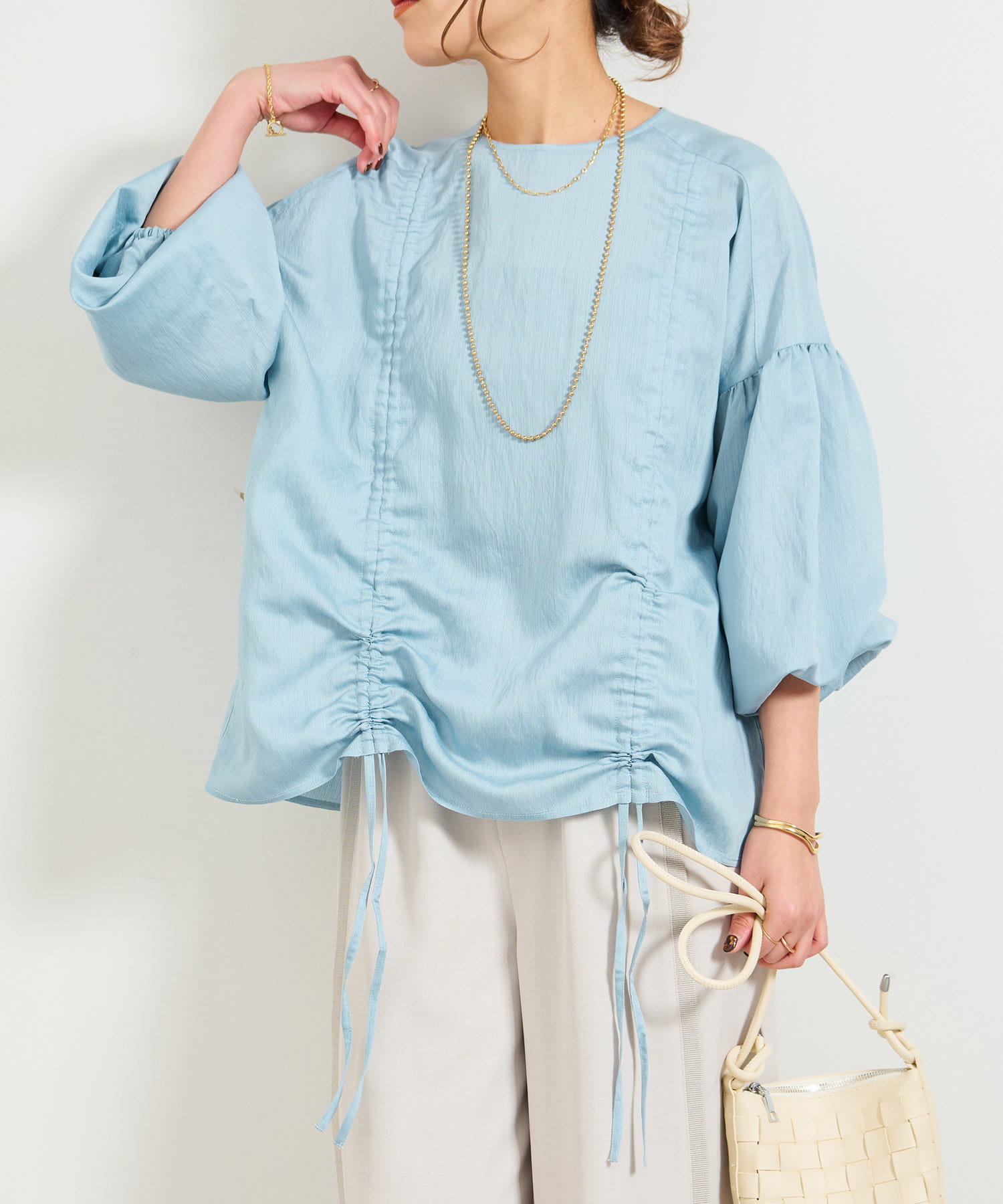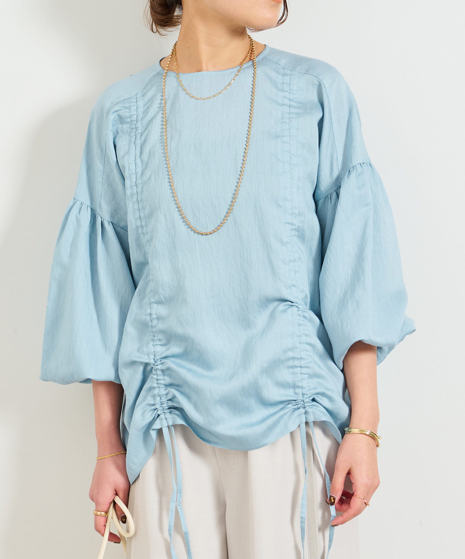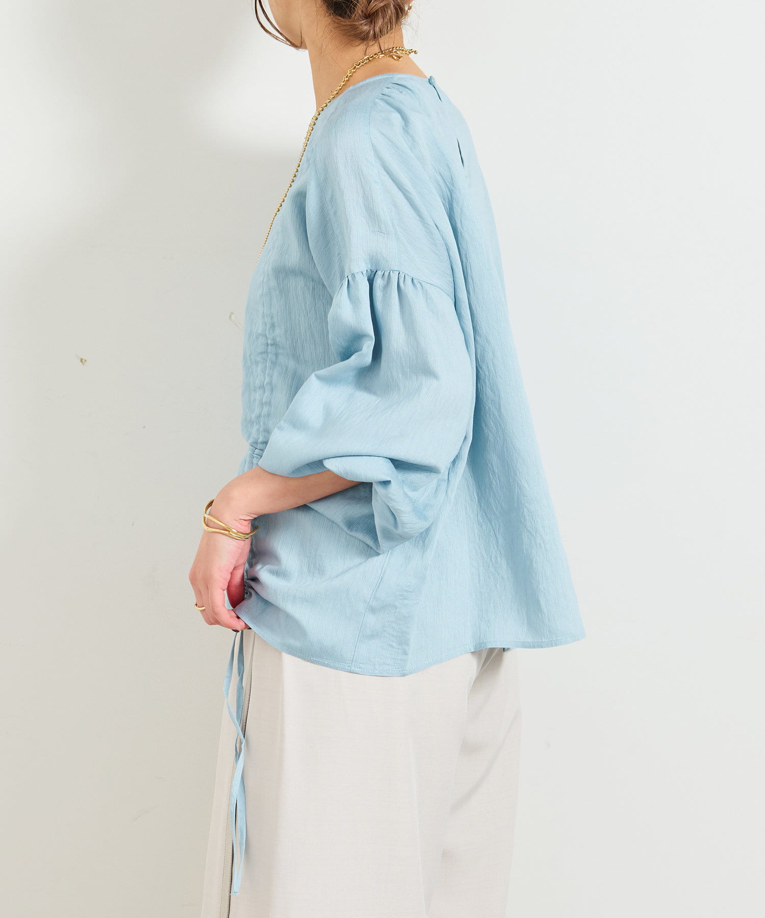 ・たっぷりとギャザーを寄せたシャーリングデザインのブラウス