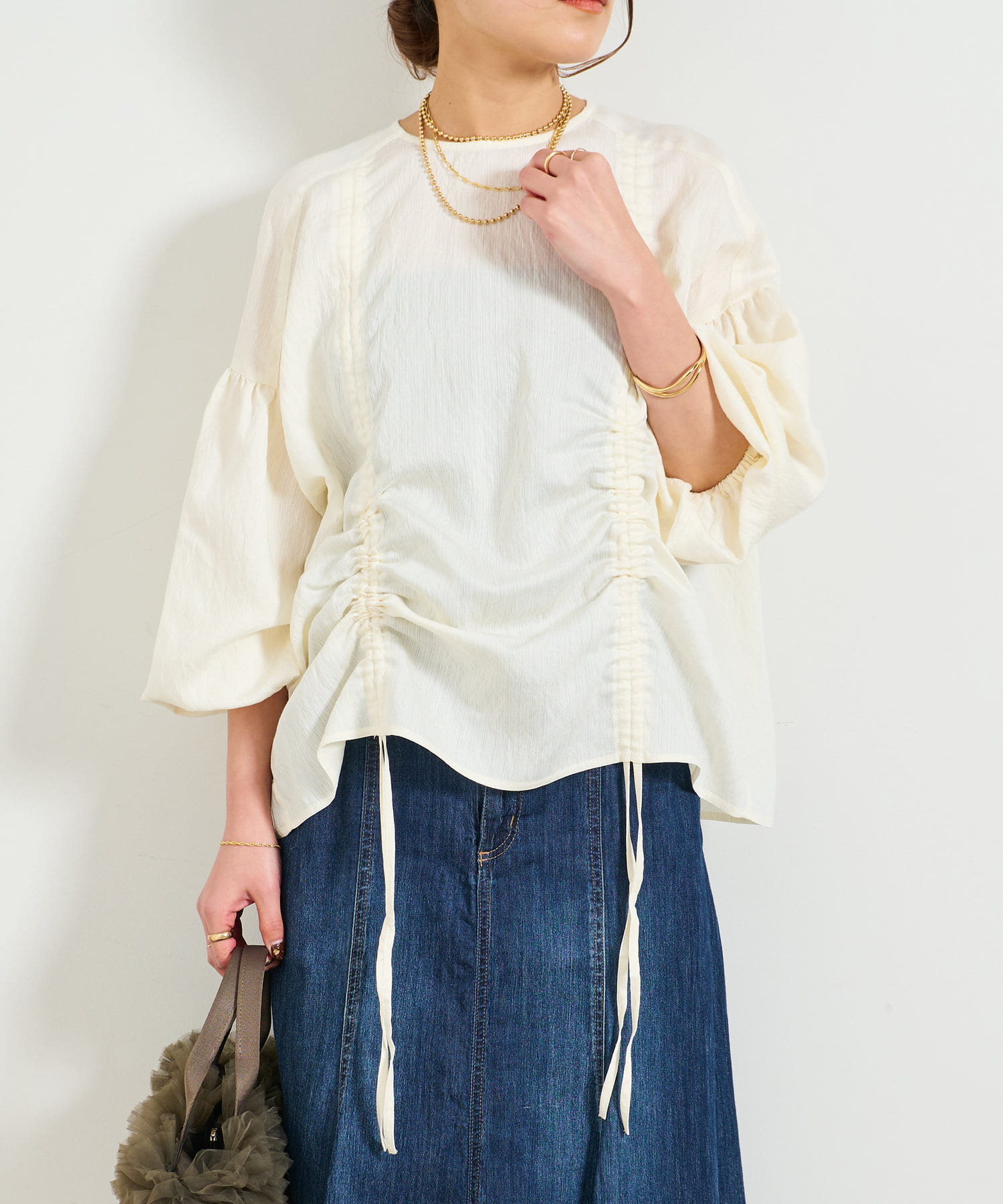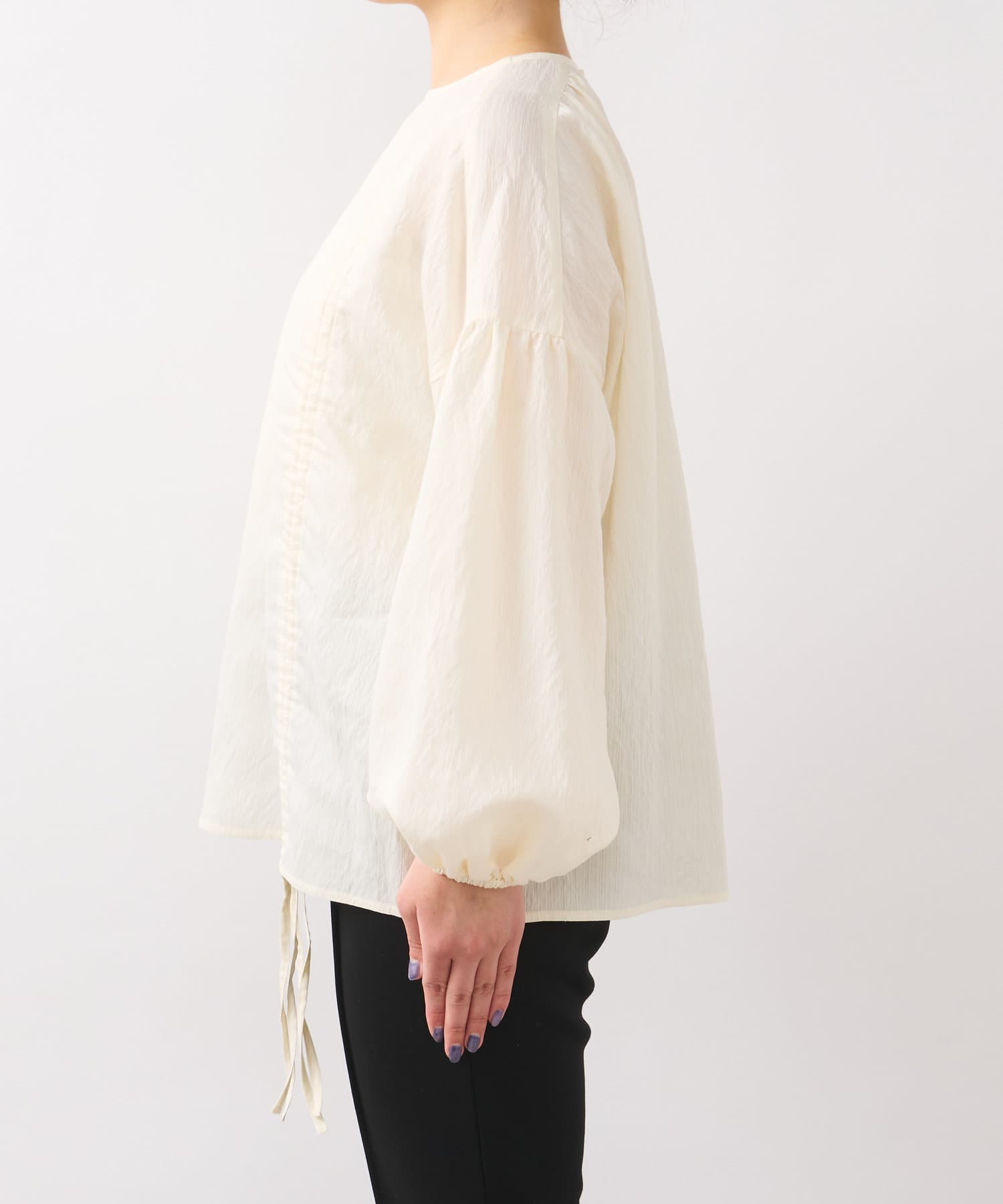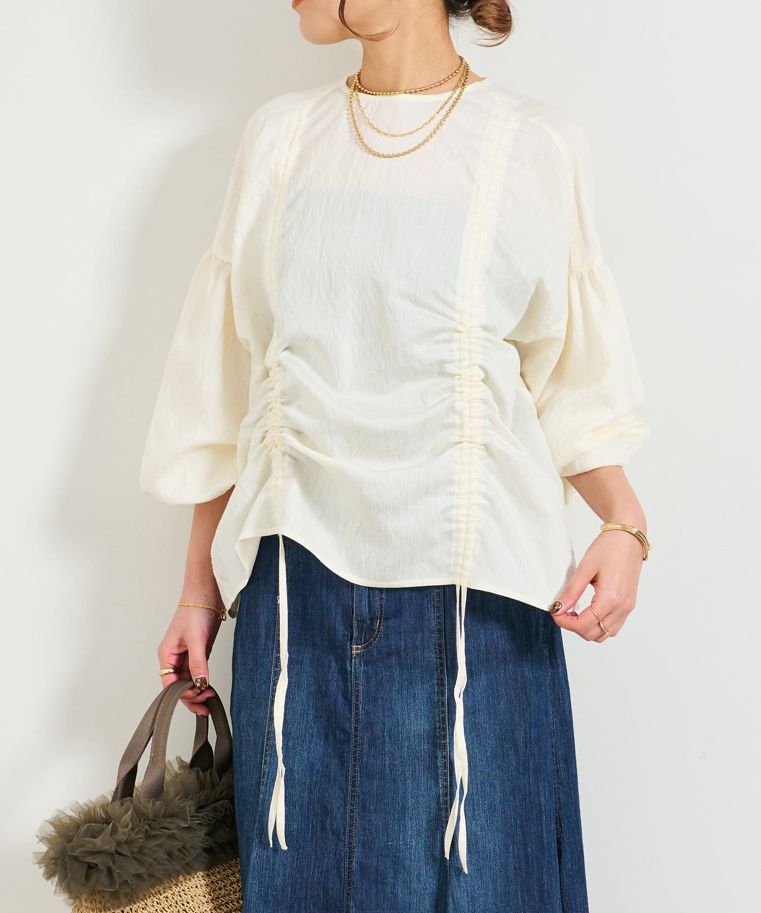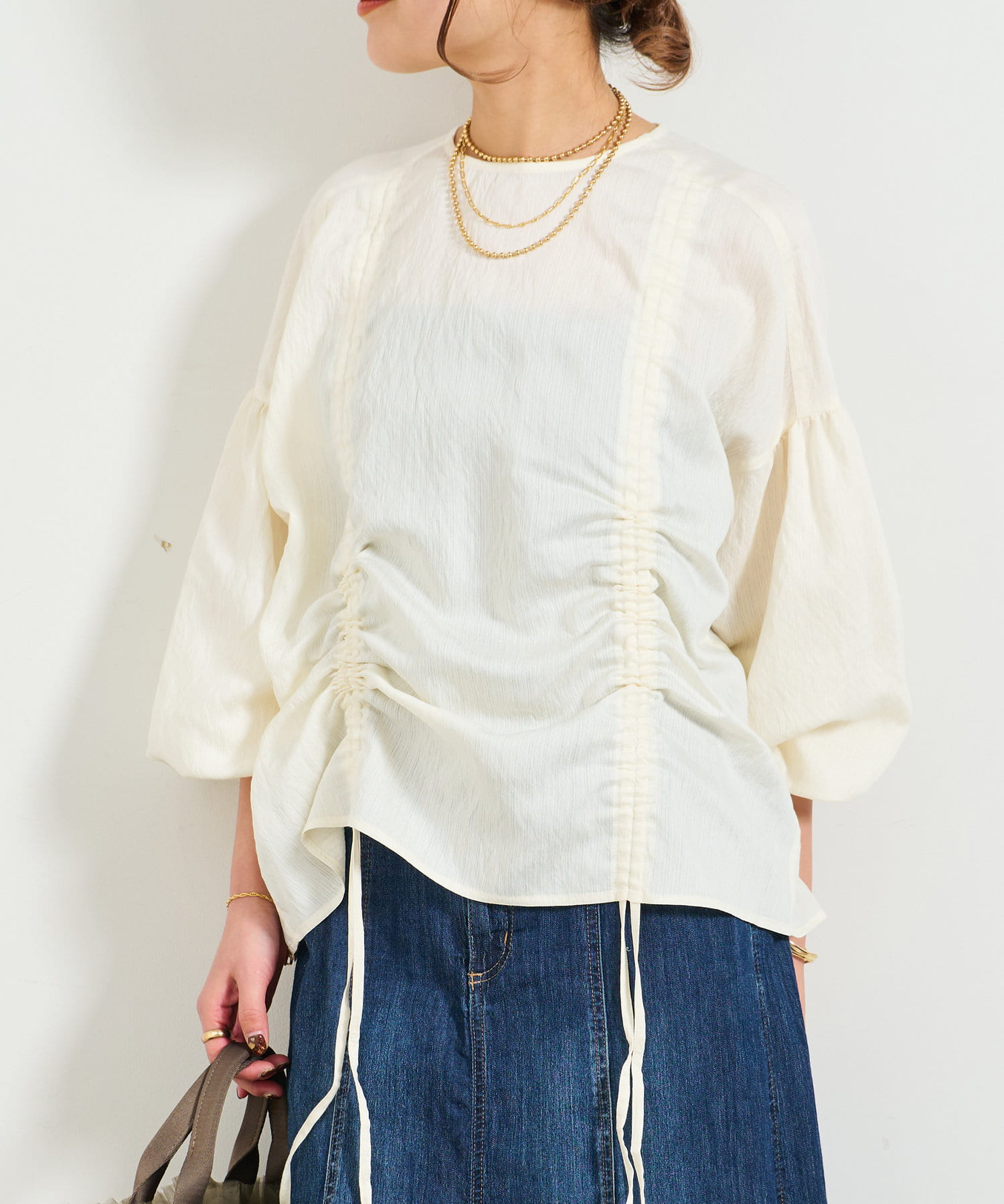 ・たっぷりとギャザーを寄せたシャーリングデザインのブラウス