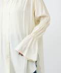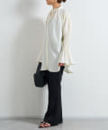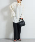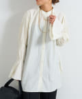 袖口のデザインがかわいいので、ざっくりニットを重ねてブラウスの袖口を出したスタイリングもおすすめです!