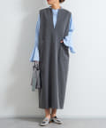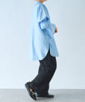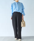 伸縮性のない素材ですが、ゆったりとしたサイズ感なので体型問わずOK◎