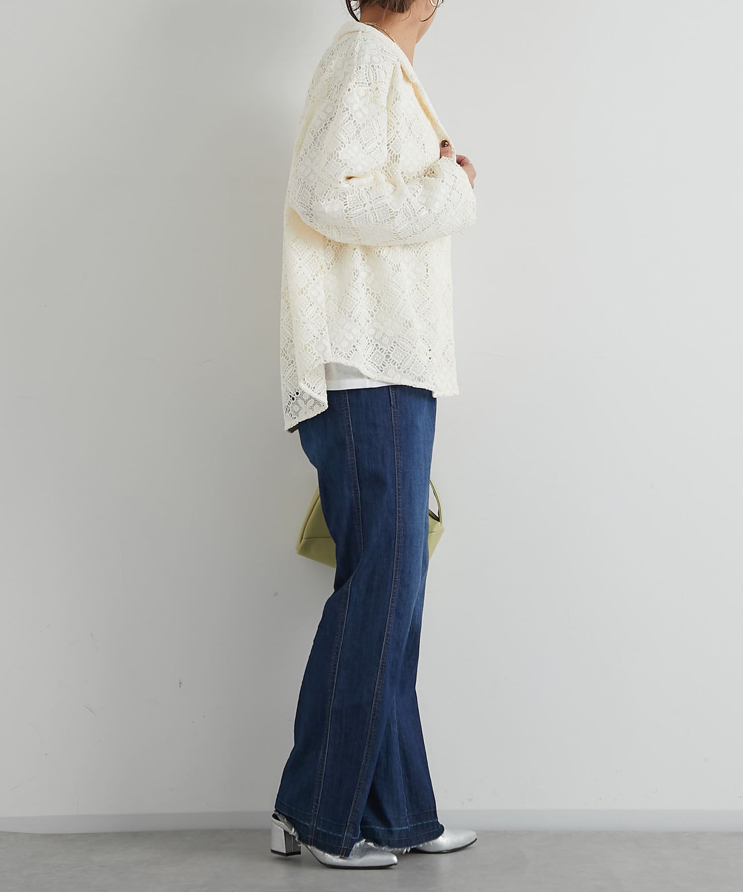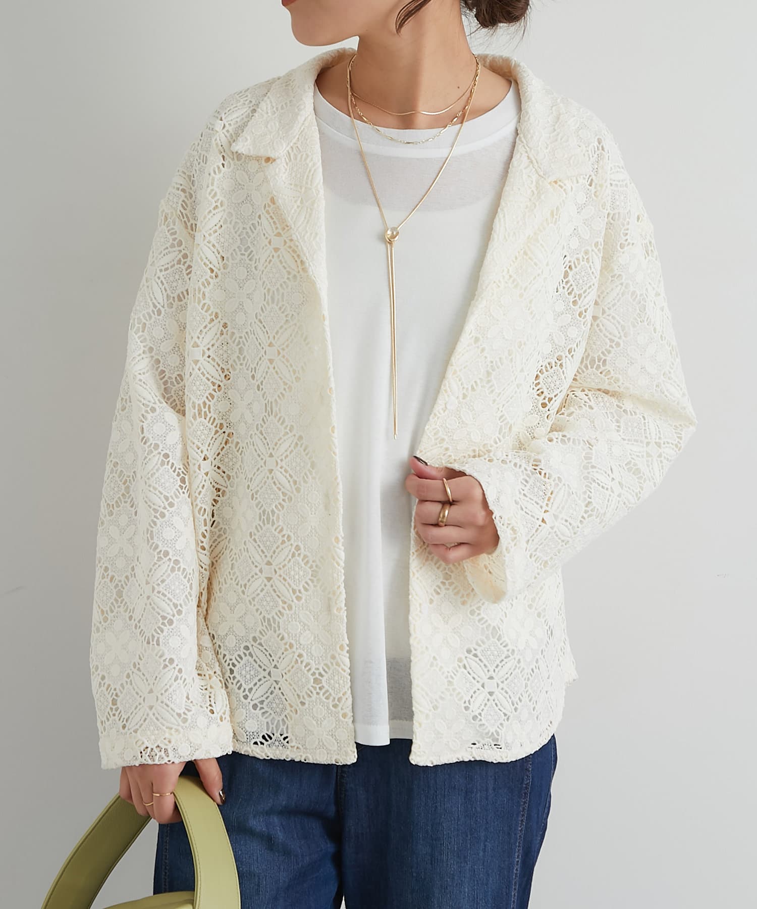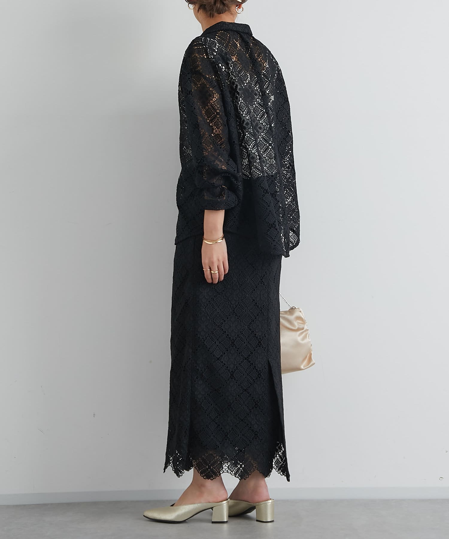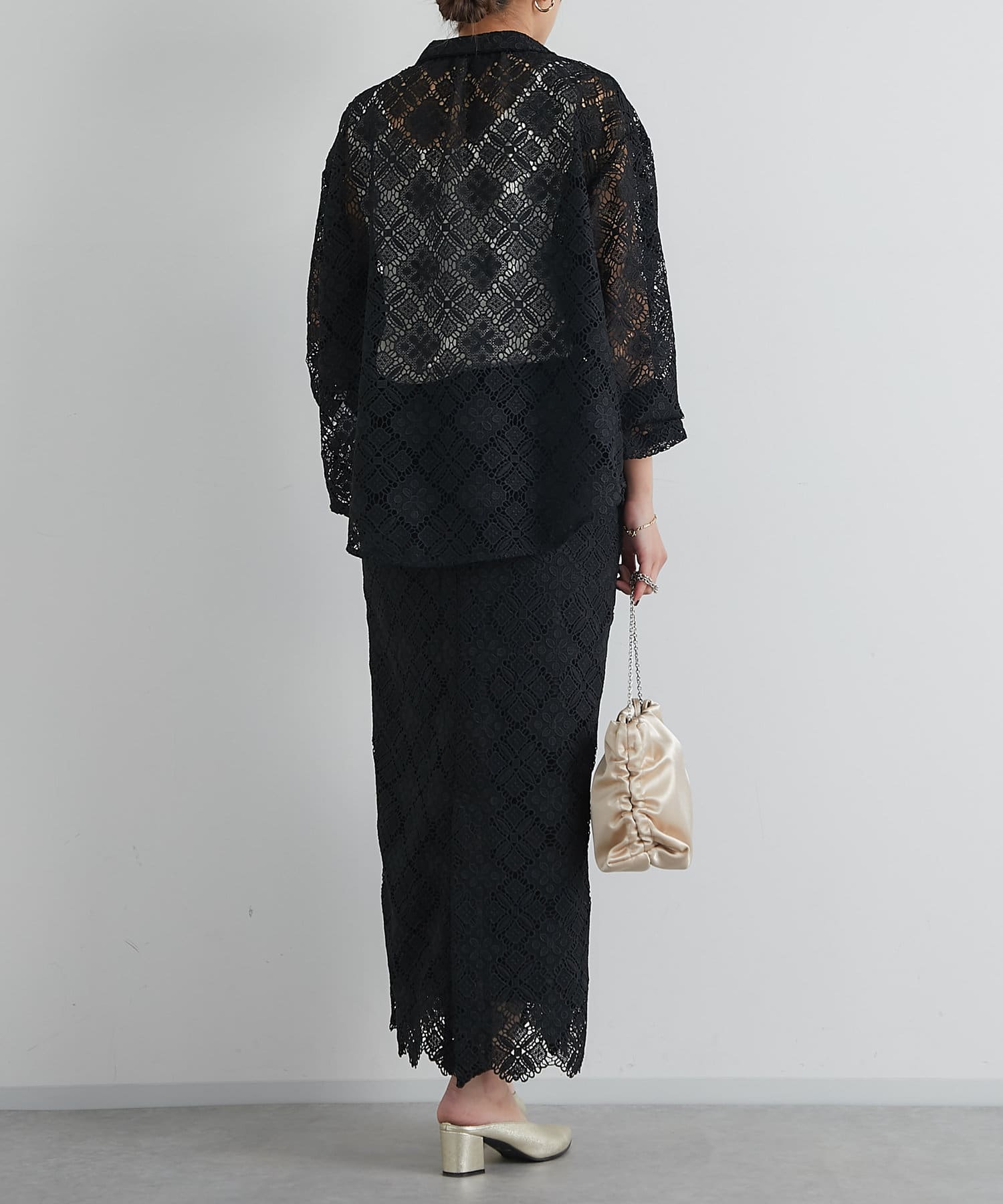 ・透け感たっぷりな総レースのオープンカラーシャツ
