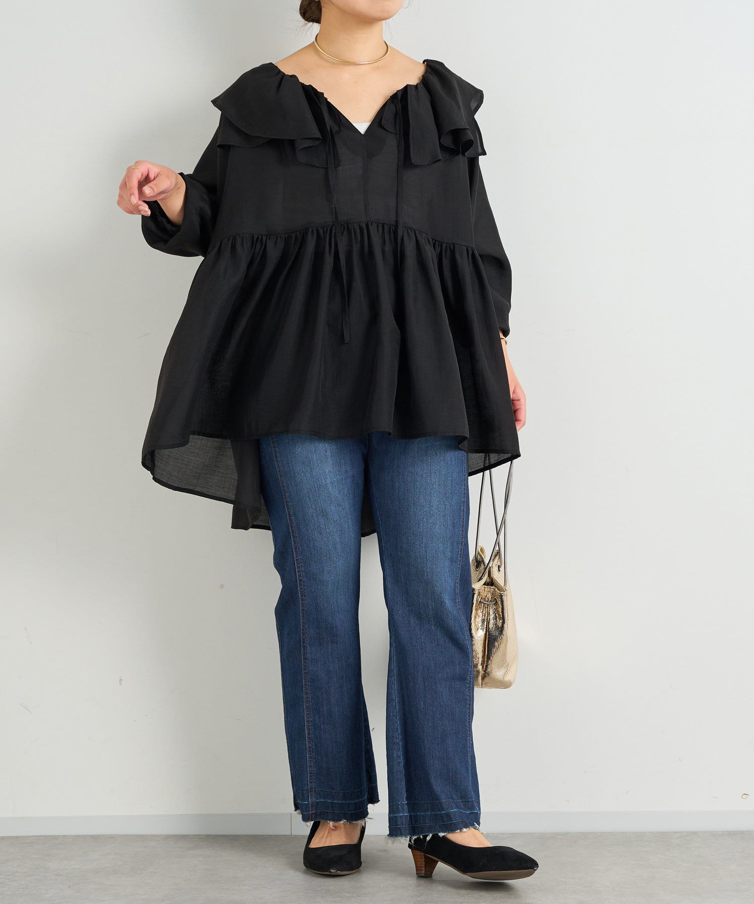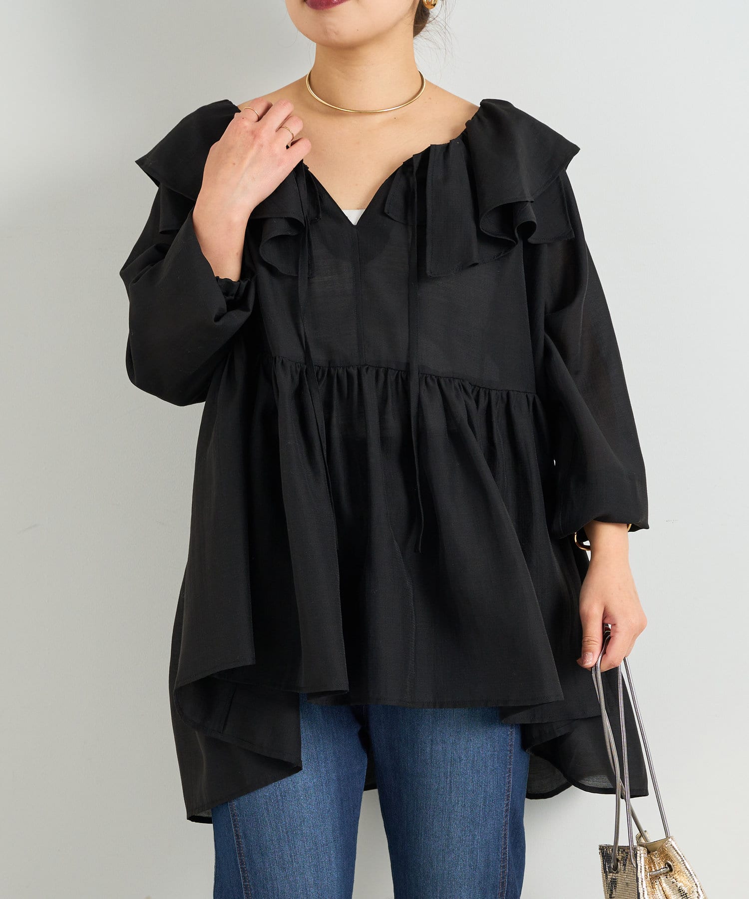・2パターンの着こなしが楽しめるチュニックブラウス