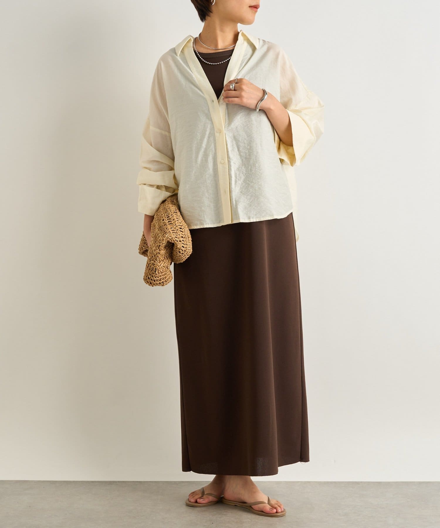 短丈ながらもゆとりのある着心地で抜け感を演出