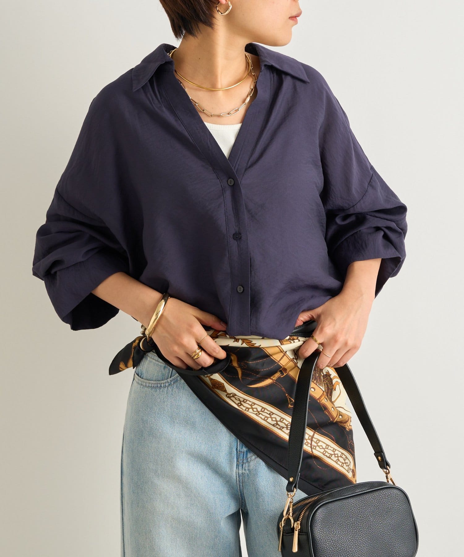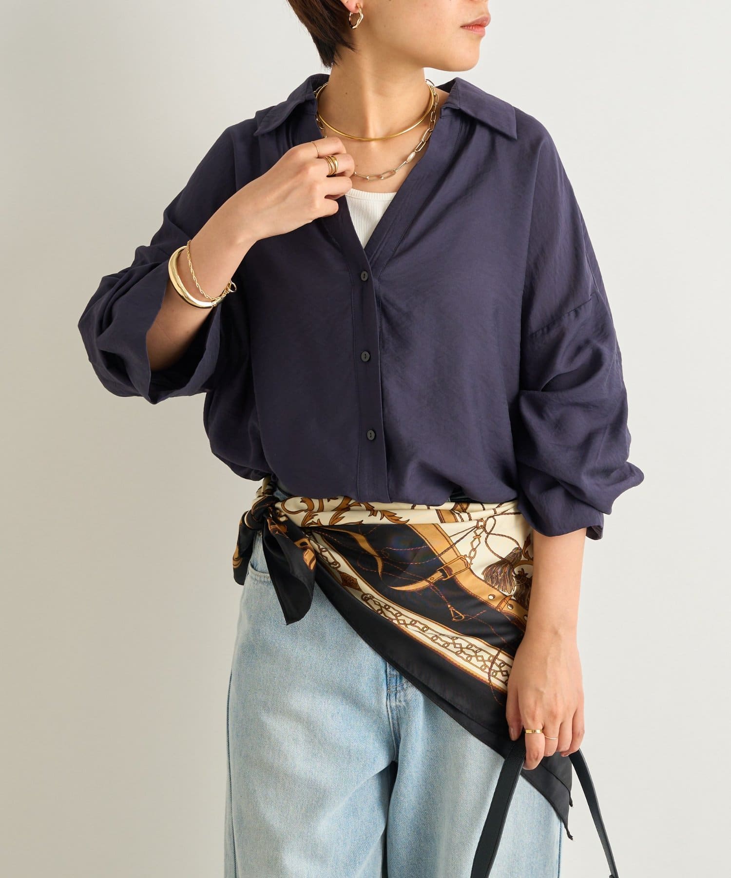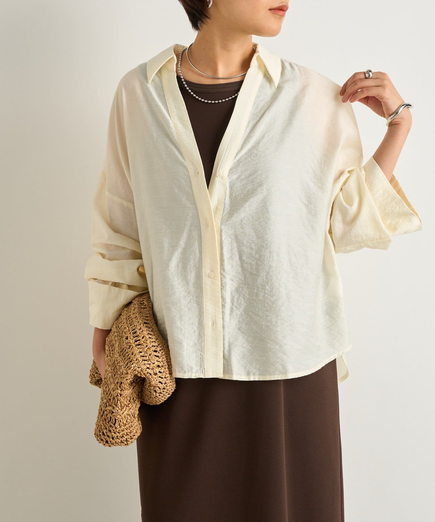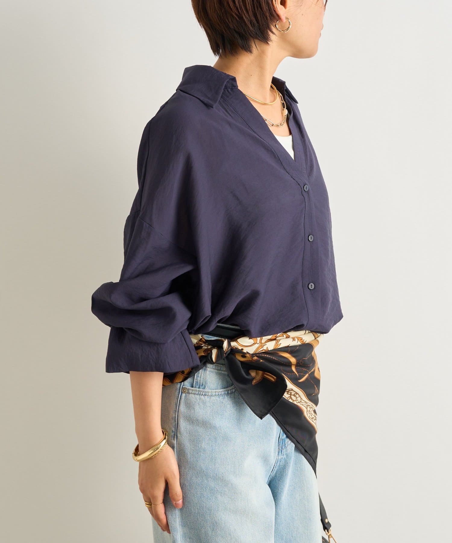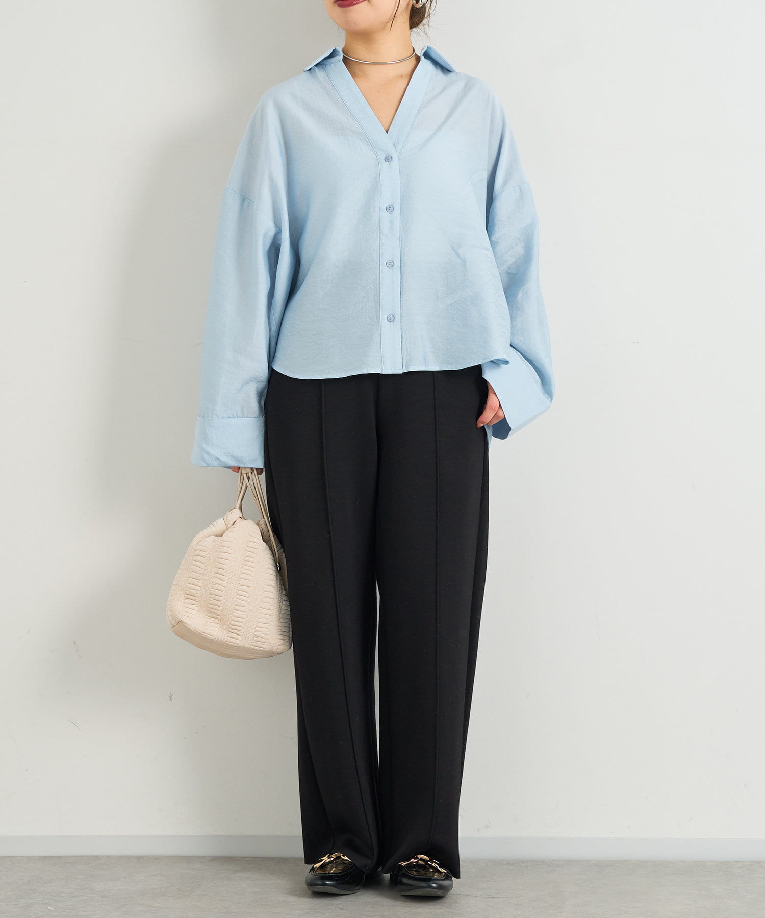 抜け襟スキッパーシャツ
