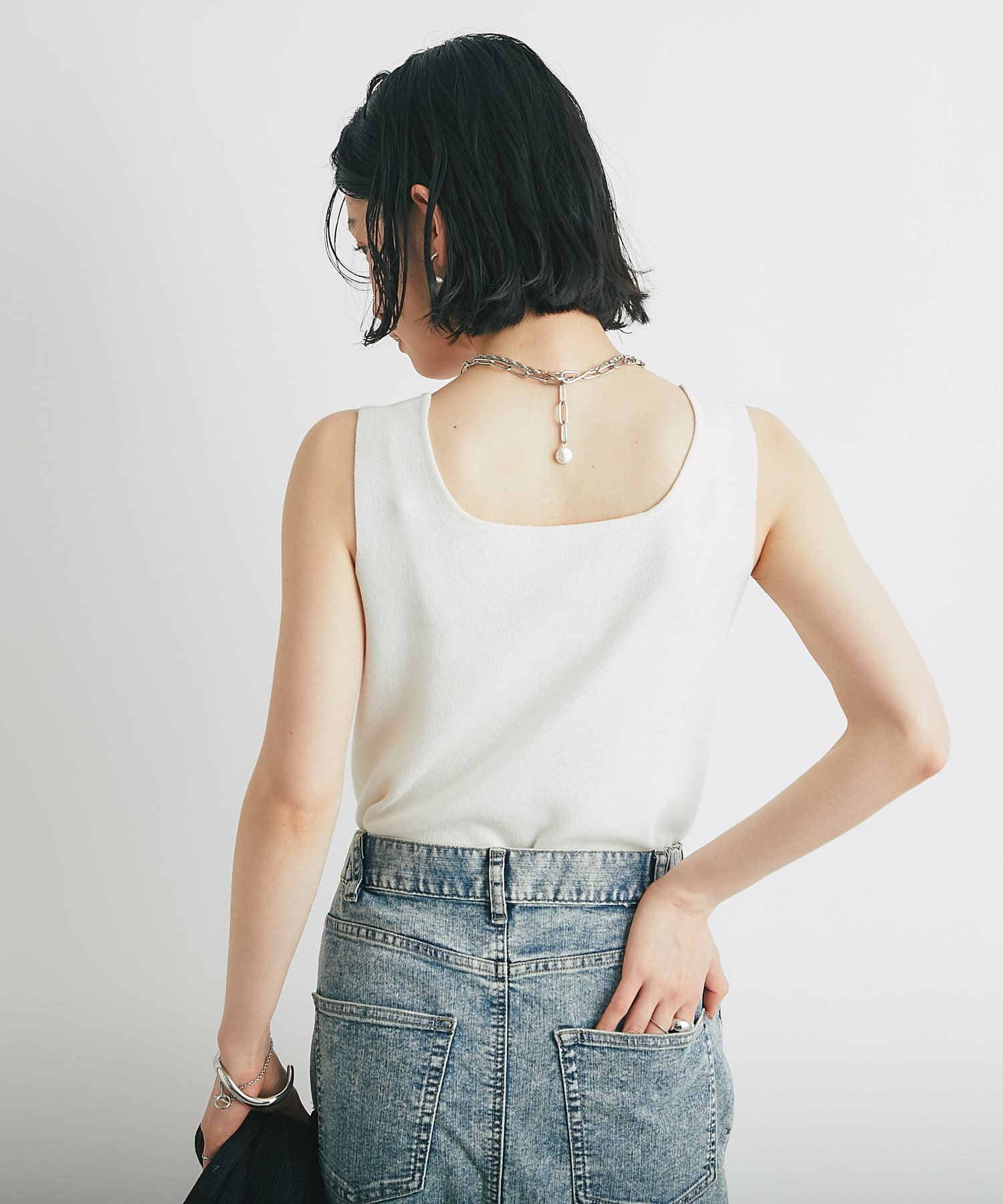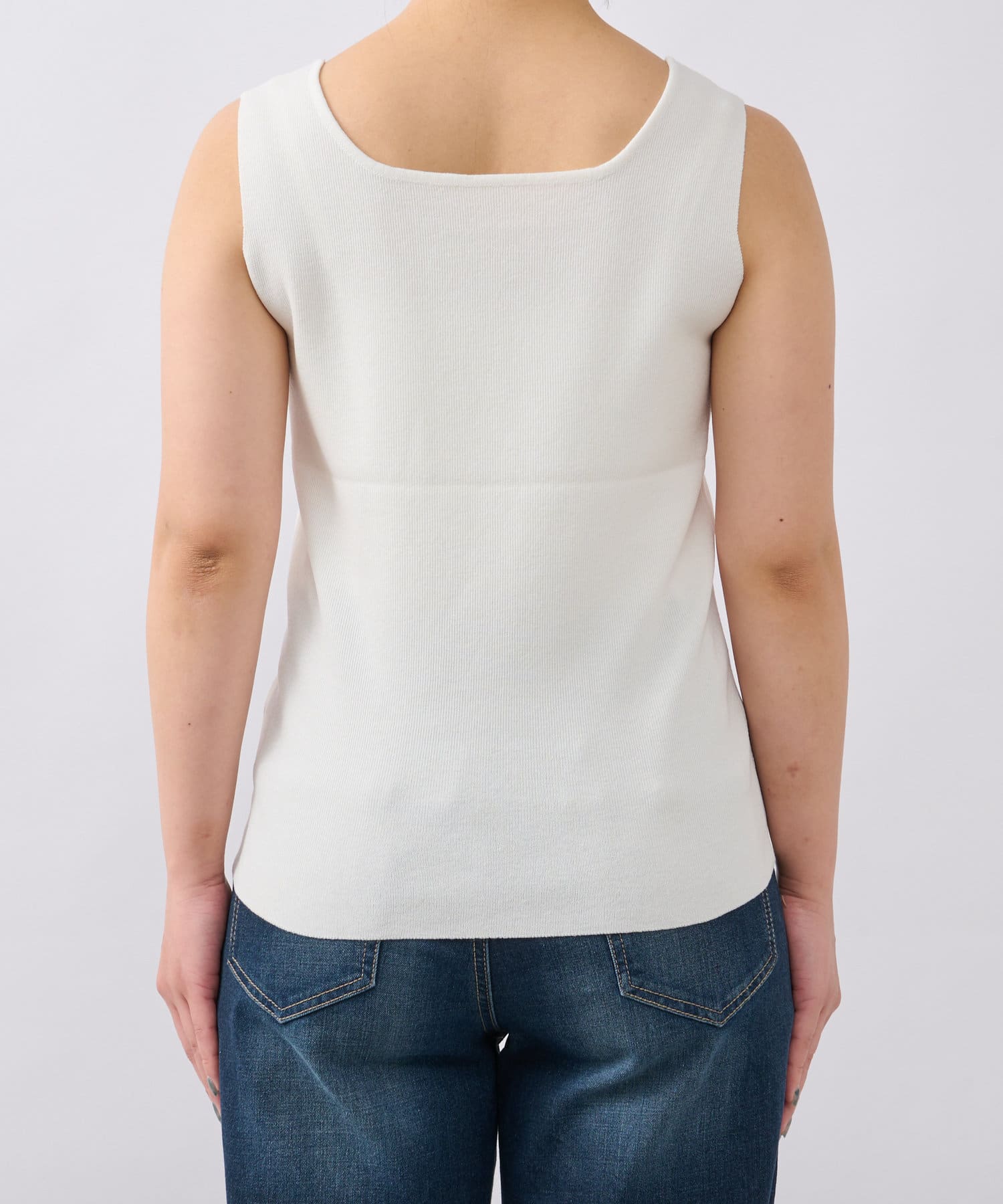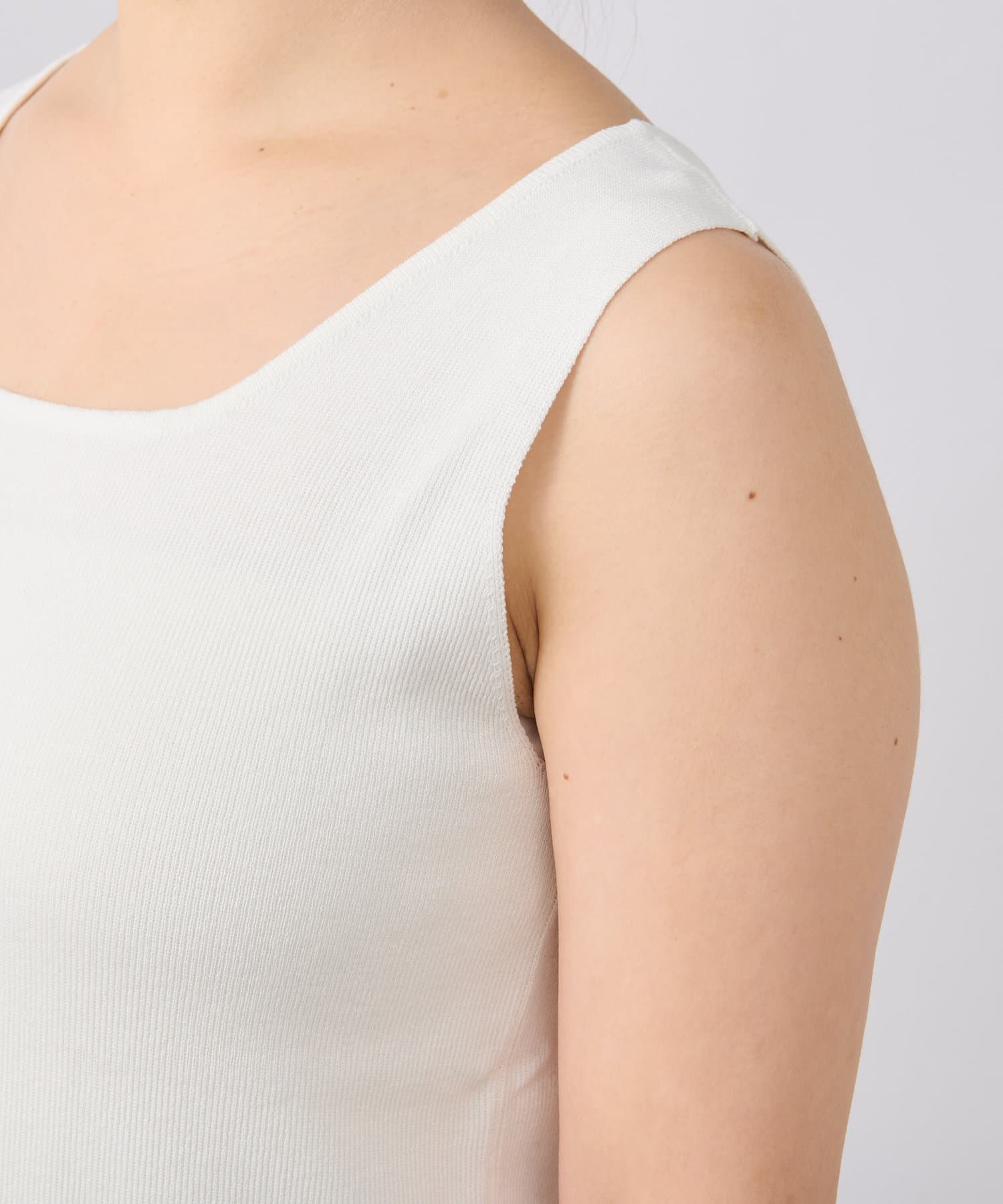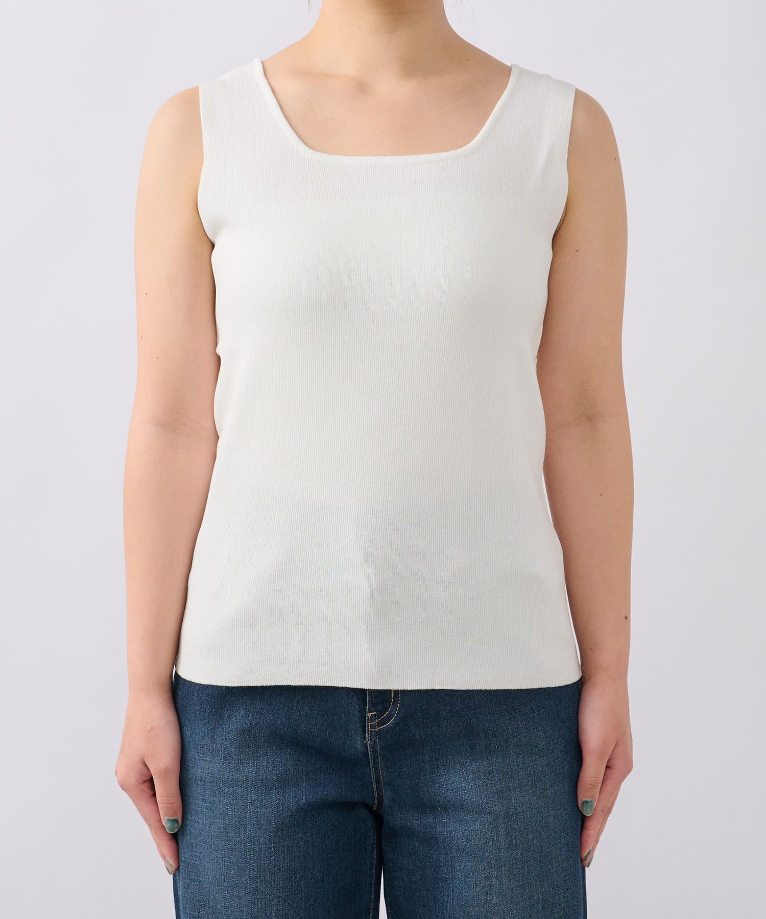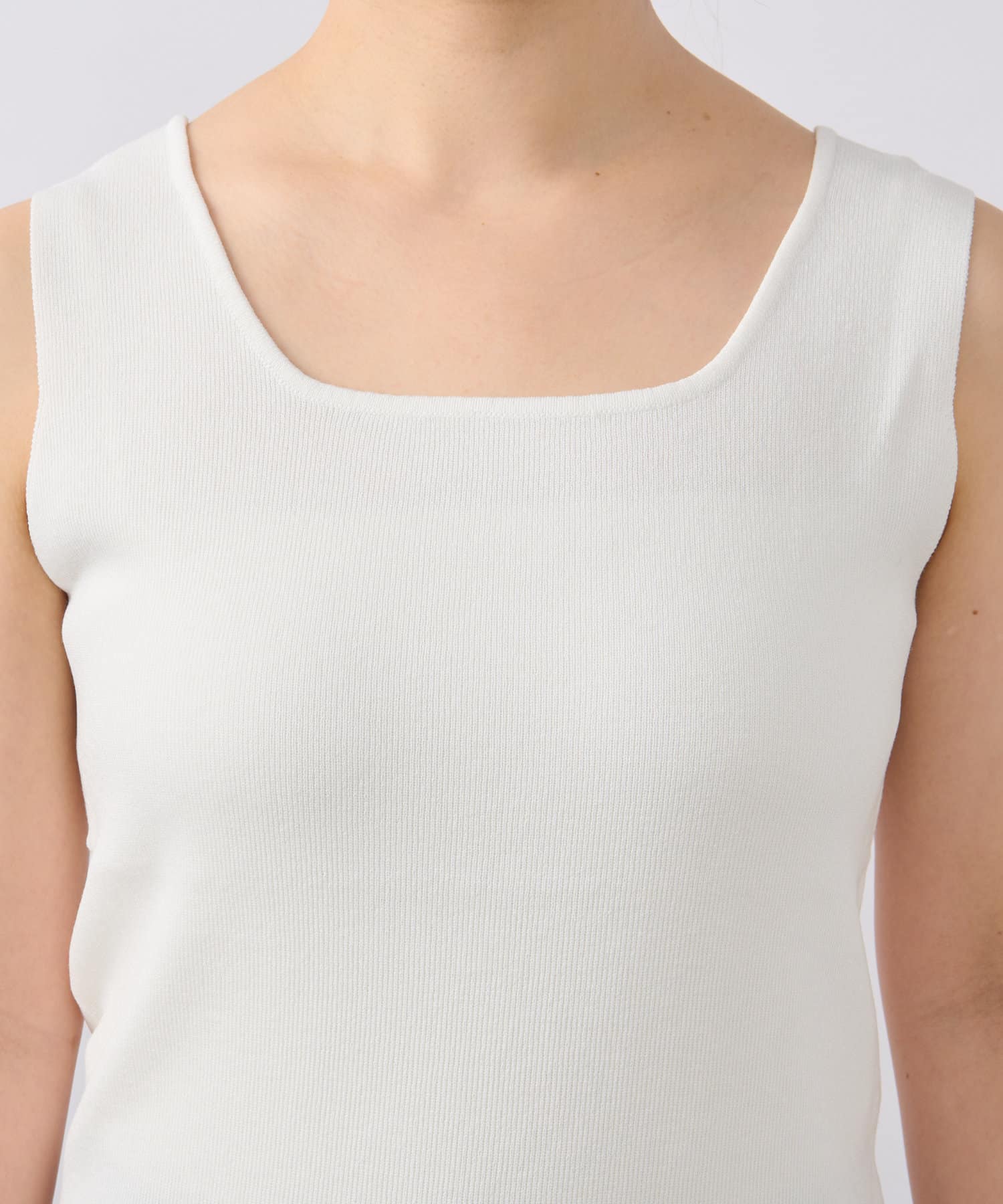 ・デコルテをきれいに見せるスクエアネックのニットタンクトップ