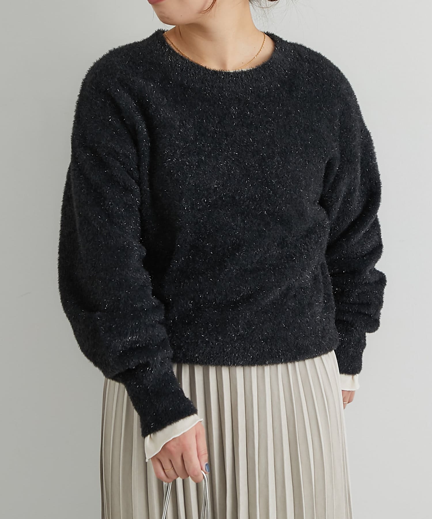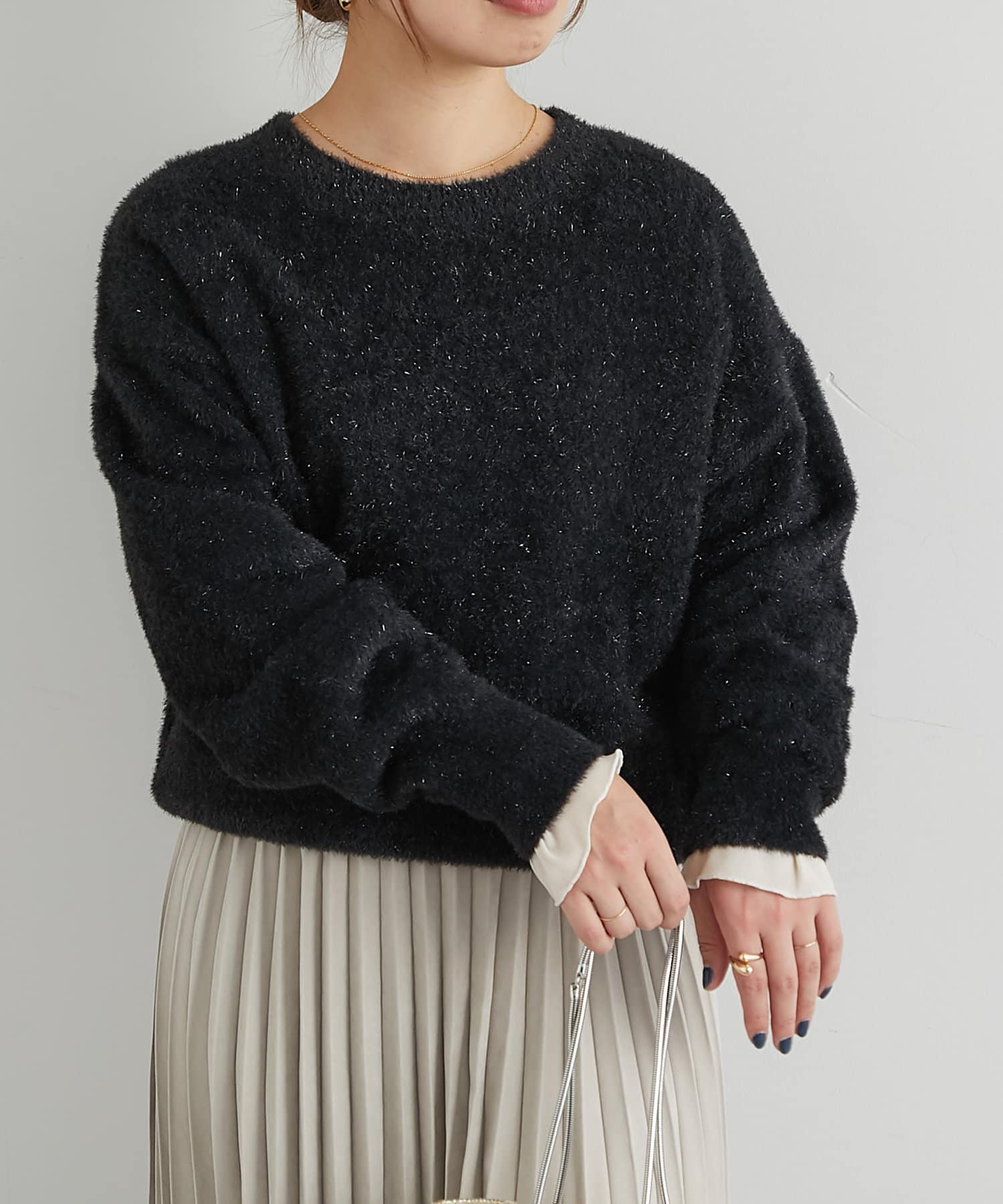 ・キラキラと動きのあるラメデザインが着映えを叶えるニットプルオーバー
