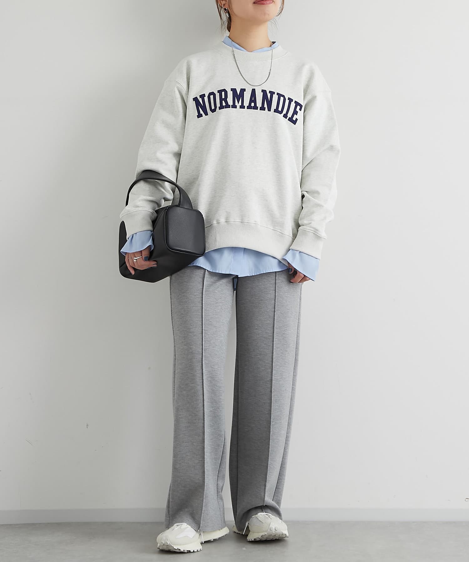 程よいゆったりさもあり、腰回りもカバーできるスウェットです。