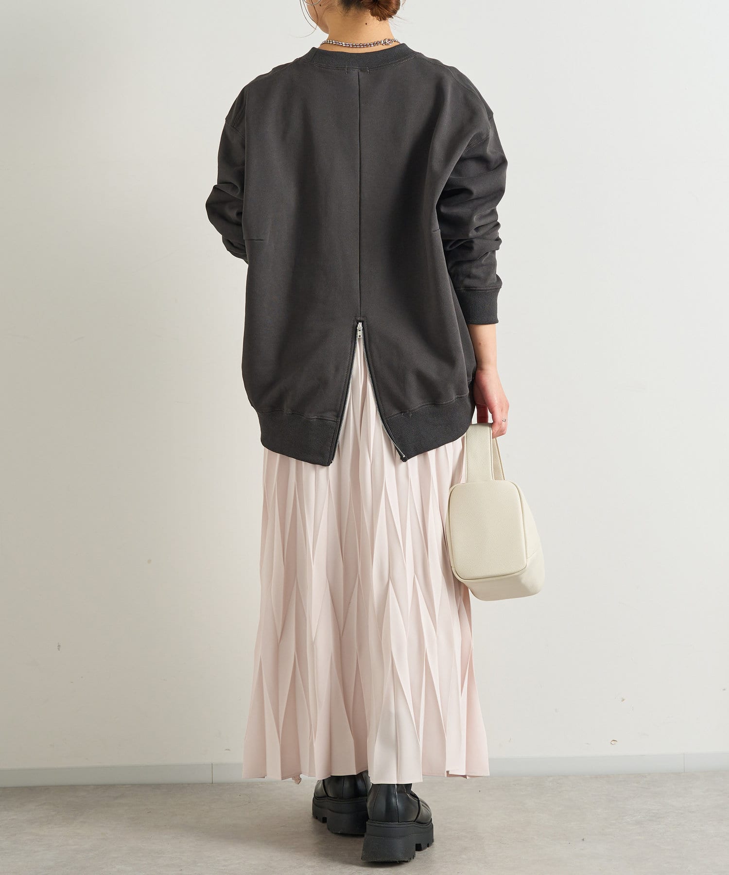 後ろのファスナーがポイントになり、スリットにすることで抜け感をプラスできます!