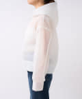 シアー素材で抜け感があり、 女性らしい丸いフォルムを構築