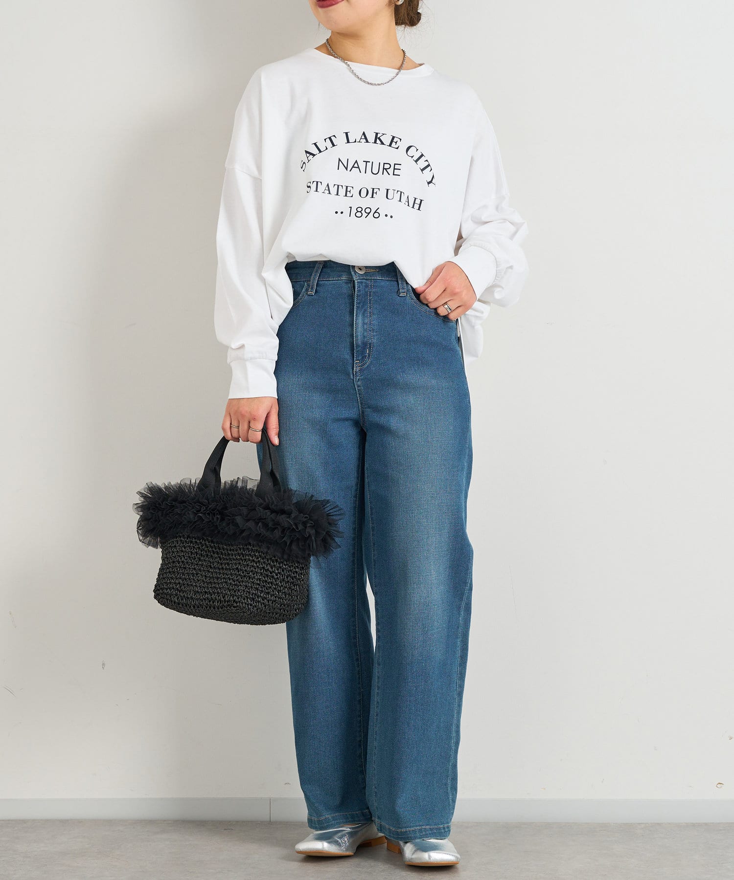 《上品なデイリーカジュアルに》シルケット風ロゴロンT