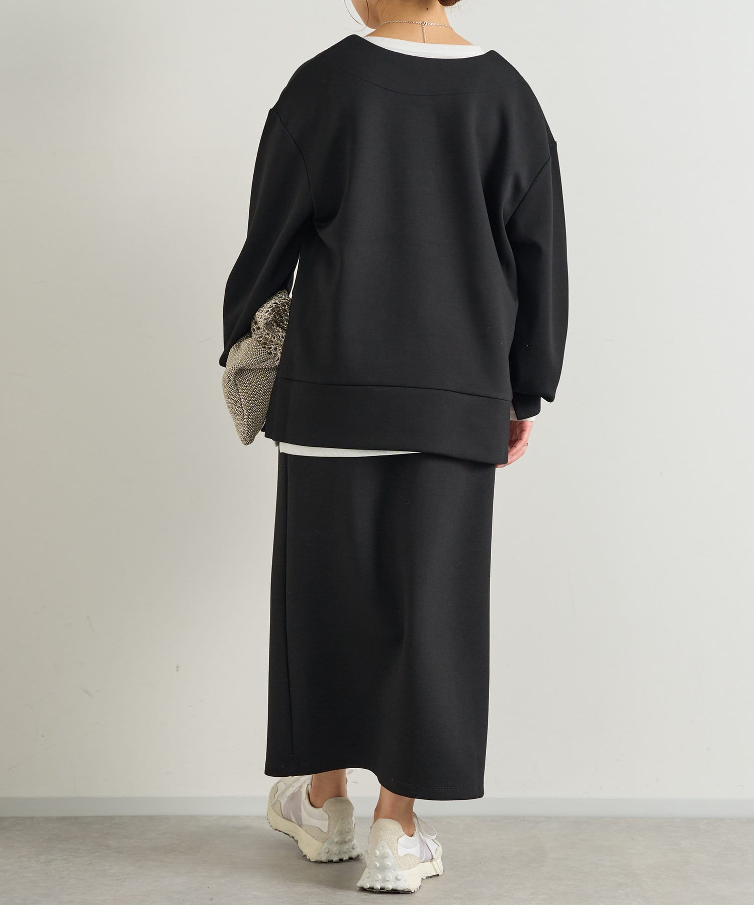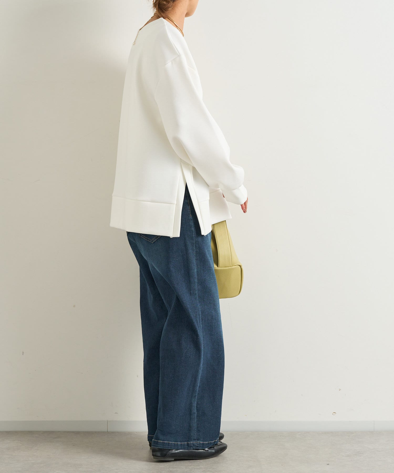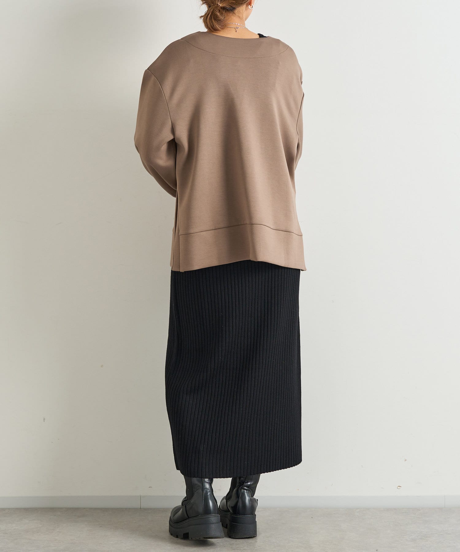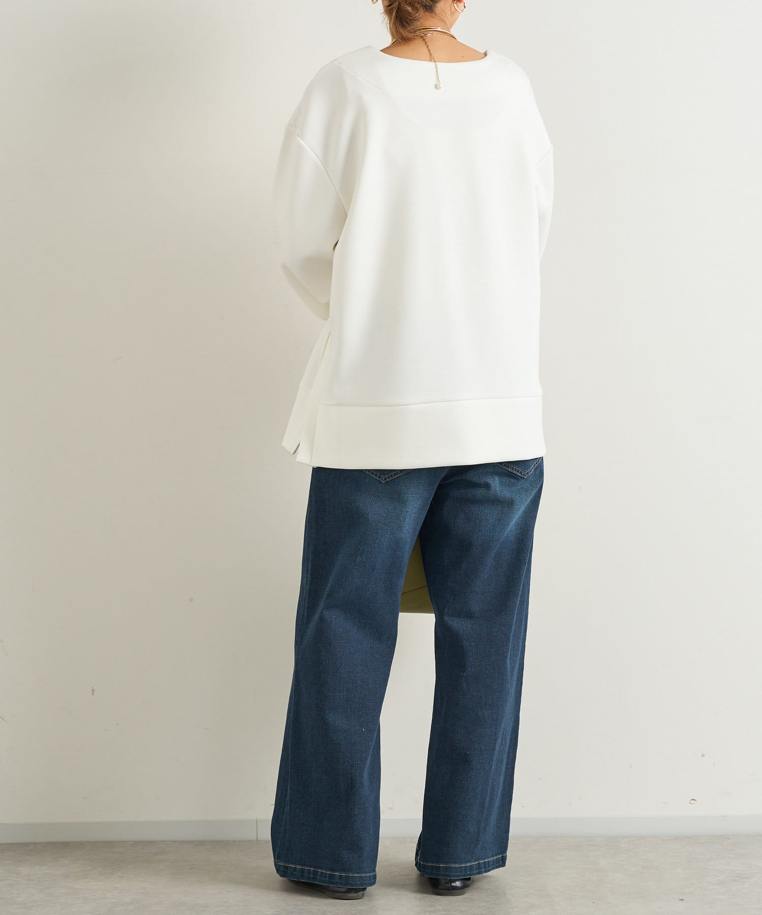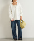 コーデポイント:首元がすっきりとしたデザインなのでボリューミーなボトムスとの相性も良し!