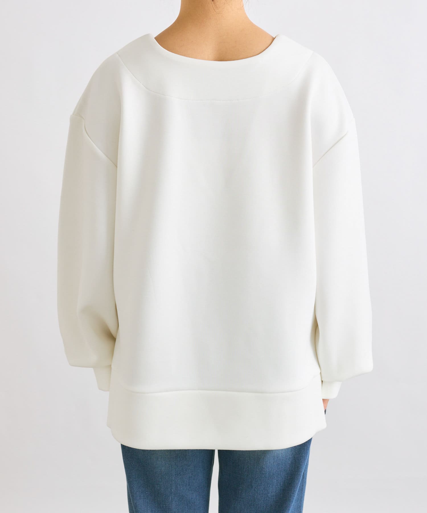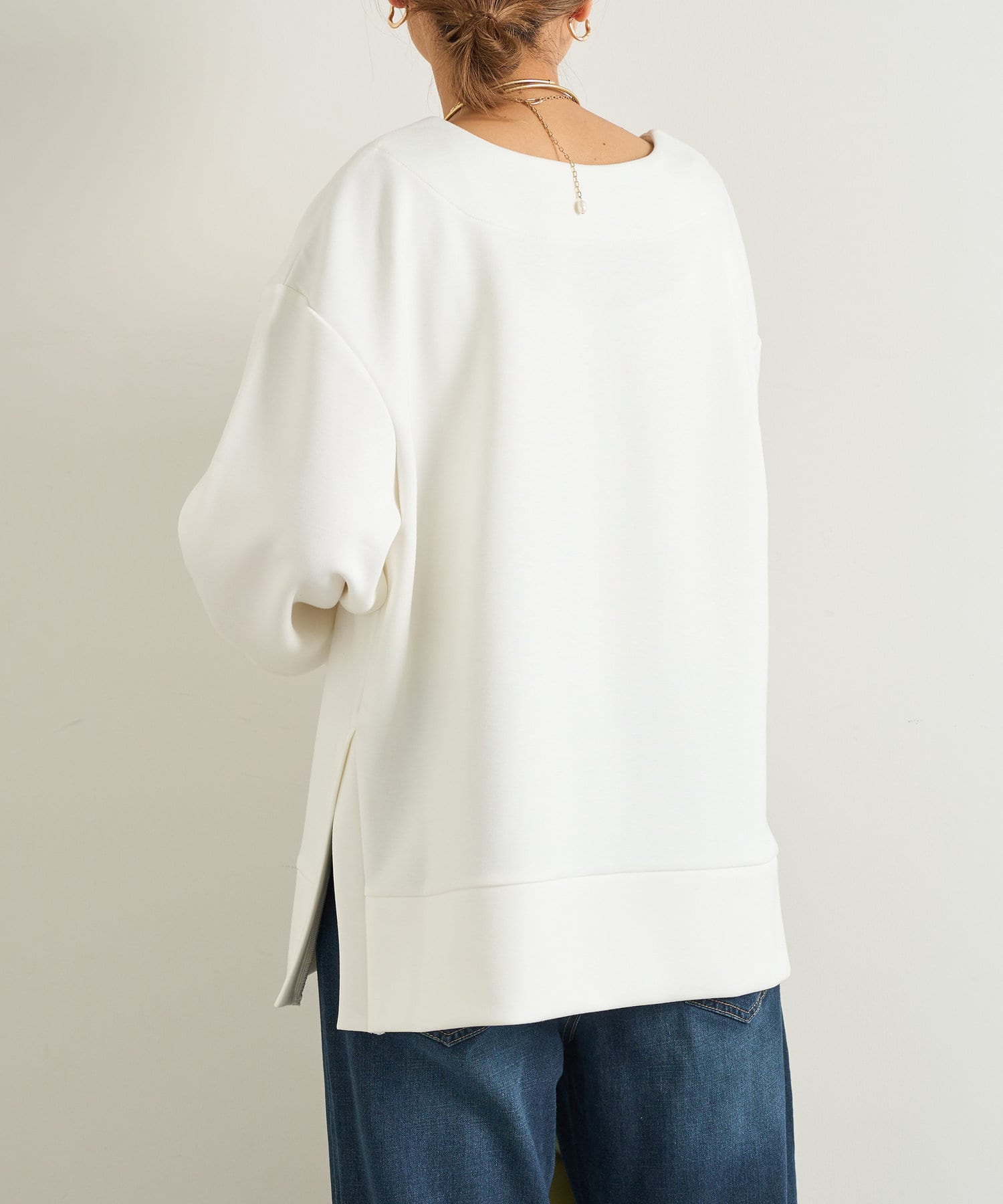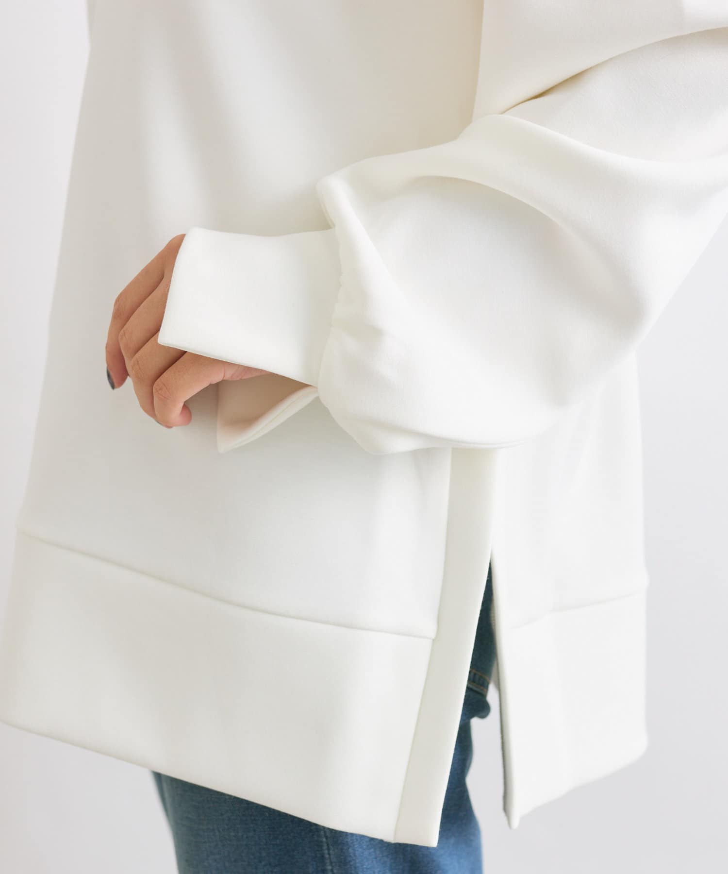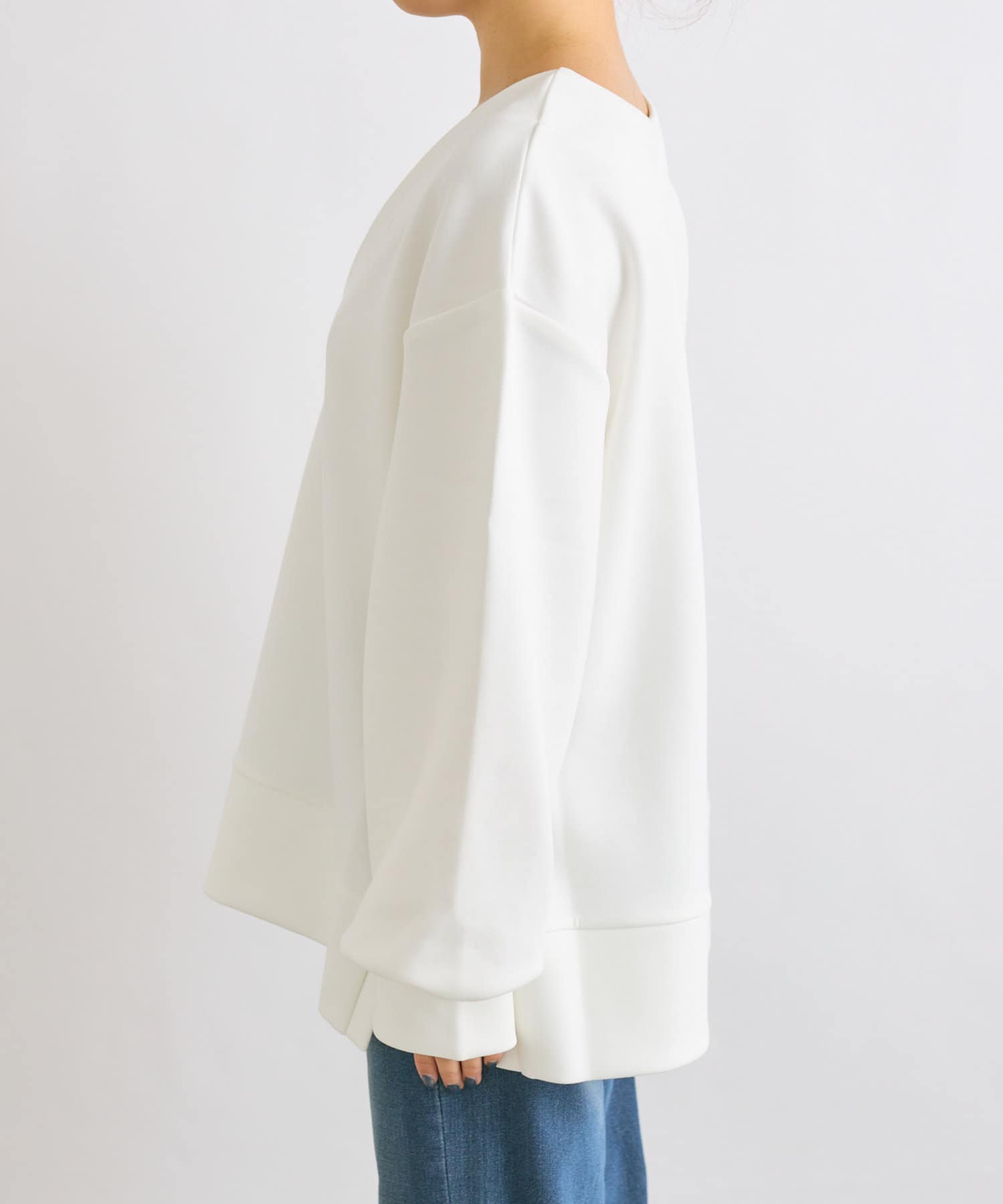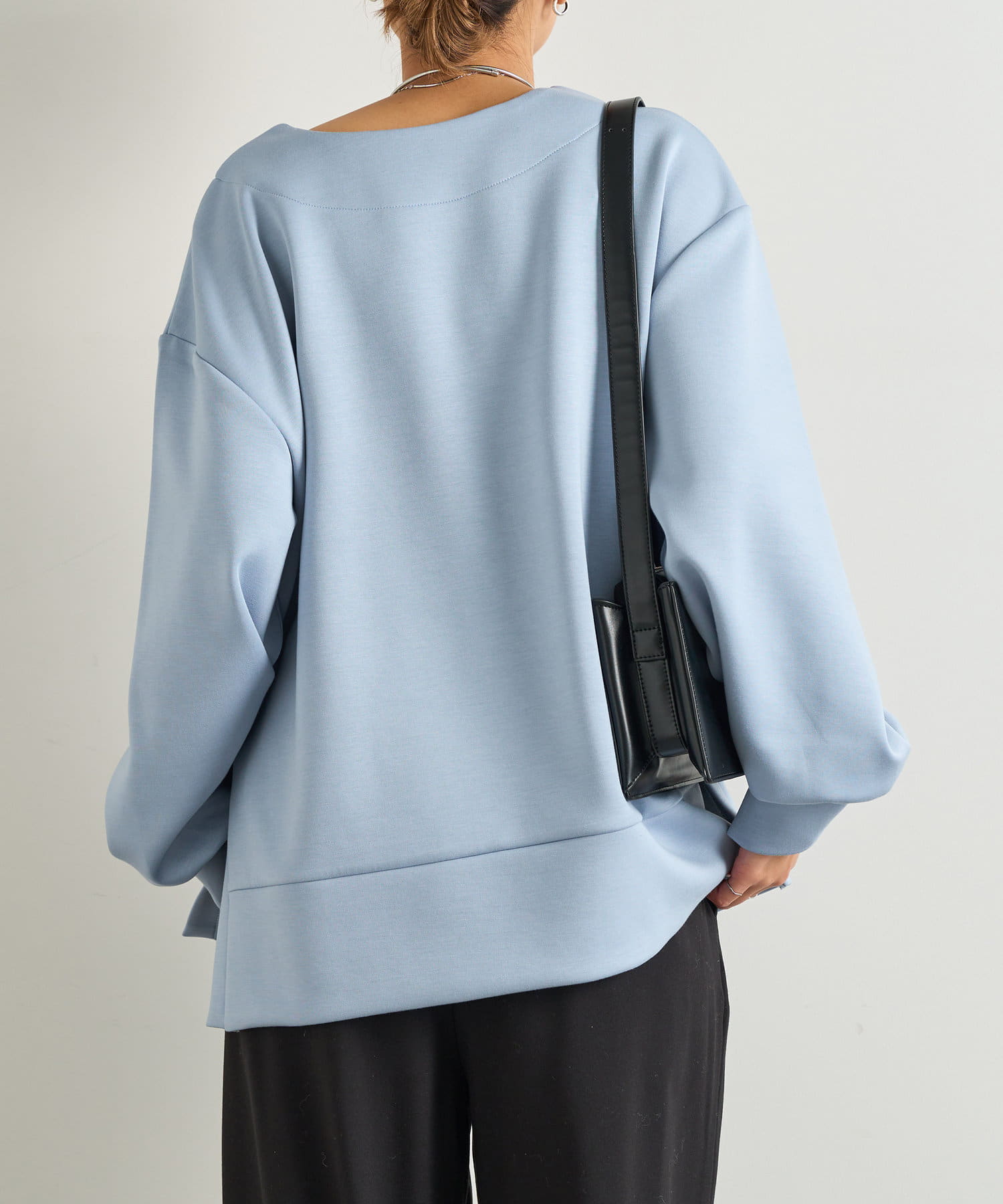 コーデポイント:首元がすっきりとしたデザインなのでボリューミーなボトムスとの相性も良し!