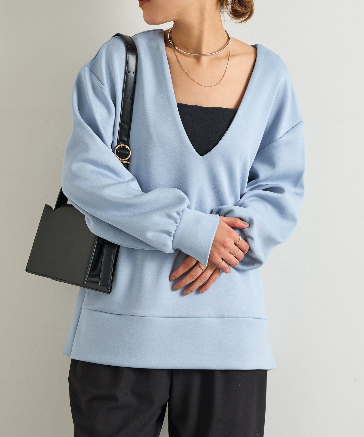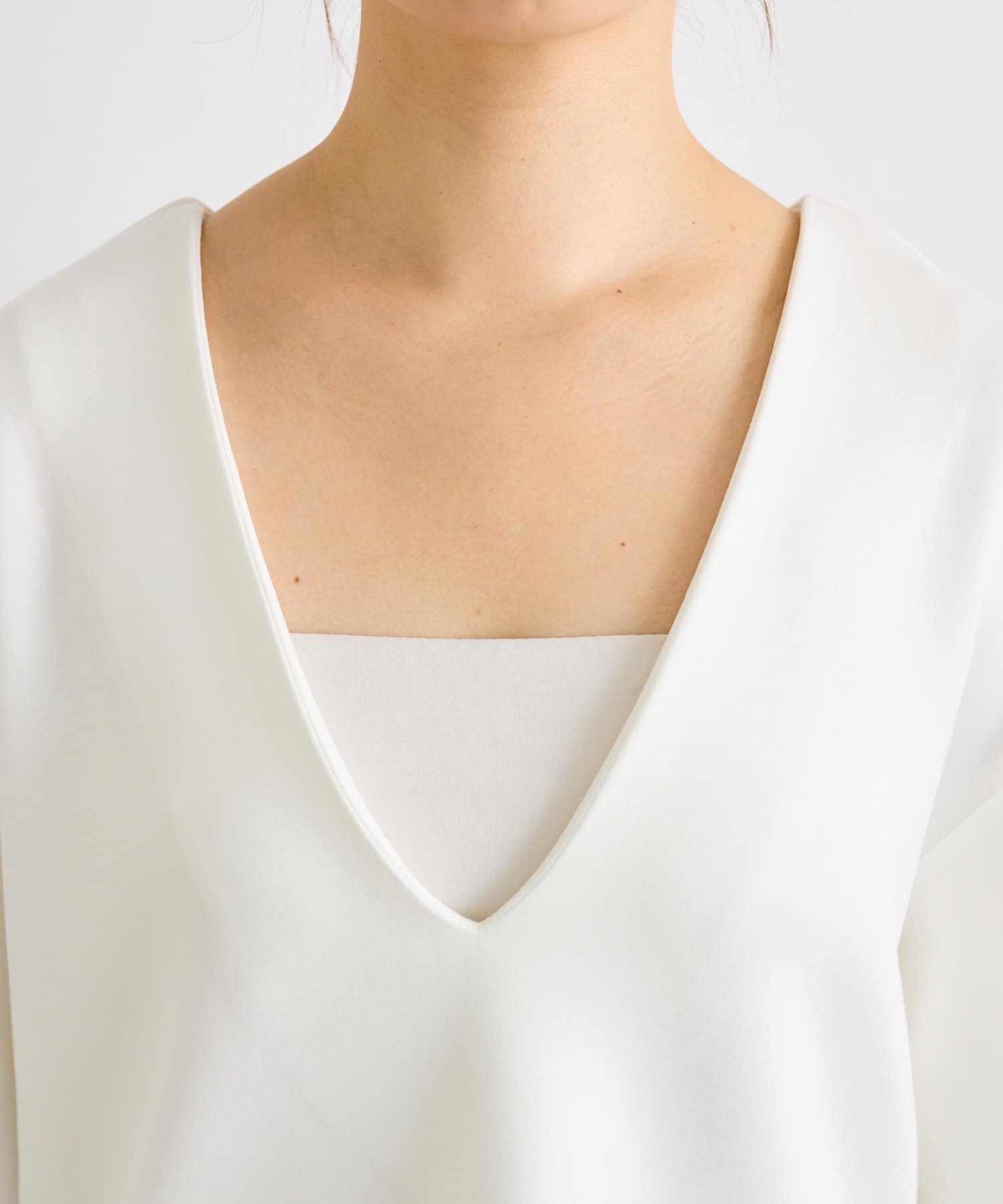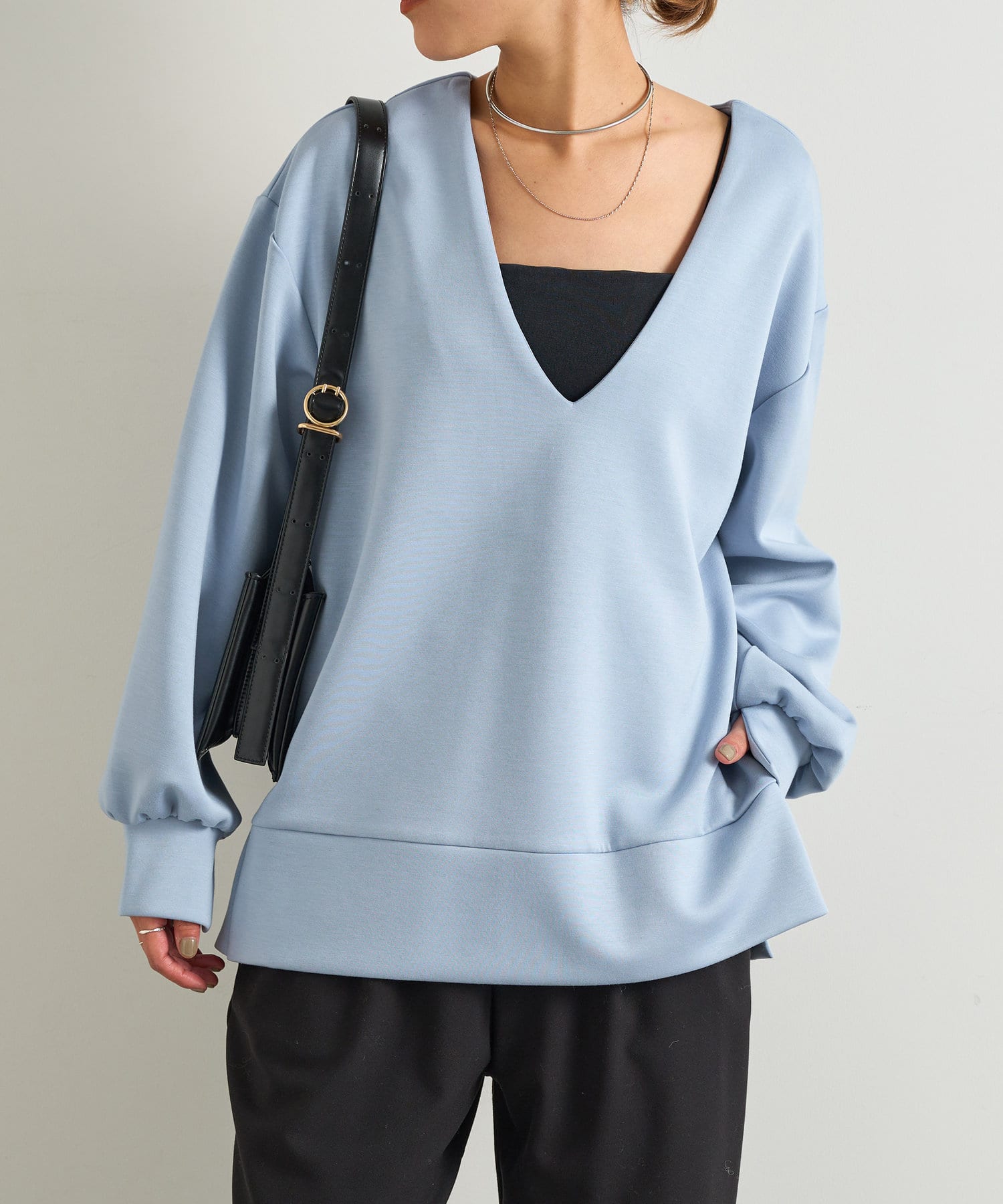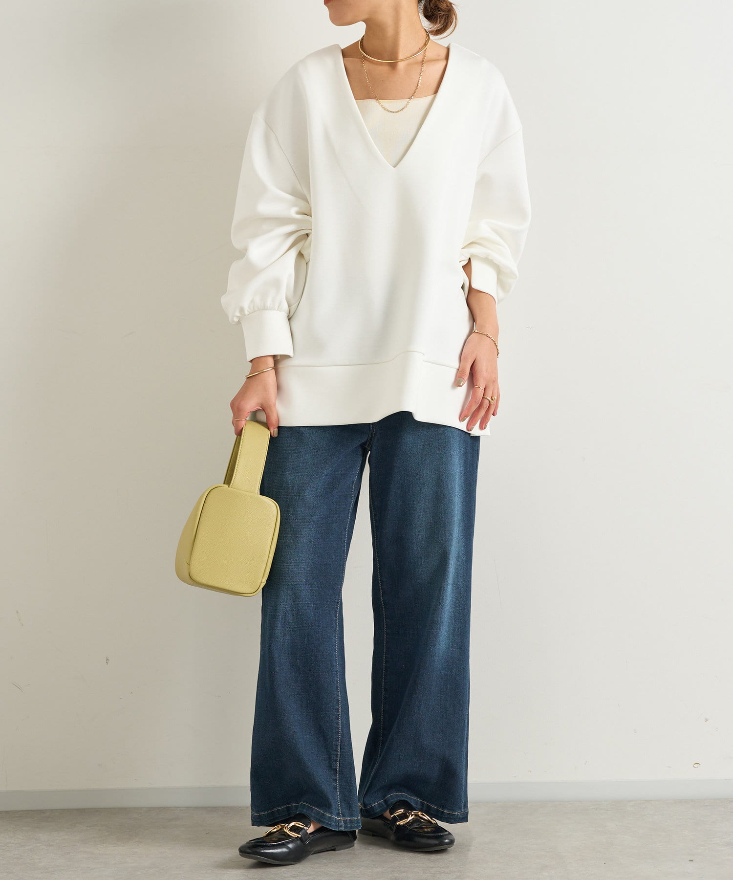 ・トレンドの深Vネックとサイドスリットでレイヤードしてインナーをチラ見せもオススメ