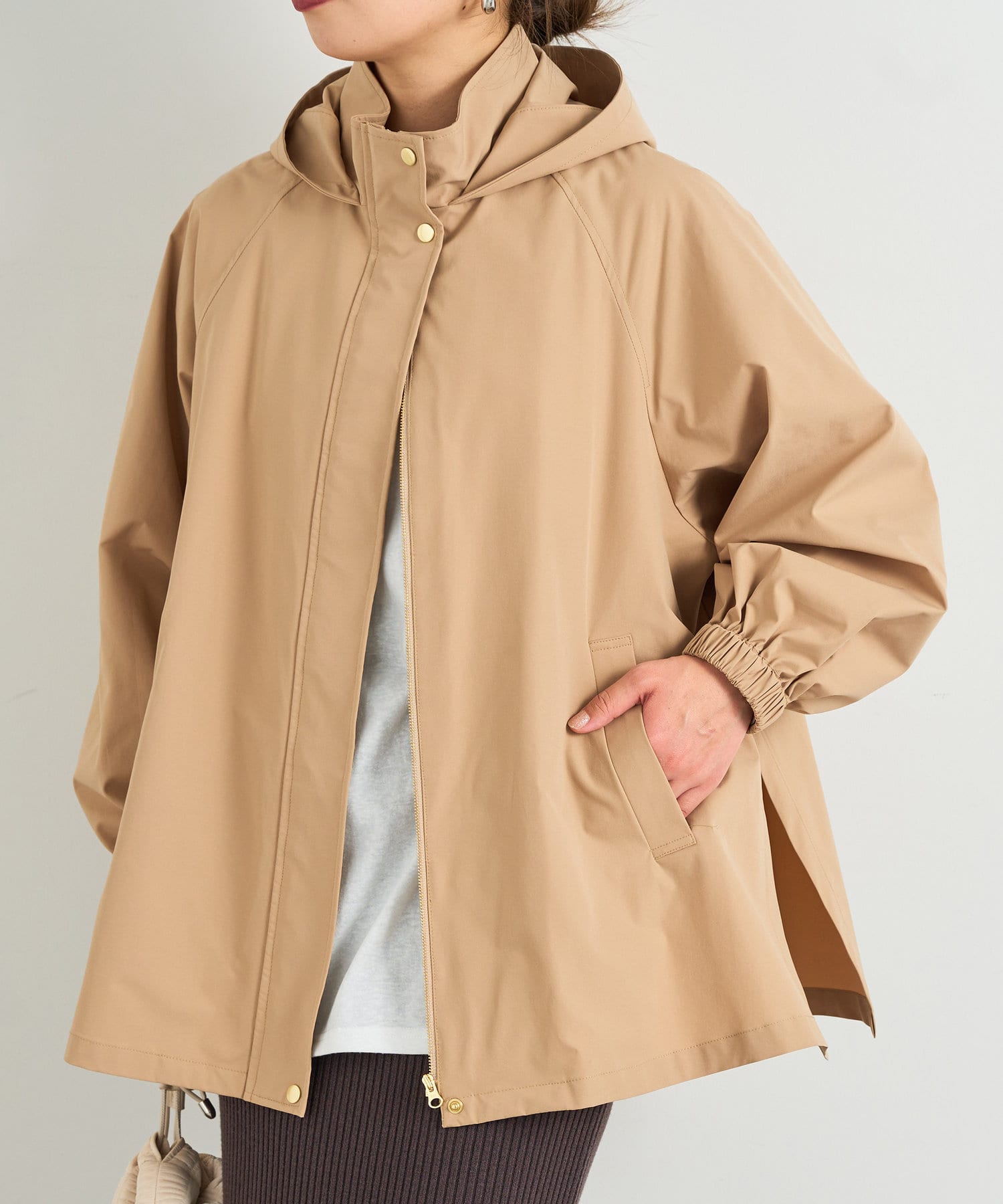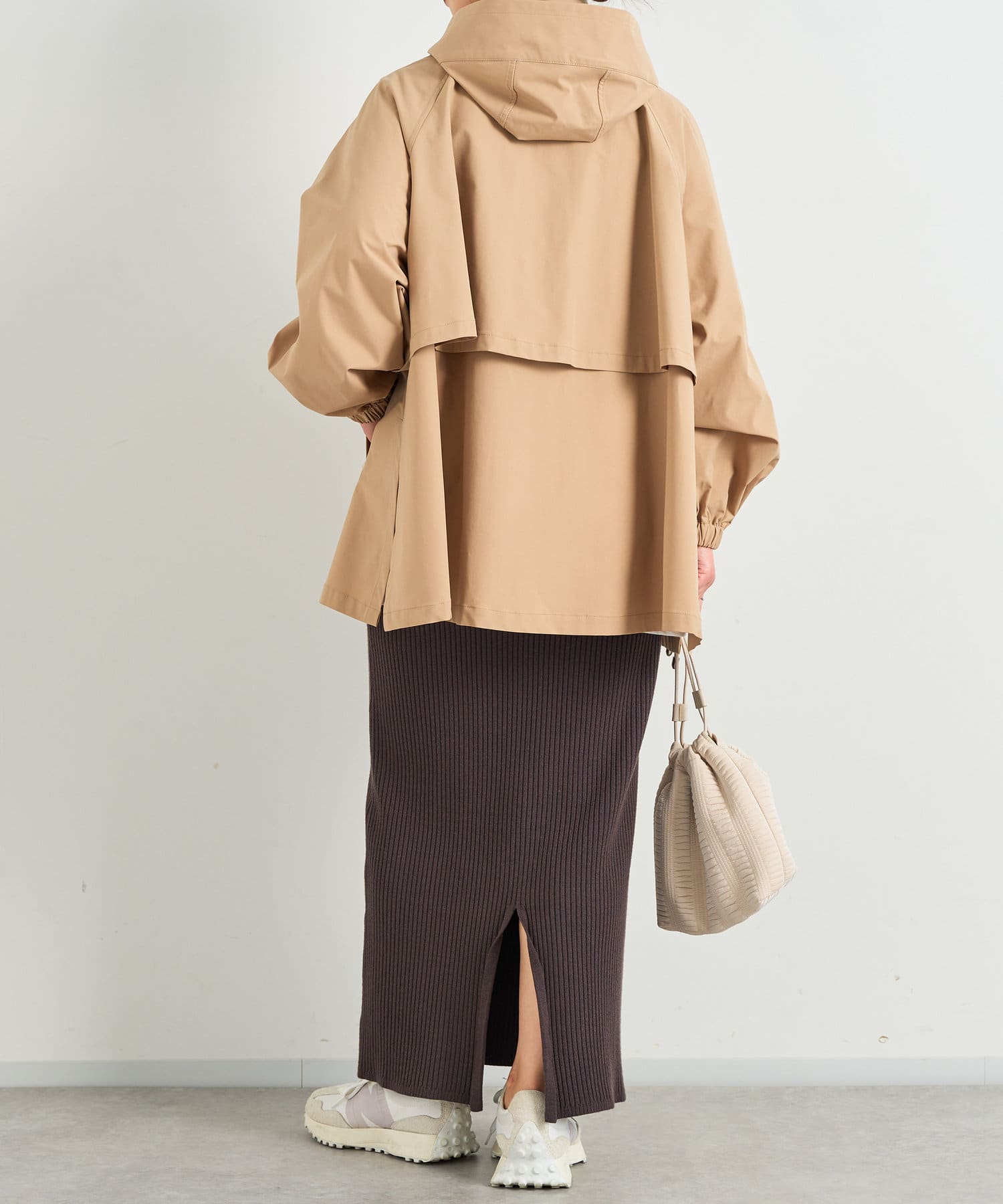 ・ヒップラインをカバーしてくれる後ろが長めの丈感で、