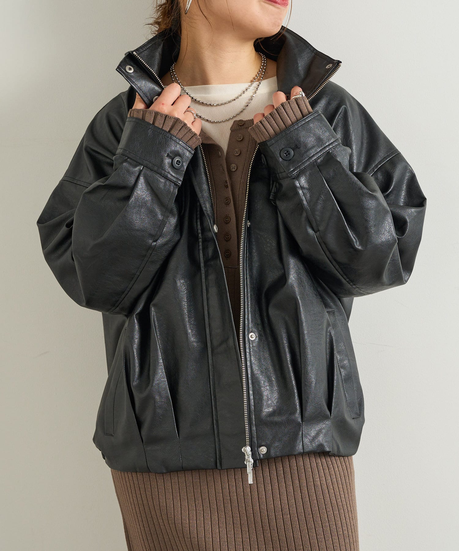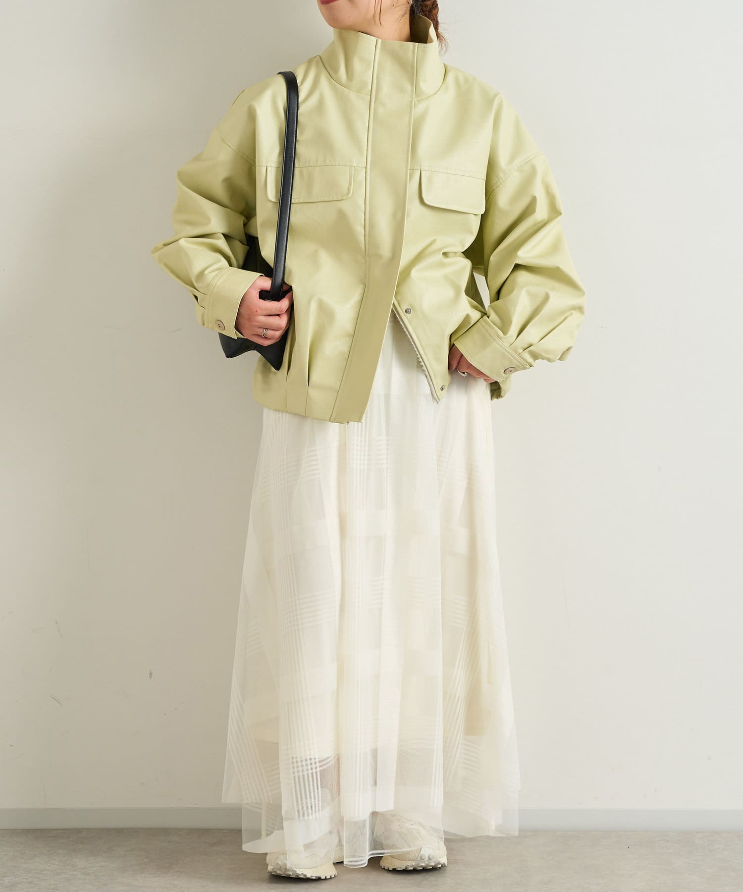 ・スタンドネックなので首までカバーできるデザインのブルゾン