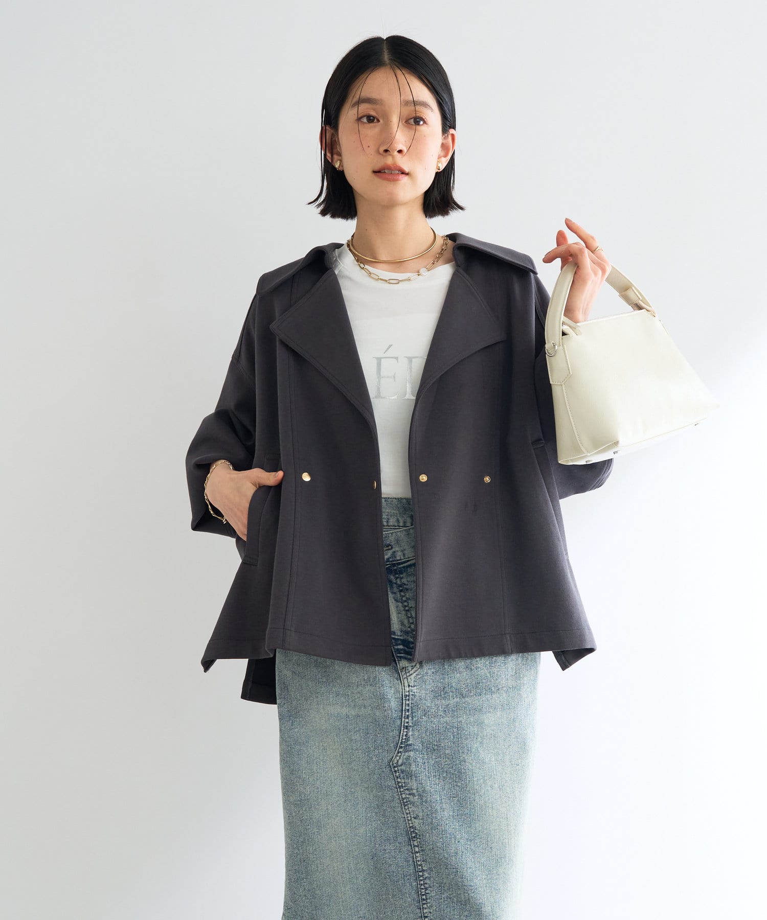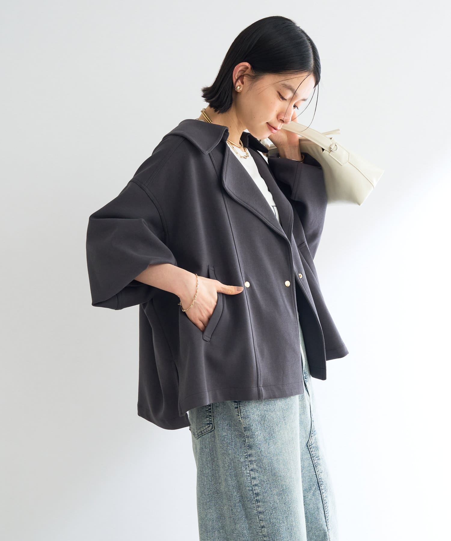 《洗える・軽く羽織れる》ダブルフェイスショートコート