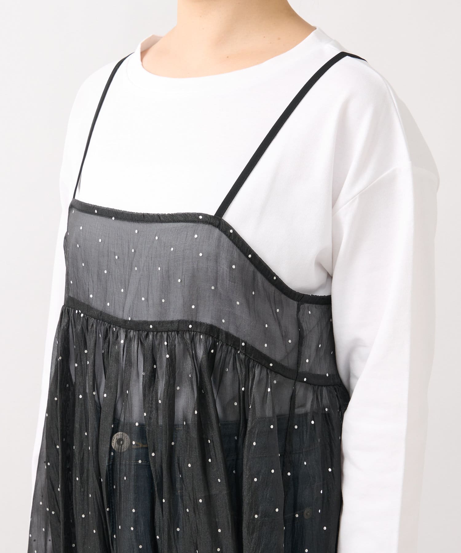・柔らかく透け感のあるオーガンジー素材が、華やかなキャミワンピース