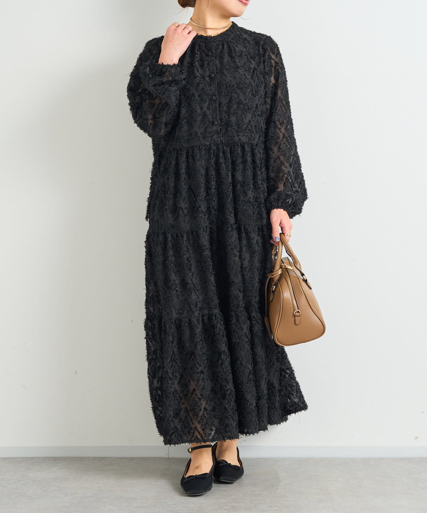 TOP > un dix cors > レディース > ワンピース > ワンピース > ウエスト絞りジャガードティアードワンピース