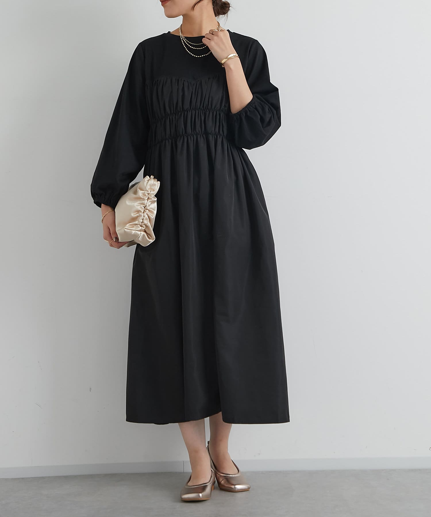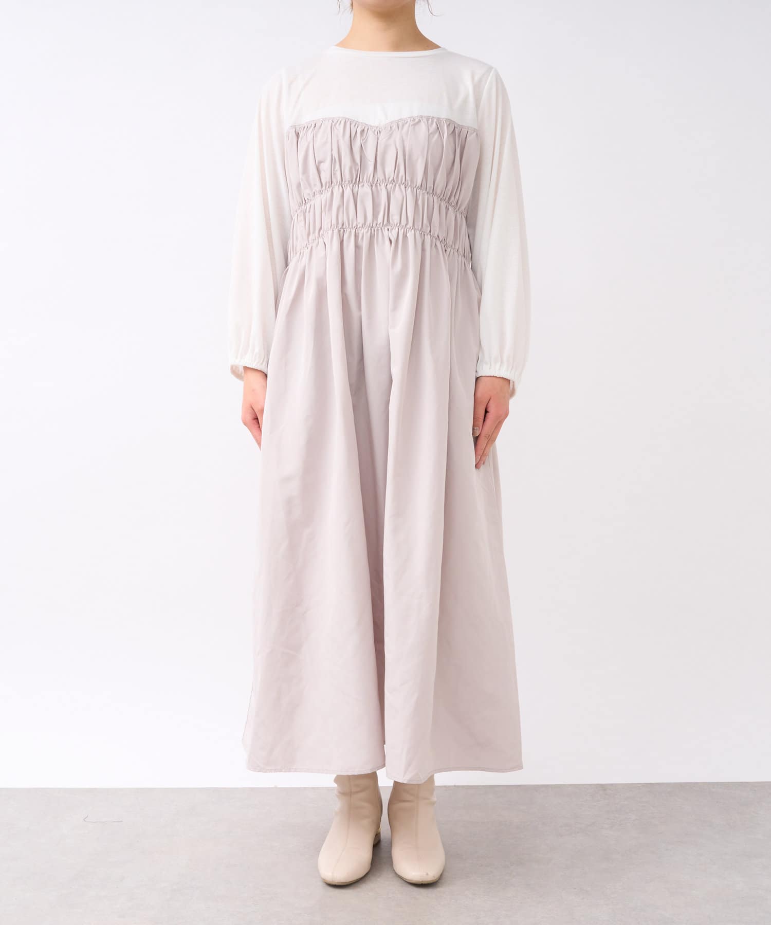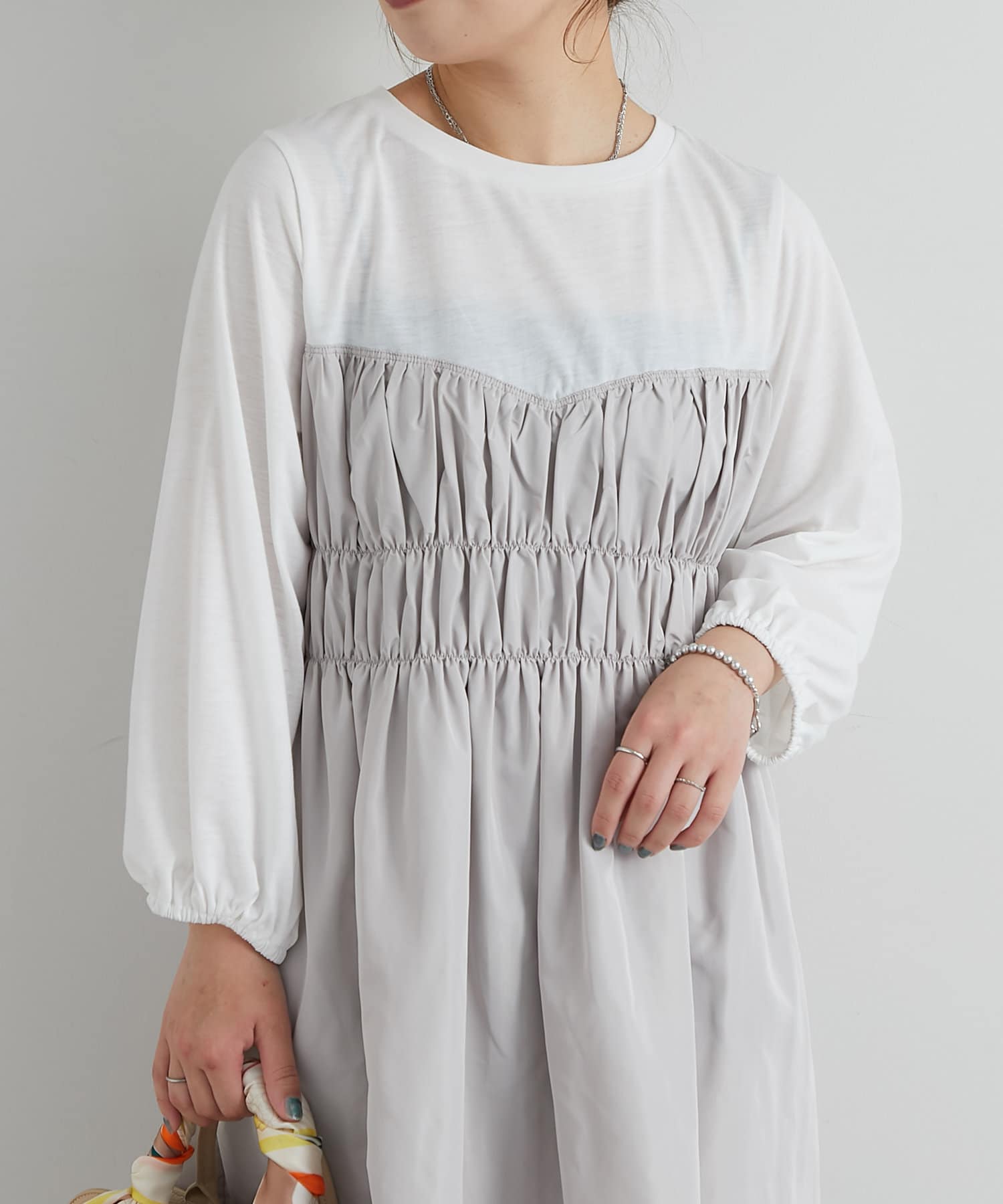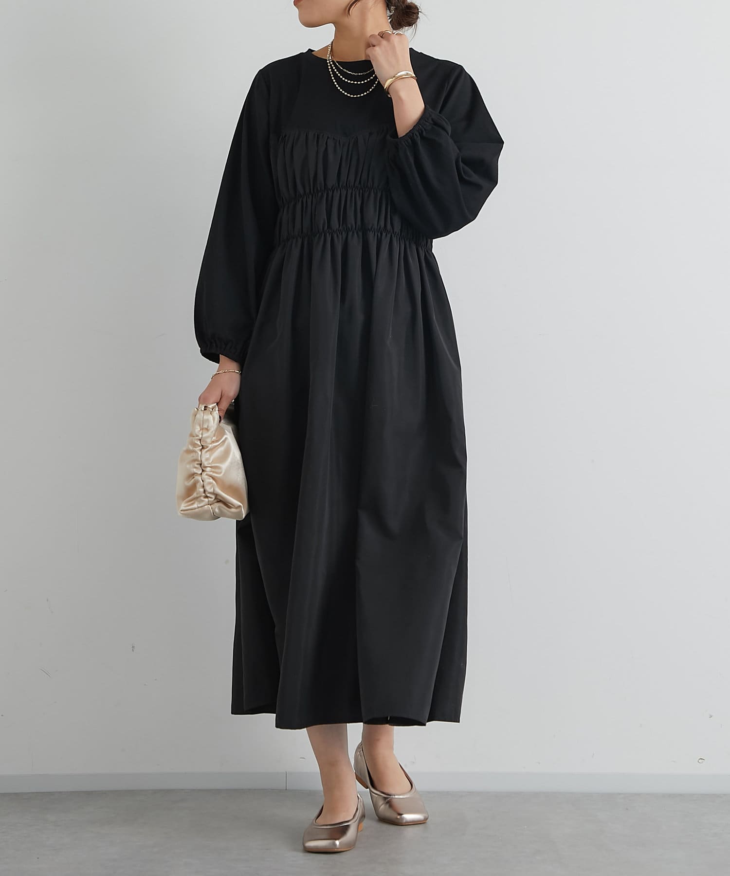・ビスチェを切り替えた、一枚でサマになる表情ゆたかなシャーリングワンピース