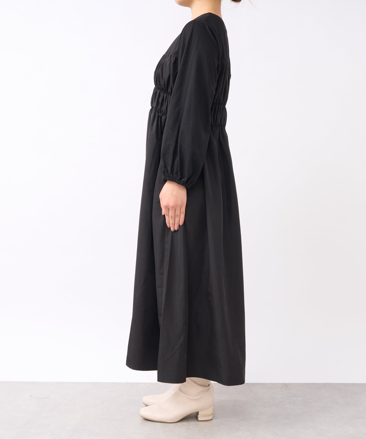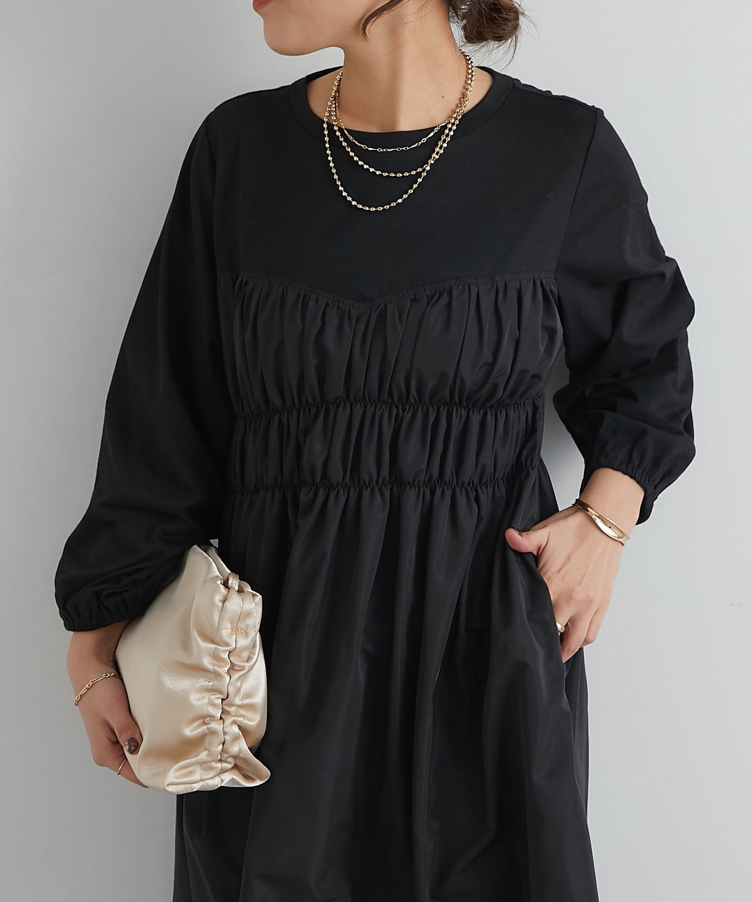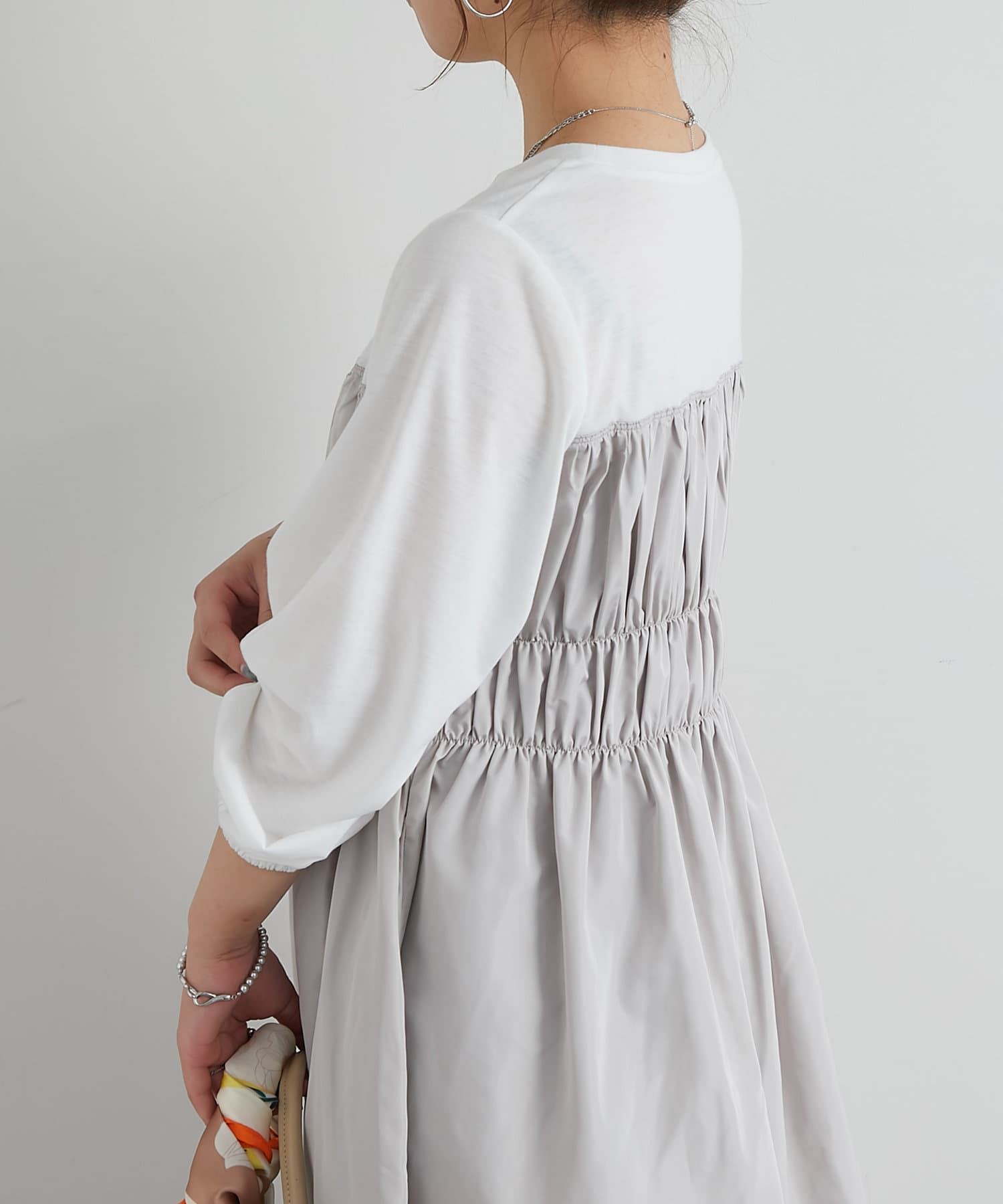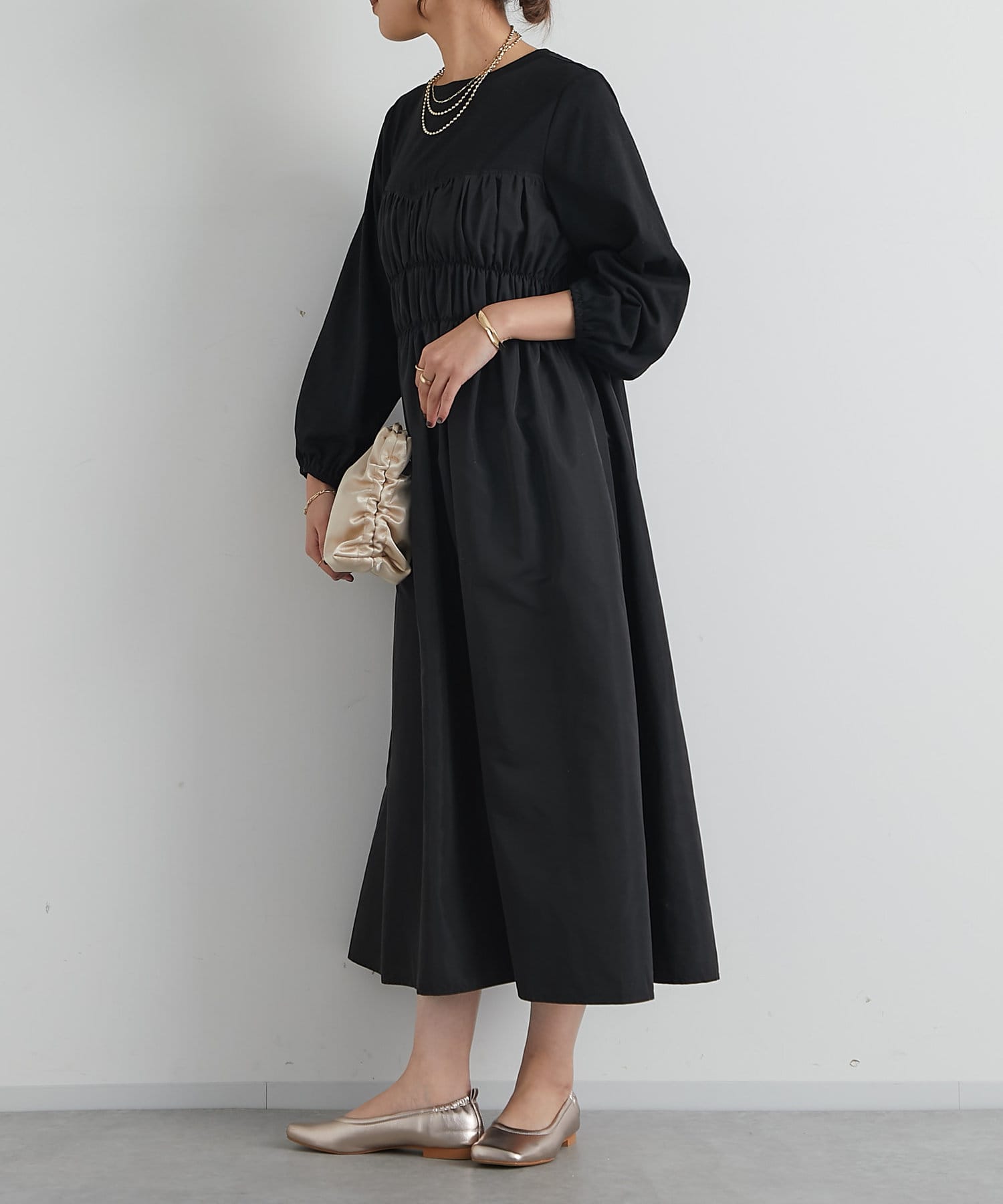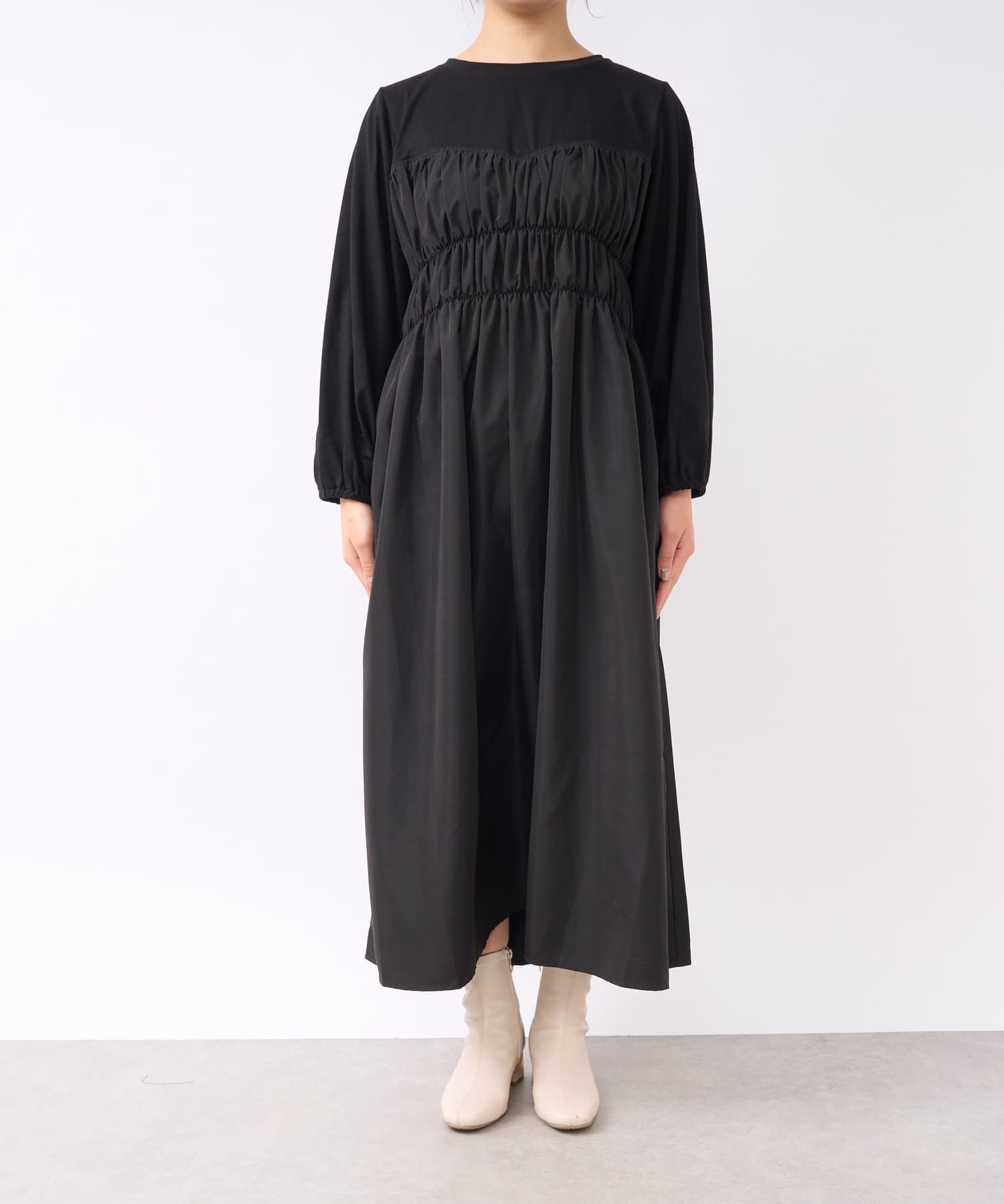 ・ビスチェを切り替えた、一枚でサマになる表情ゆたかなシャーリングワンピース
