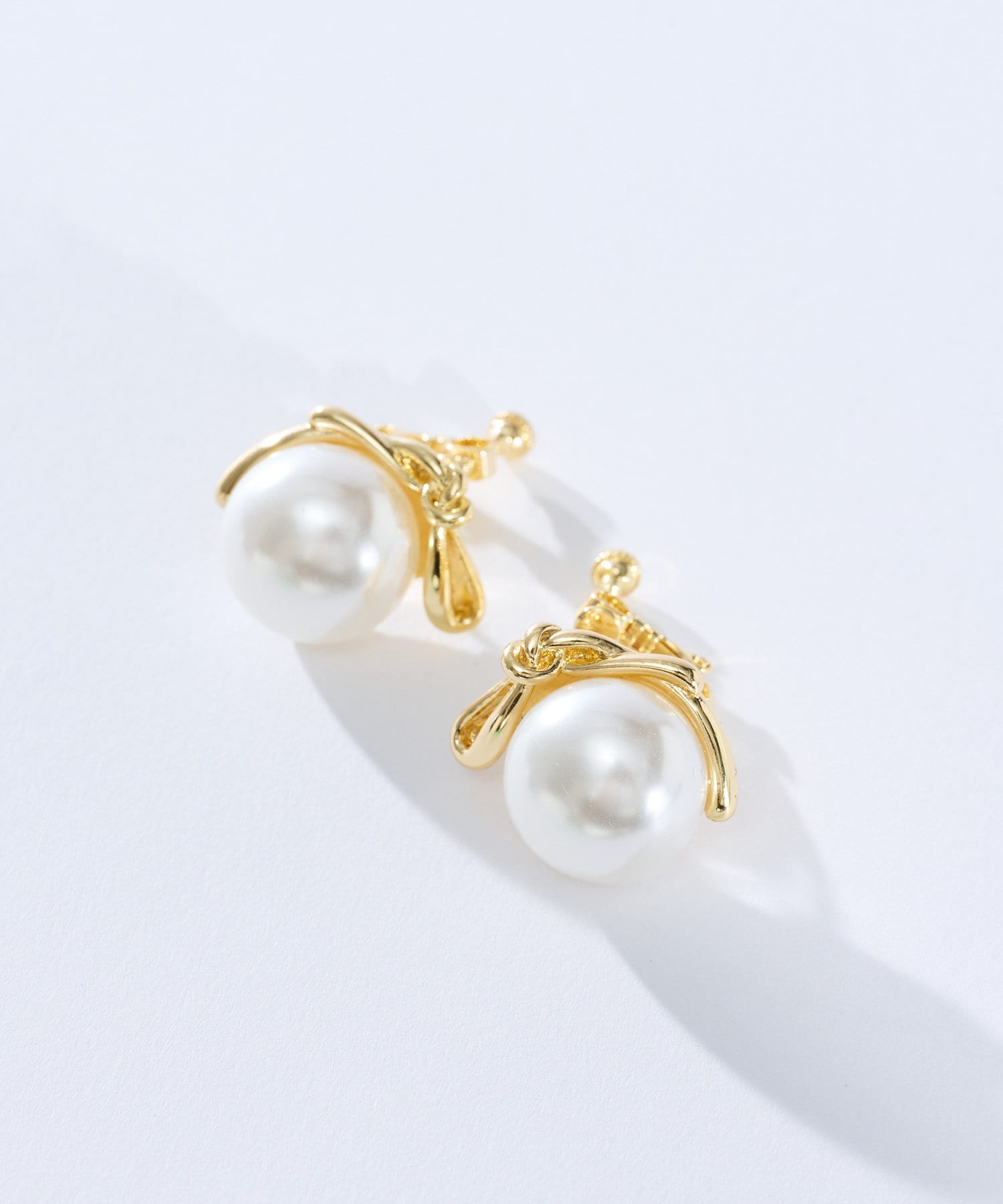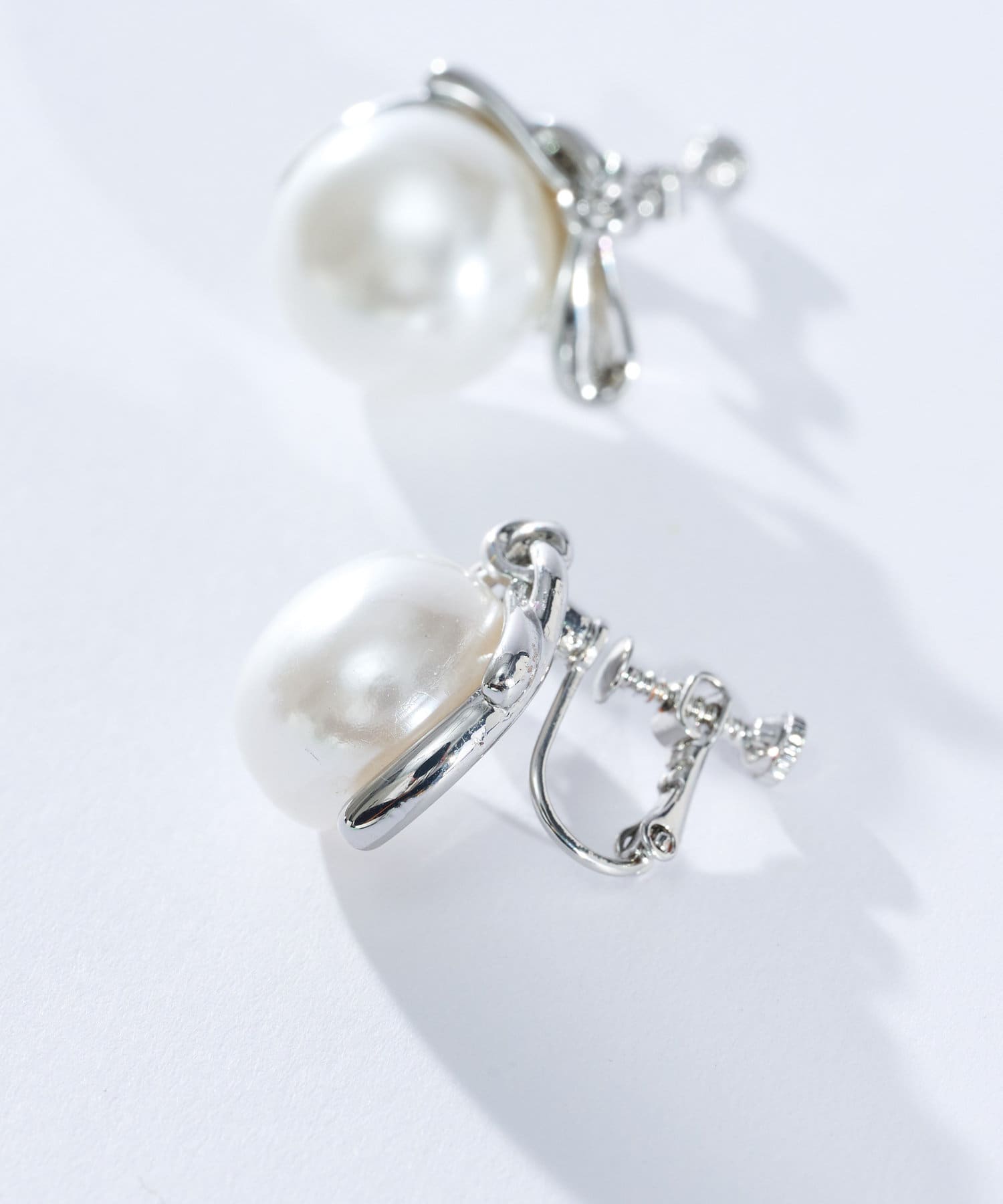 大きめのパールを組み合わせたデザインは、顔まわりを上品で華やかな印象に